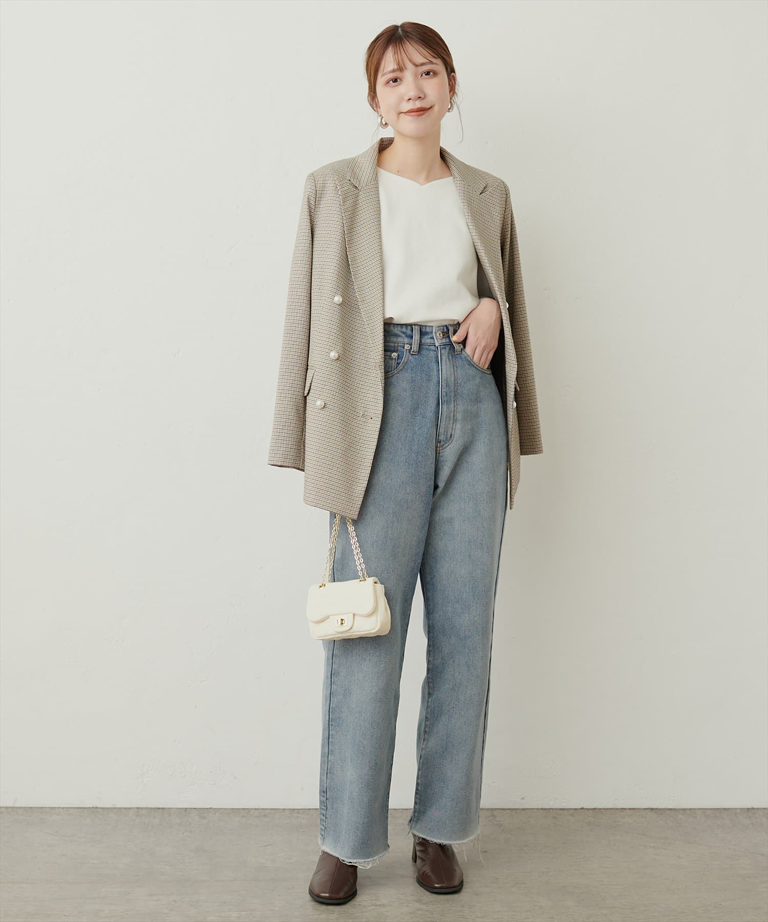 デニムを合わせると親しみのあるすっきりとしスタイリングに。