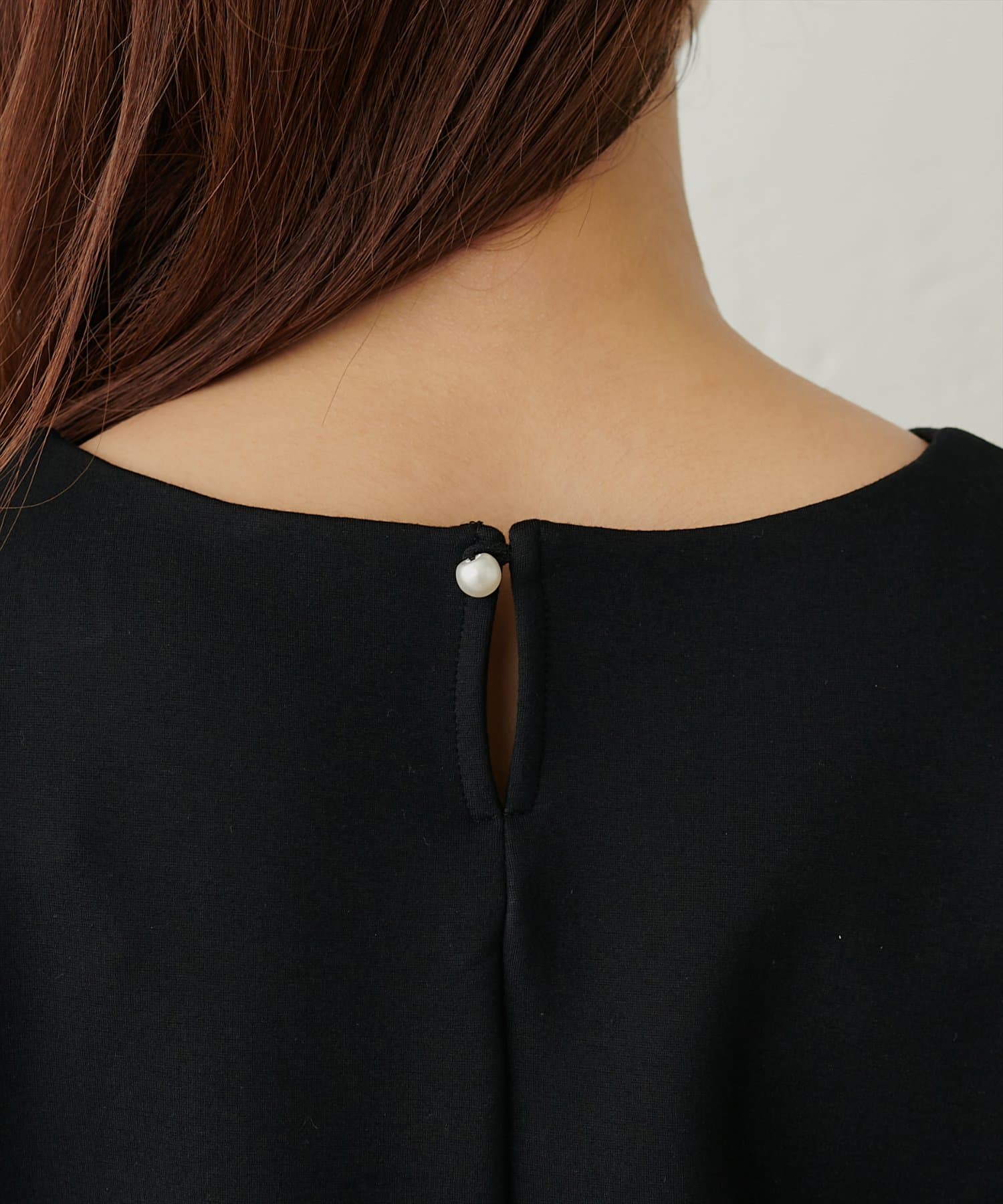 バックネックのパール釦で後ろ姿まで上品な1着。