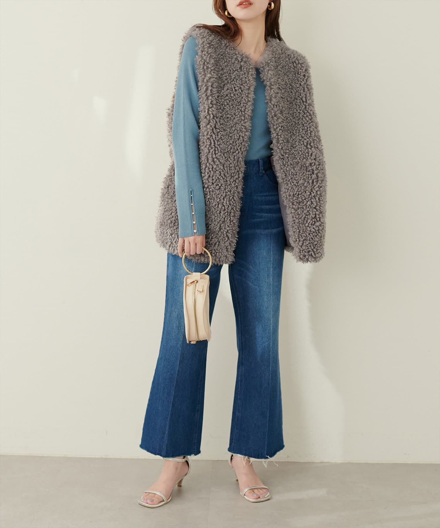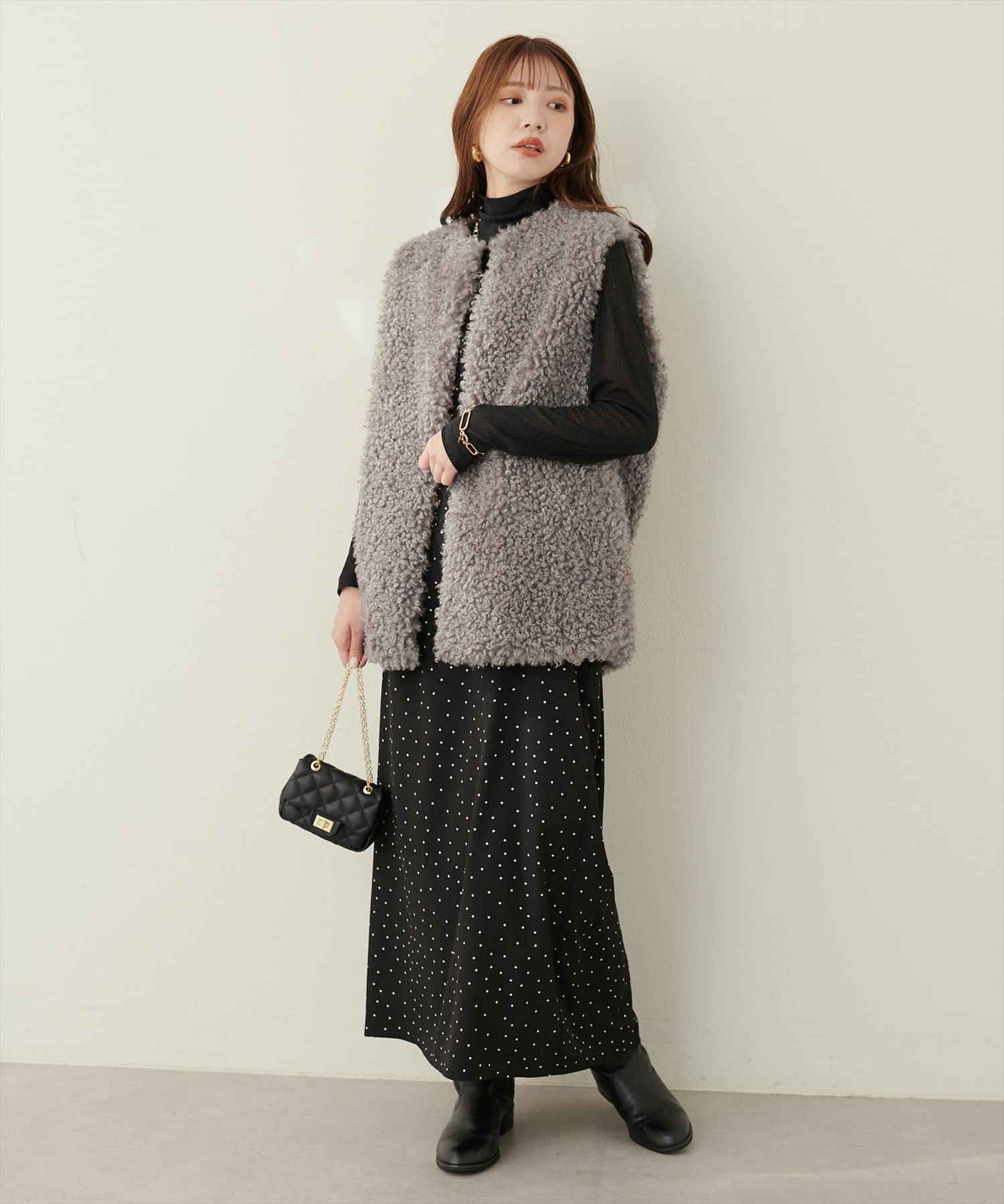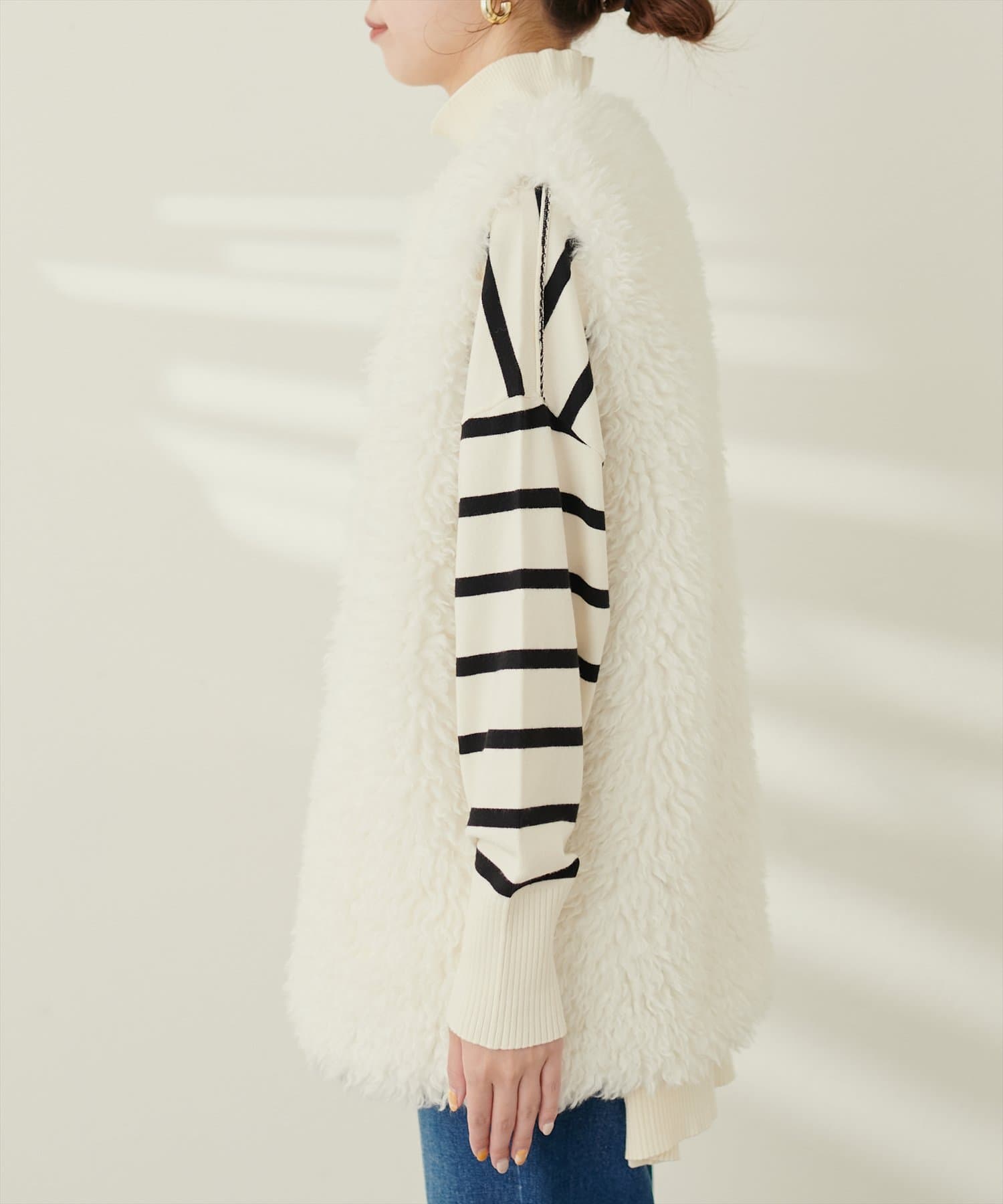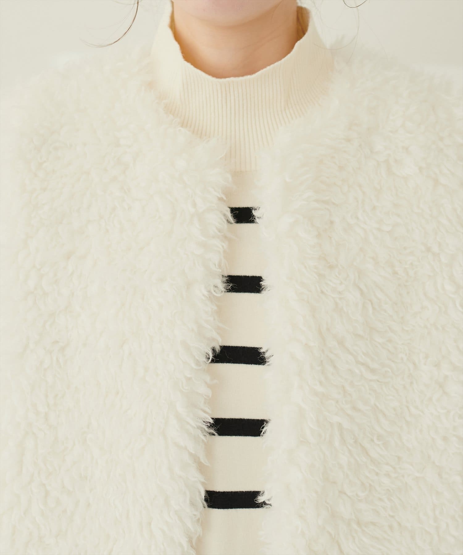 プードルのような柔らかな毛足のフェイクファーを仕様し、軽い着心地のベスト。