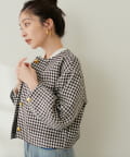 ノーカラーですっきり見えし、ショート丈でスタイルアップが叶う一枚です。