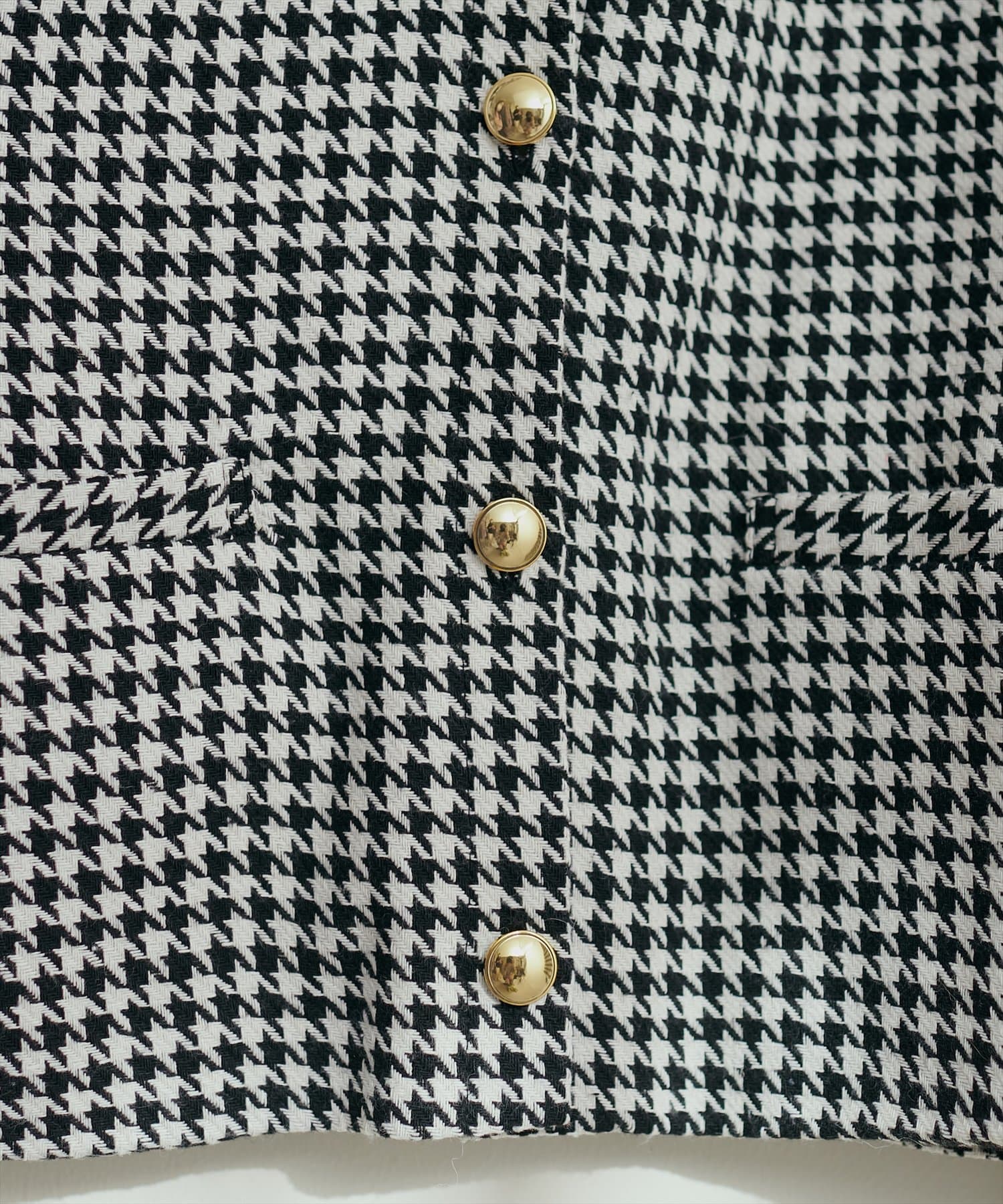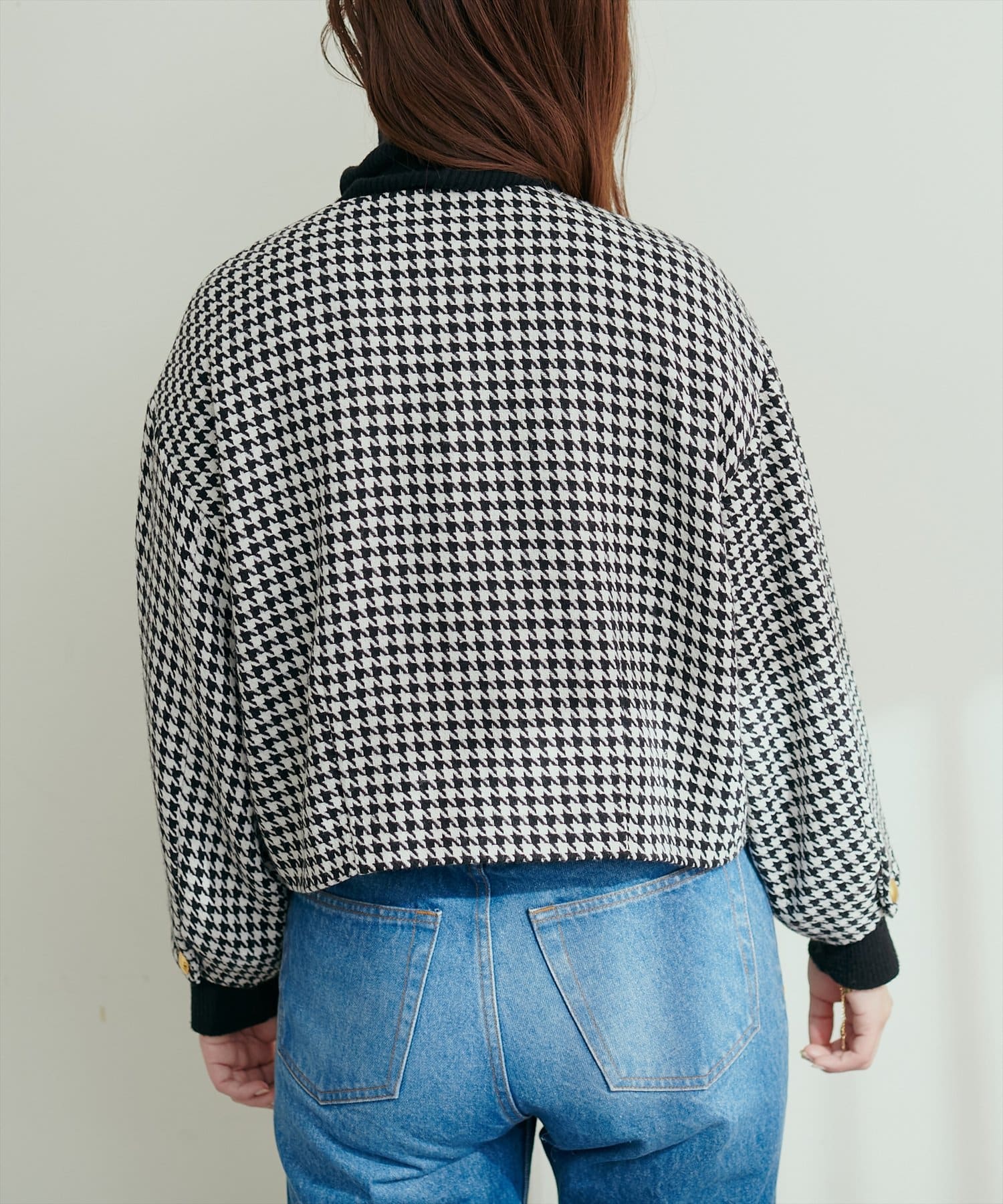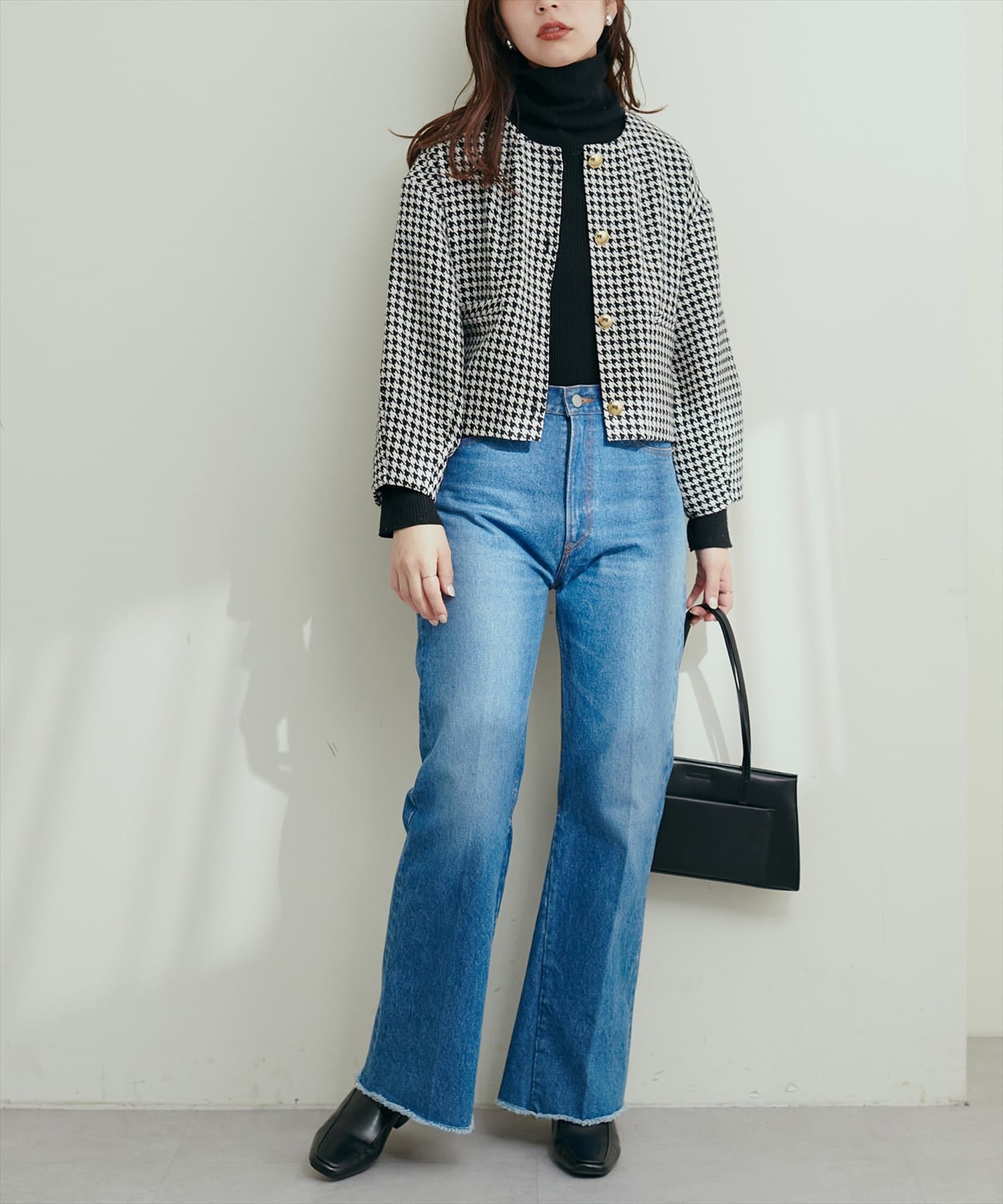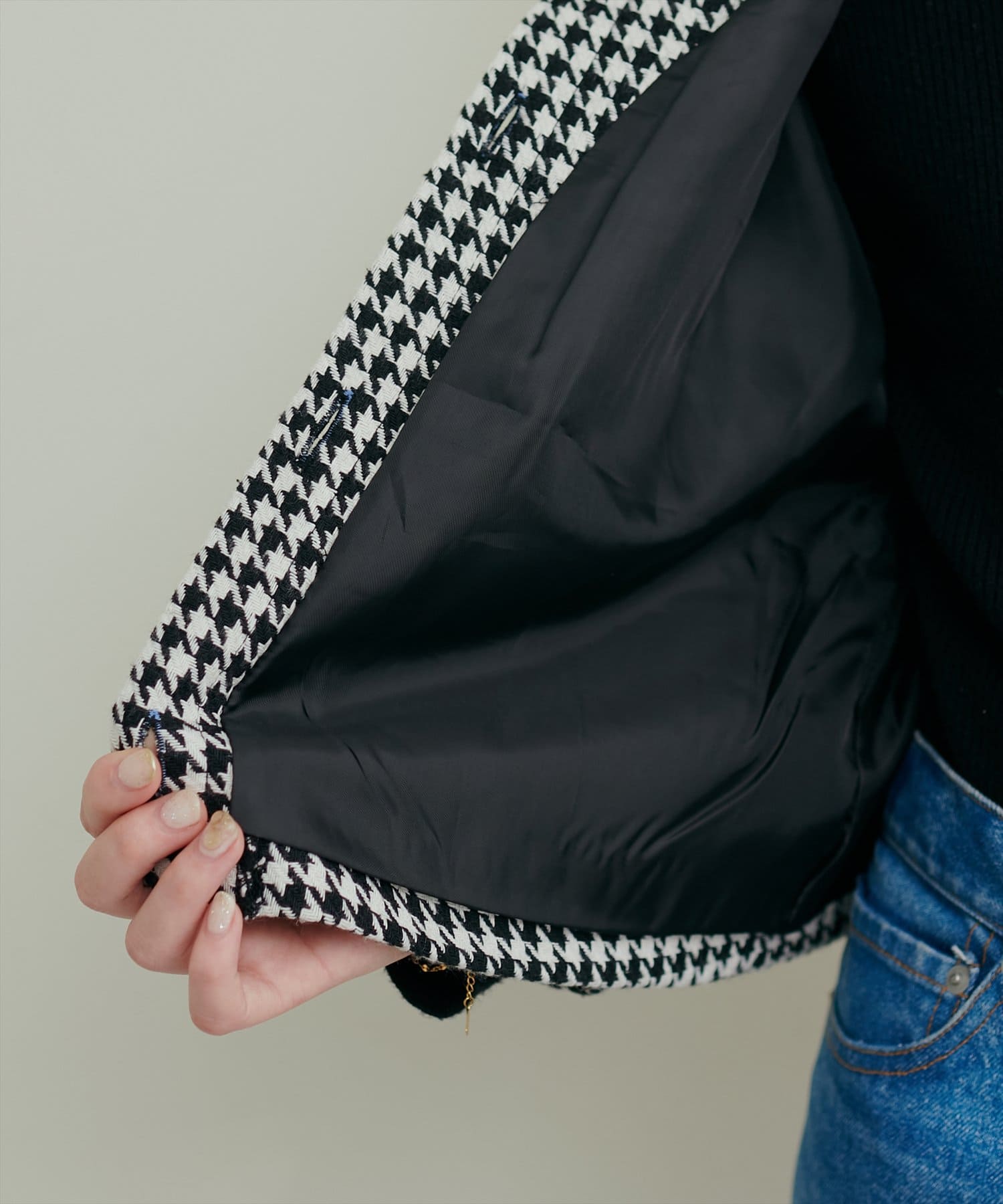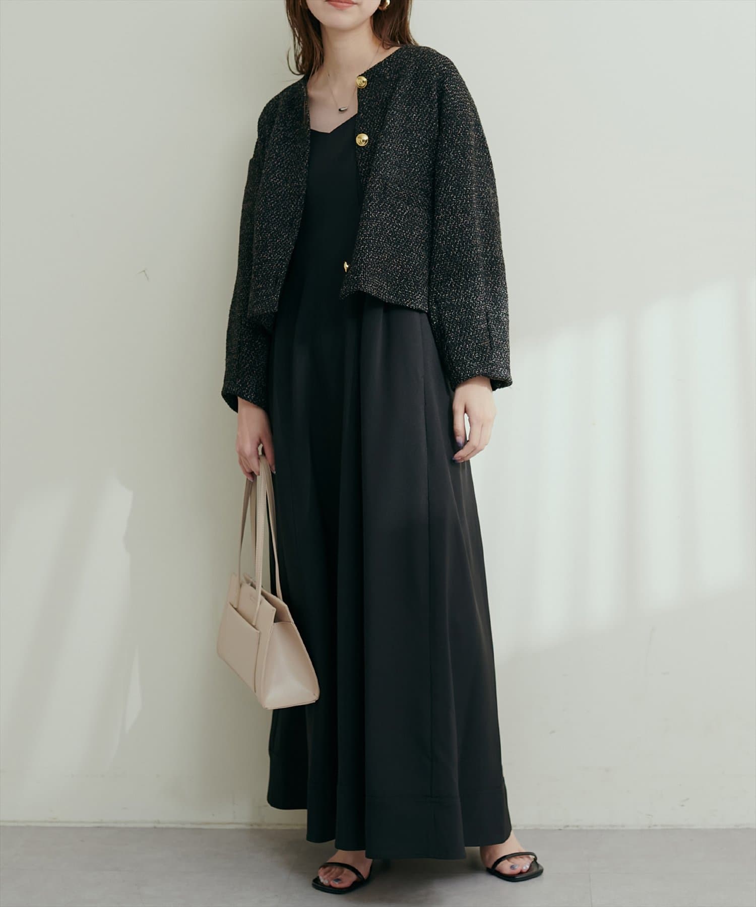 ノーカラーですっきり見えし、ショート丈でスタイルアップが叶う一枚です。