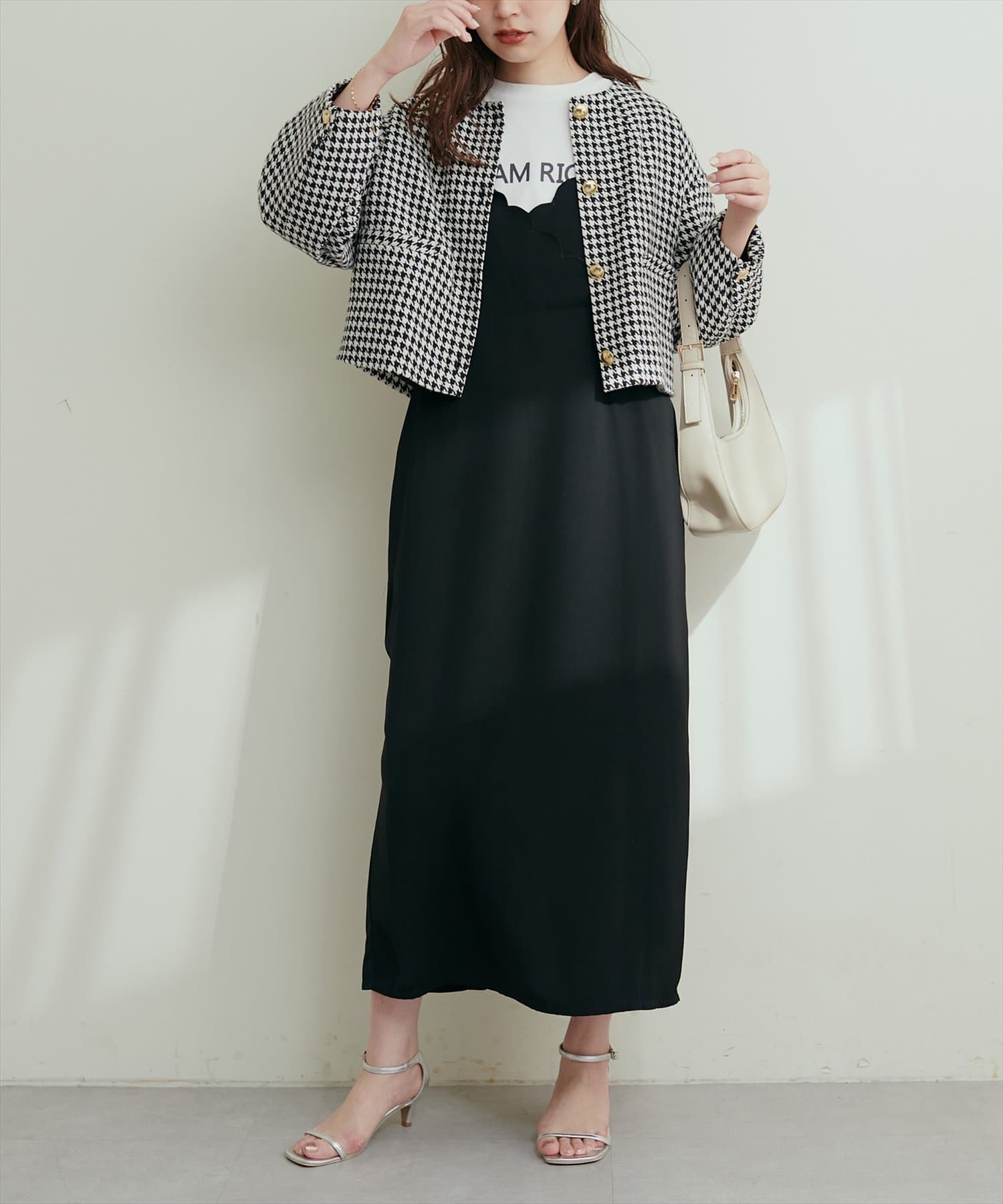 キャミワンピースや、シンプルなニットワンピースにさっと羽織って頂いたり、