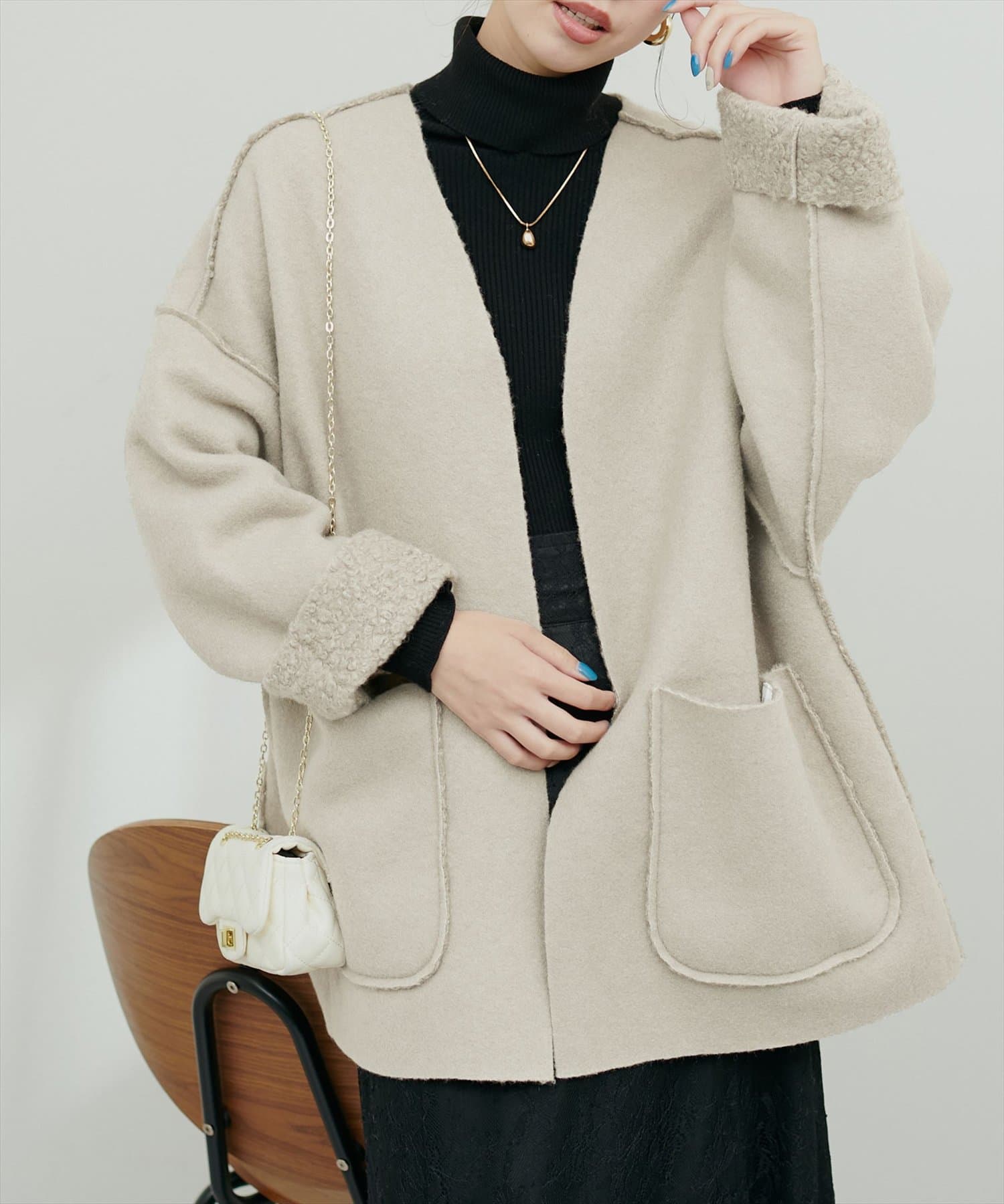 シーズンムード高まるウールライクアウター