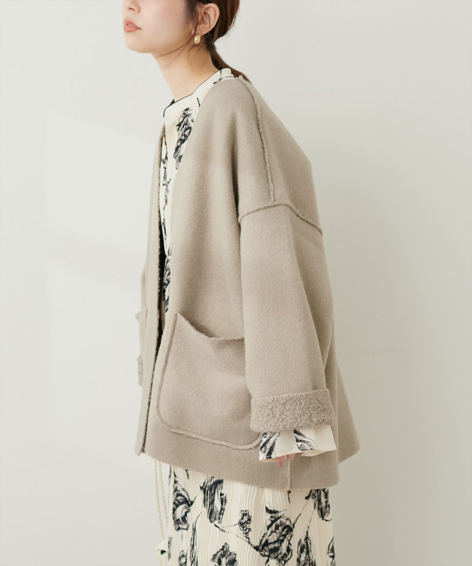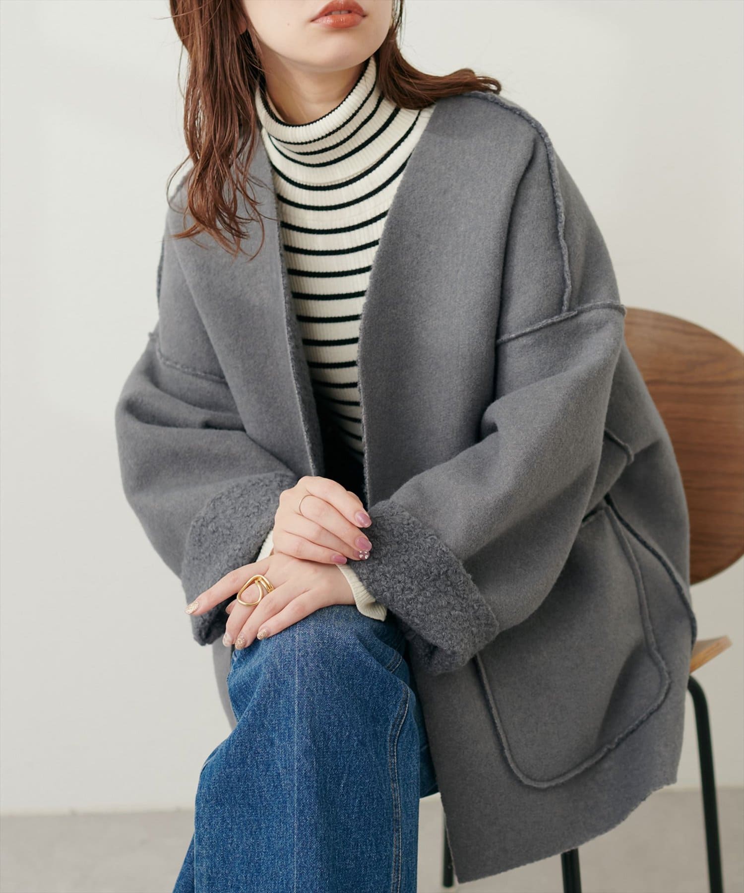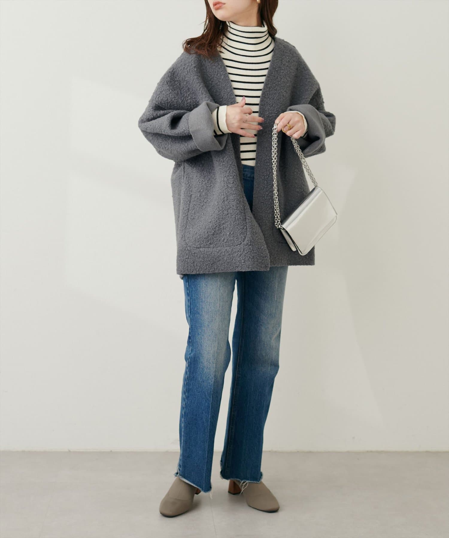 軽やかな素材と釦レスデザインで、さらっと気軽に羽織れる秋のスタメンアウターです。