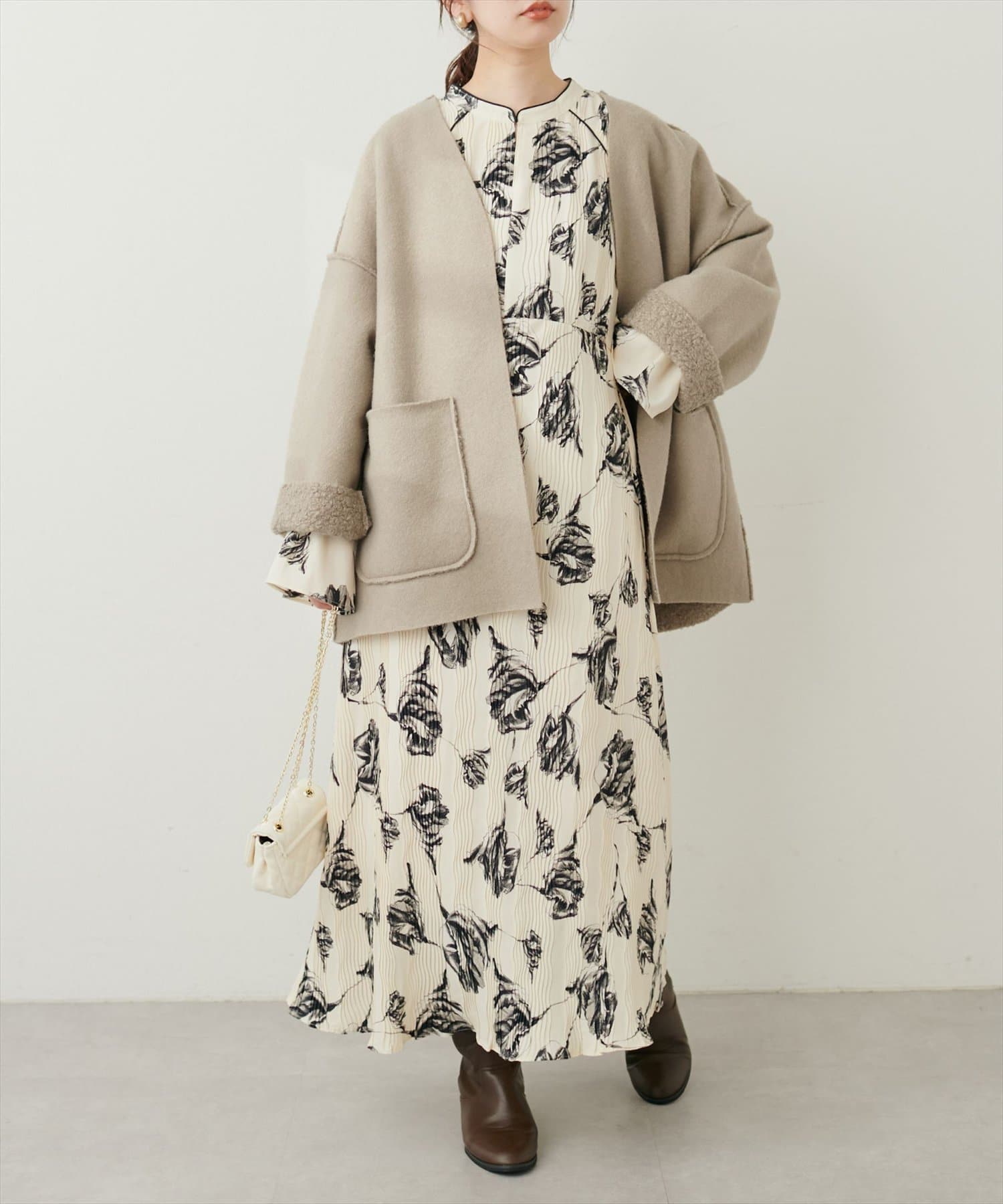 生地感:柔らかな肌触りのフェイクウール生地