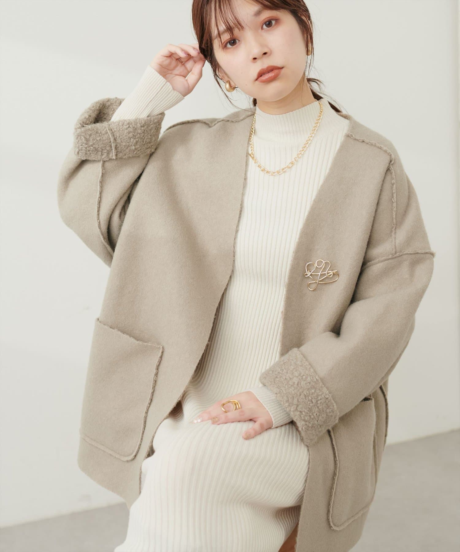 • natural couture(ナチュラルクチュール) フェイクリングウールリバーシブルトッパー