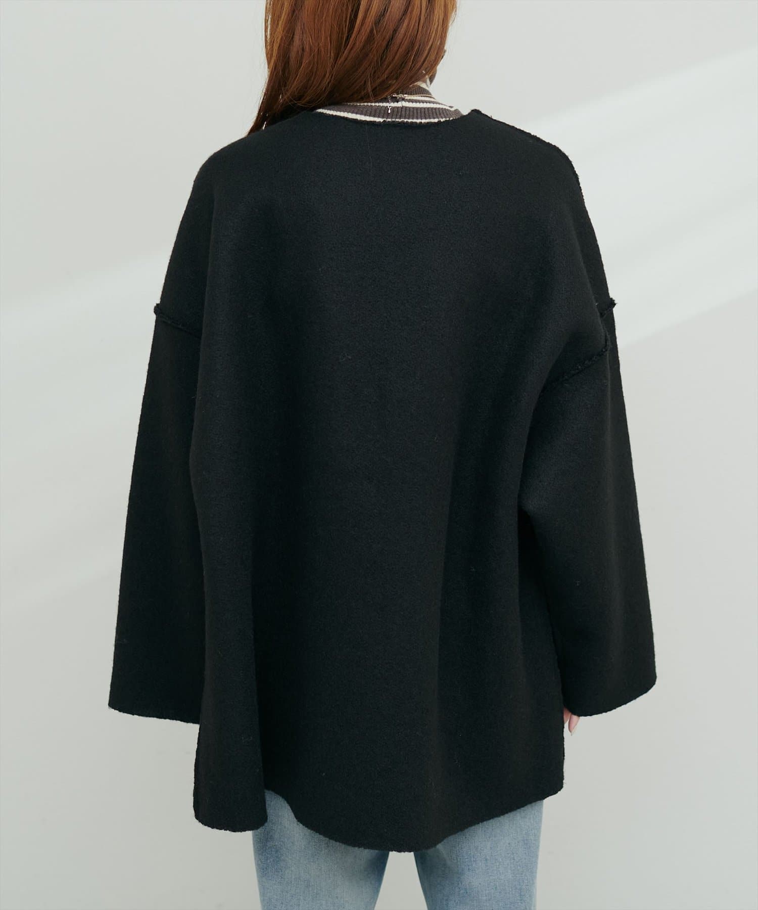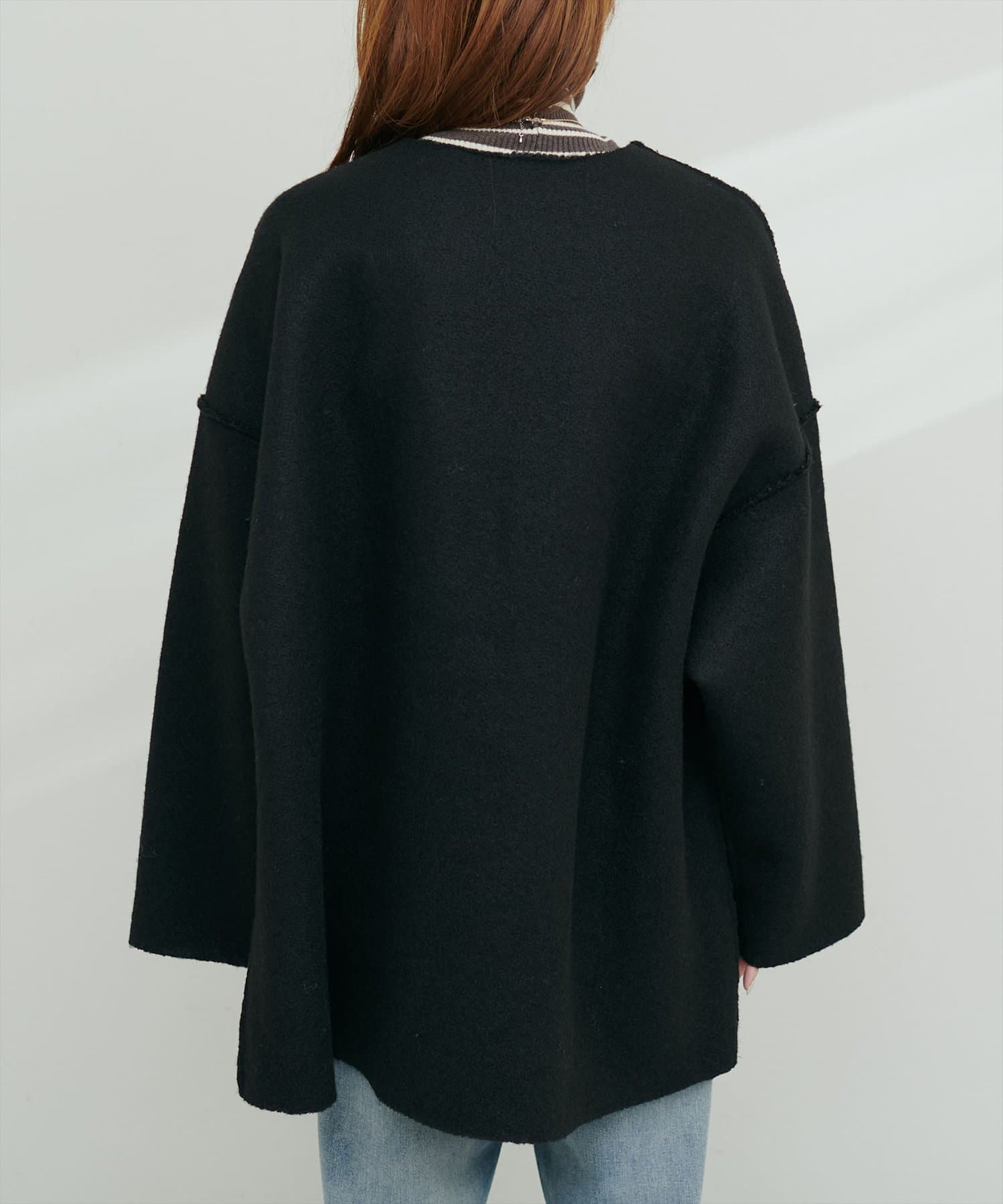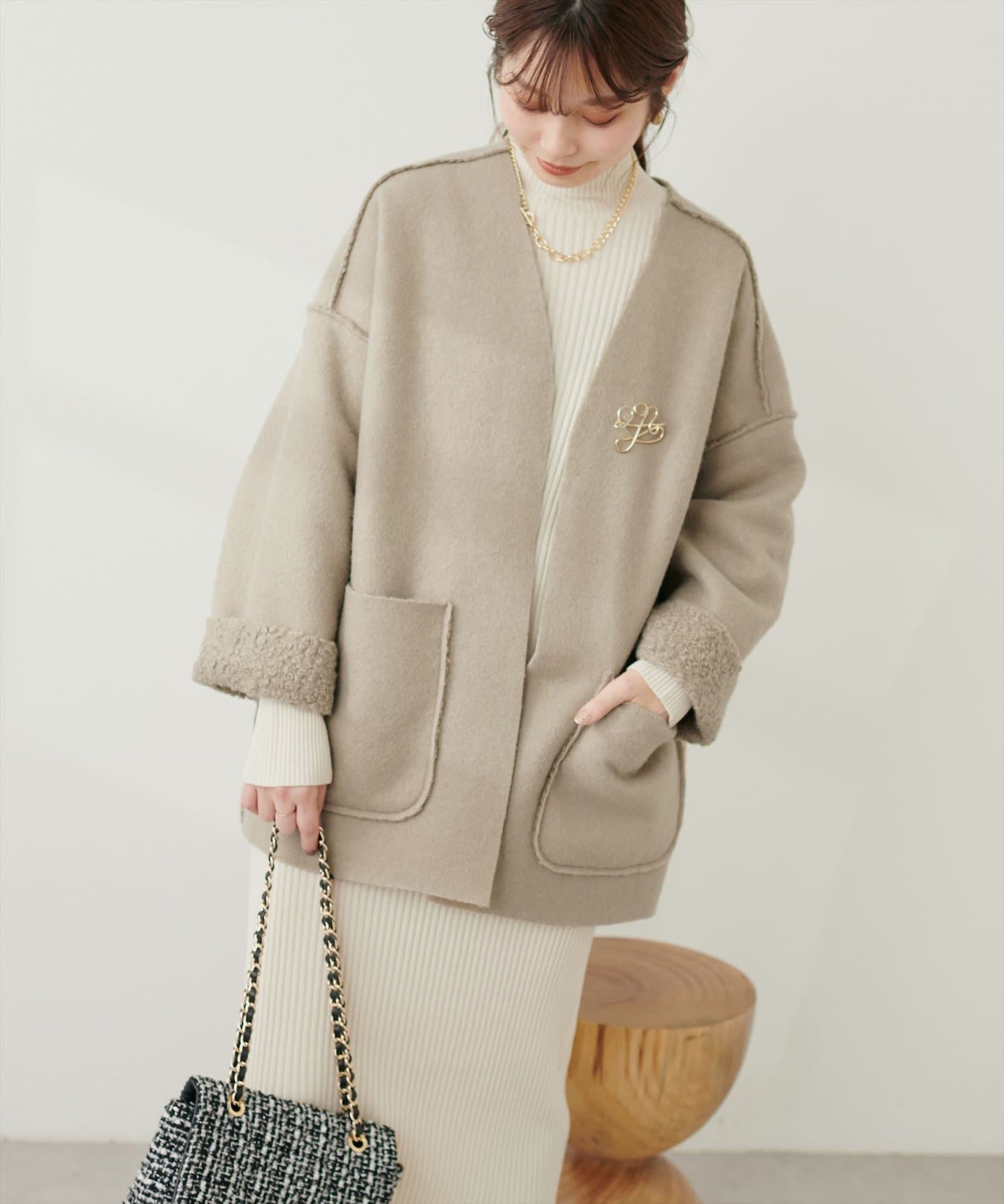 TOP > natural couture > レディース > ジャケット/アウター > ノーカラージャケット > フェイクリングウールリバーシブルトッパー