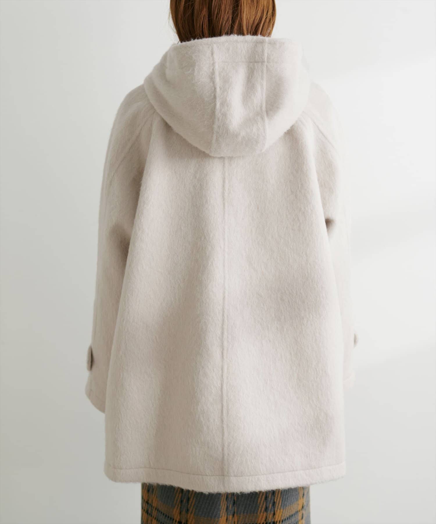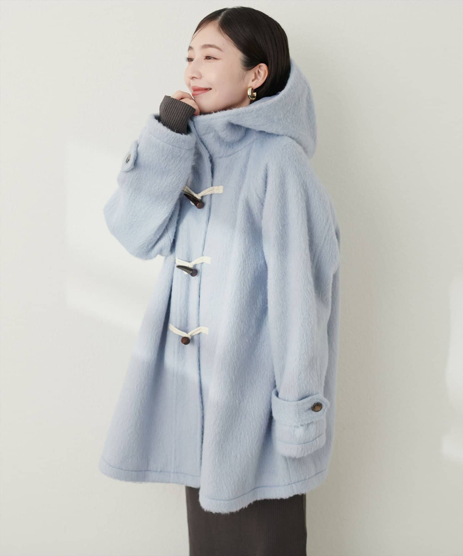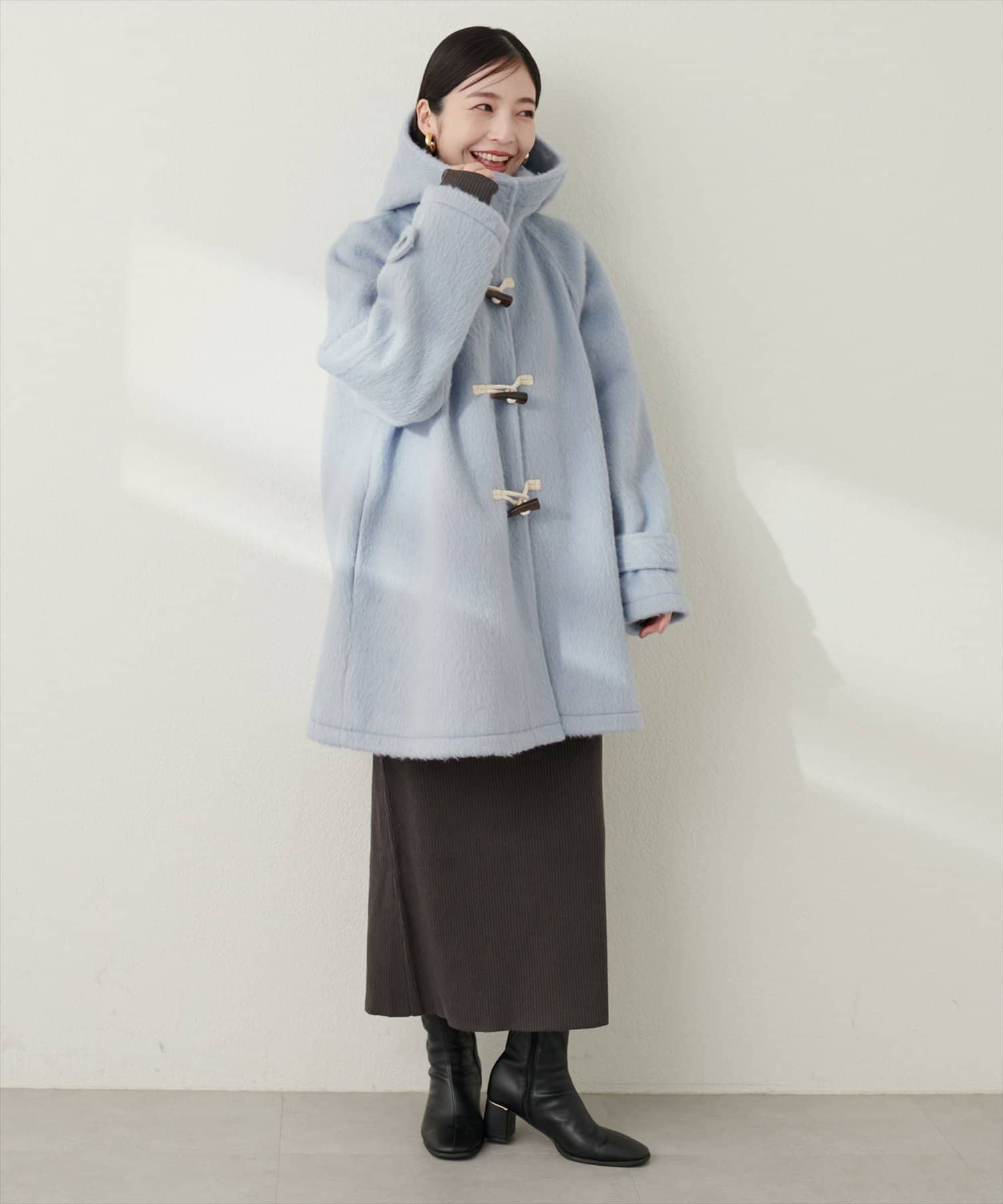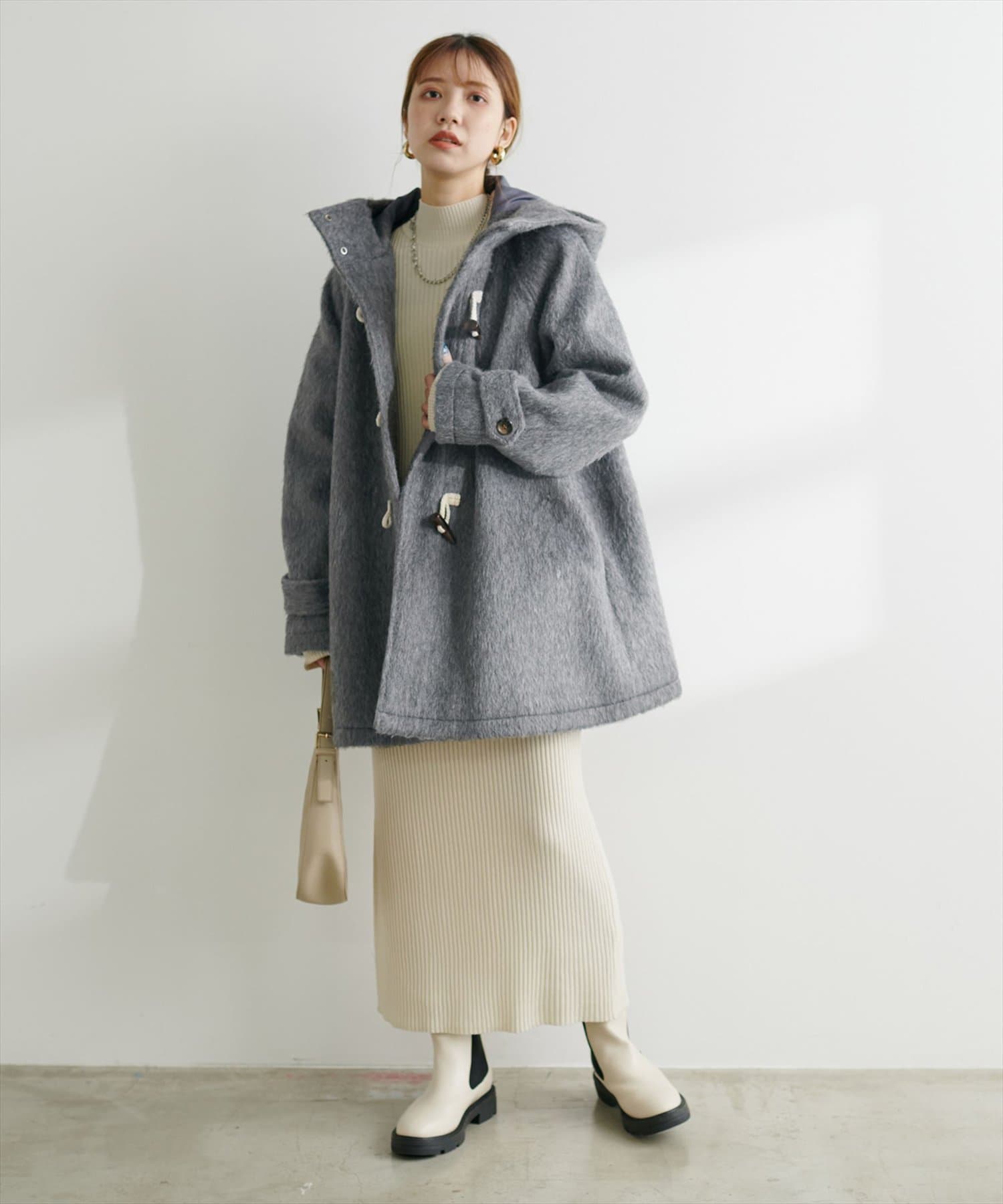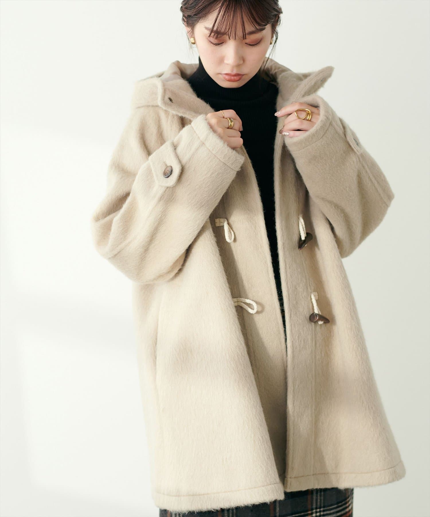 トレンドに左右されずスタイリングを選ばない定番のダッフルコートに、今季注目のシャギー素材を掛け合わせた主役級アウター。
