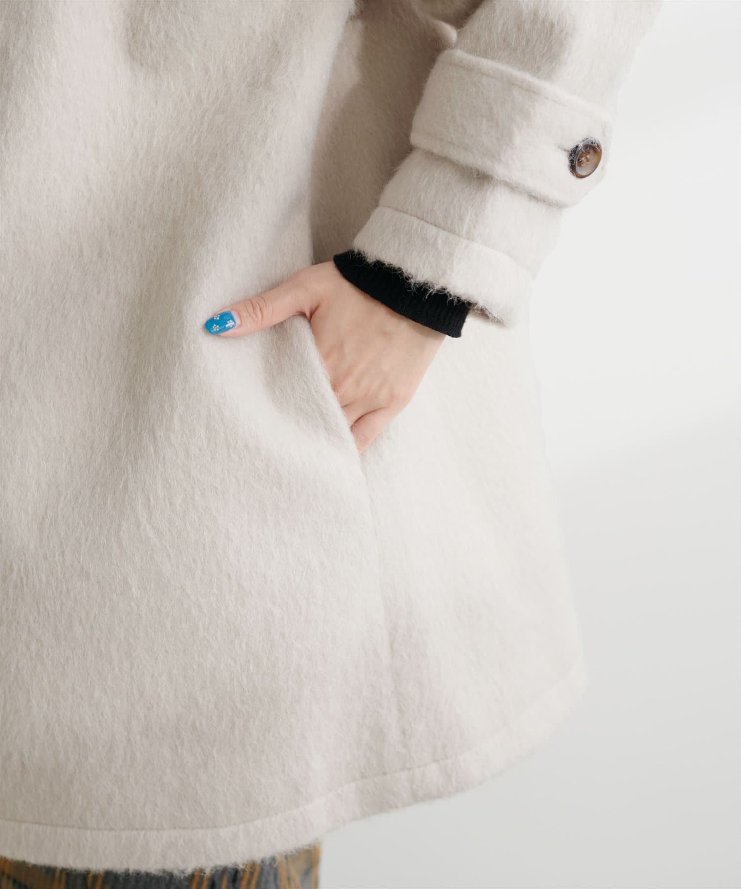 毛足があり柔らかな質感のシャギー素材を使用し、重いイメージになりがちな冬のアウターを軽やかな印象に。