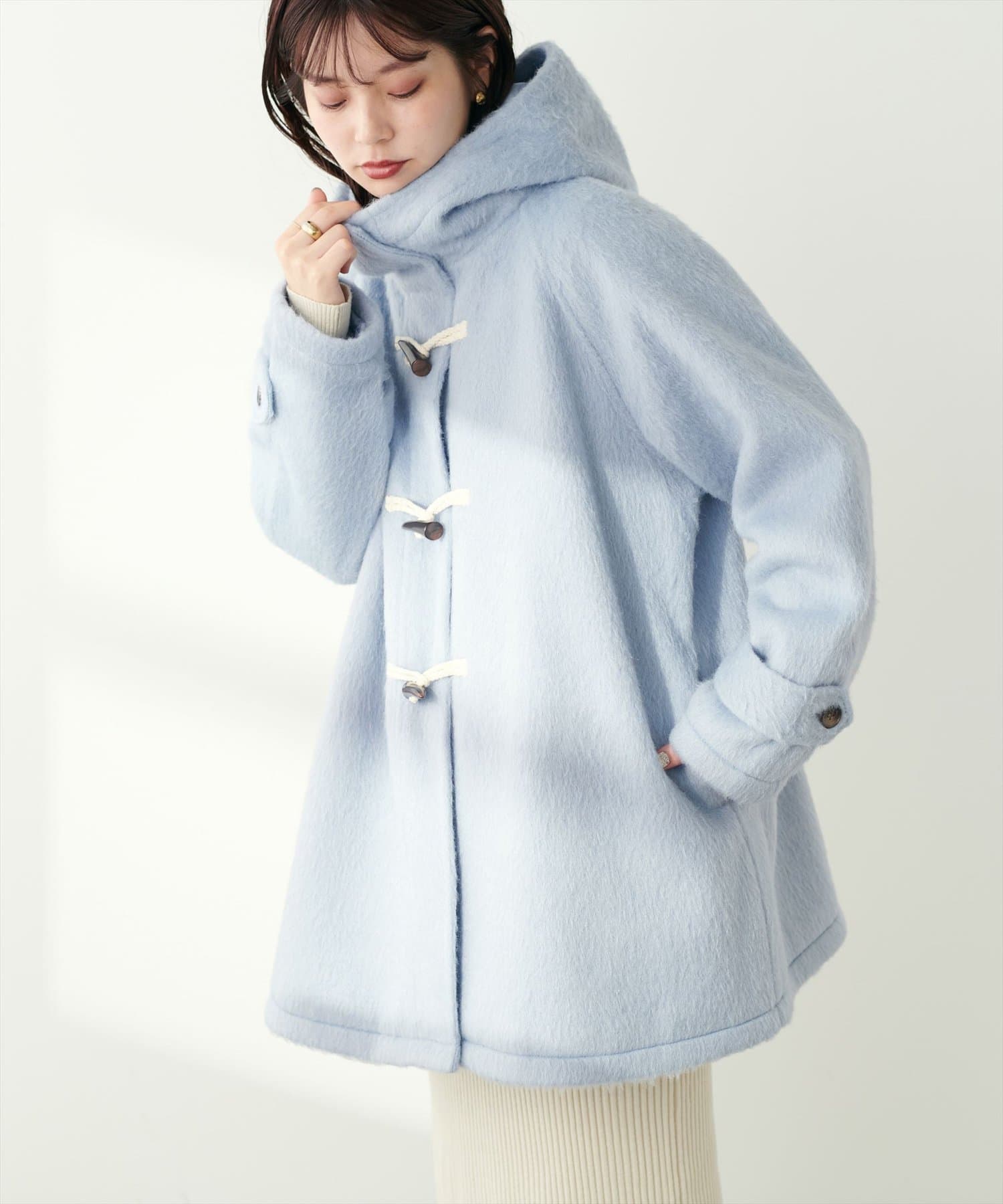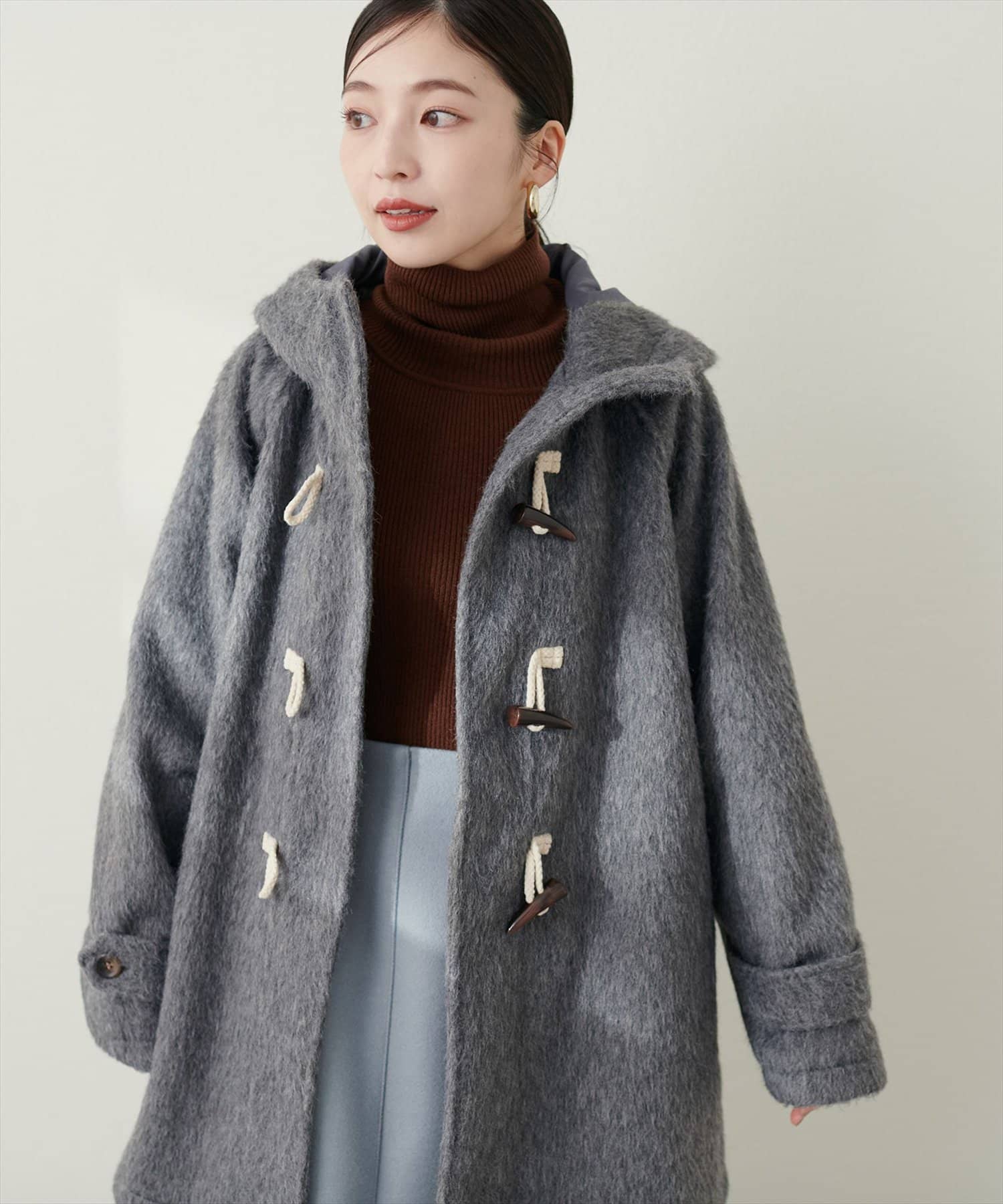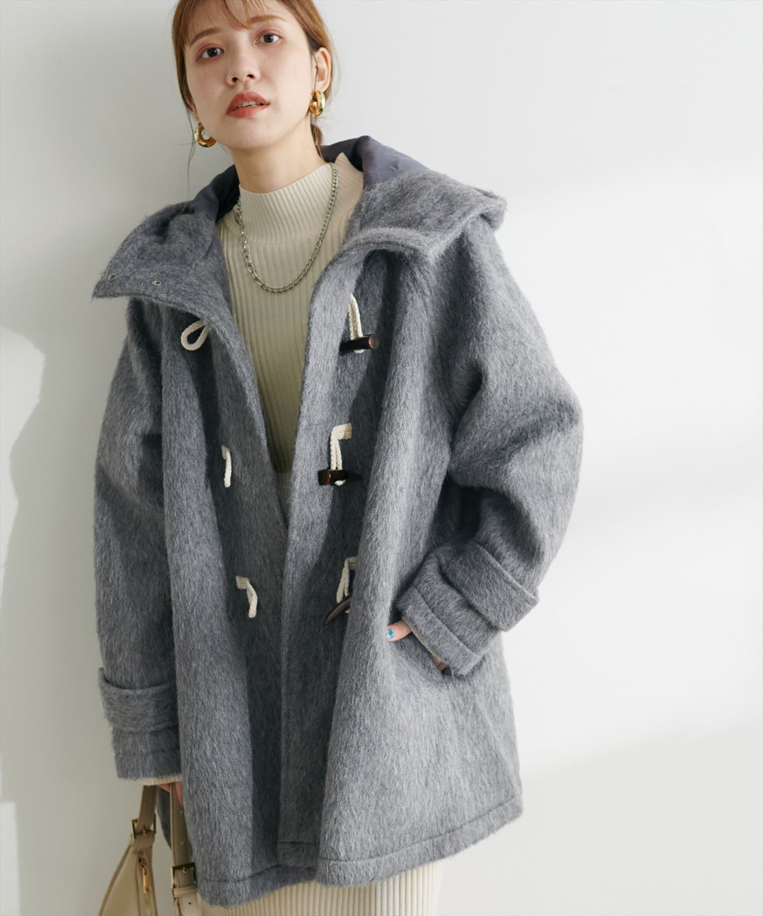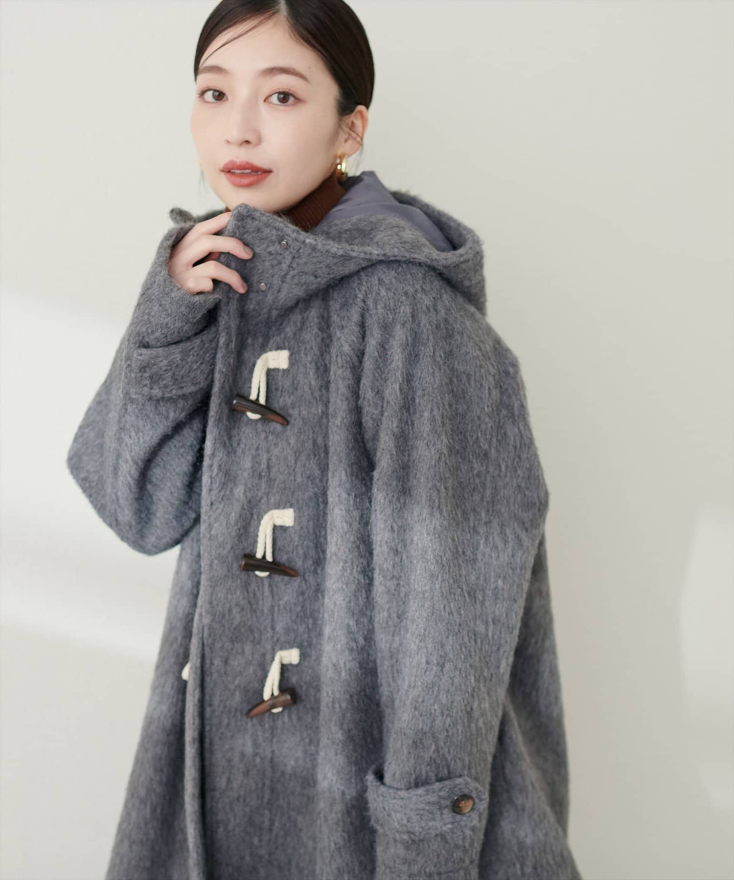 トレンドに左右されずスタイリングを選ばない定番のダッフルコートに、今季注目のシャギー素材を掛け合わせた主役級アウター。