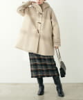 クラシカルな雰囲気が漂うダッフルコートをゆったりとしたサイジングで仕上げ、トレンド感をアップさせた1着。