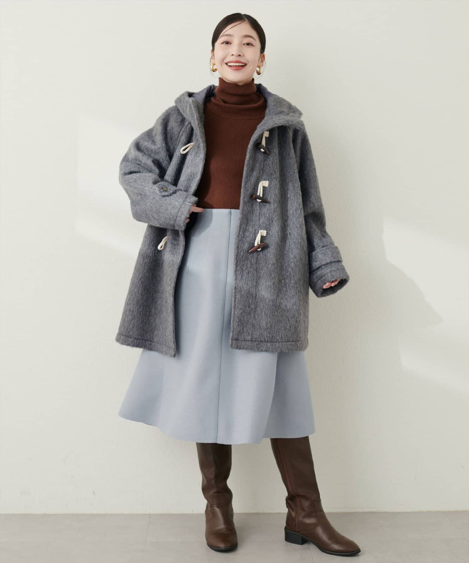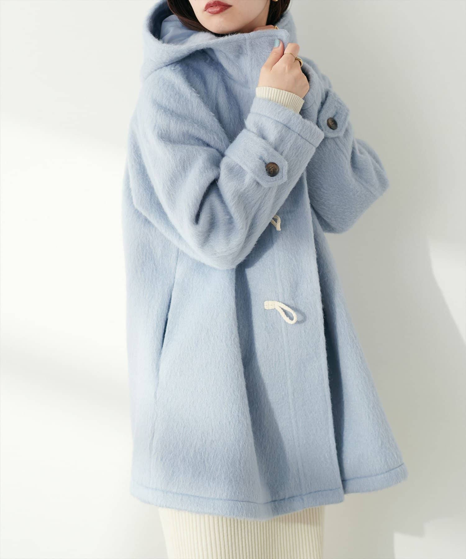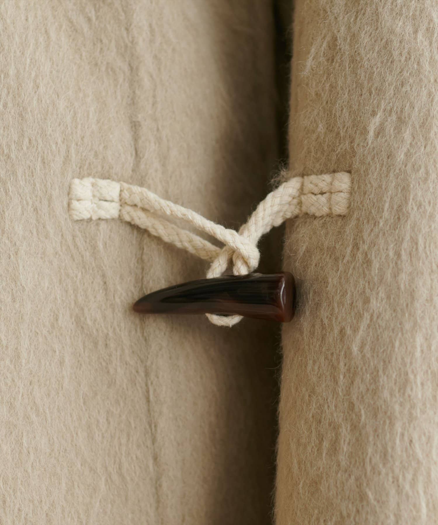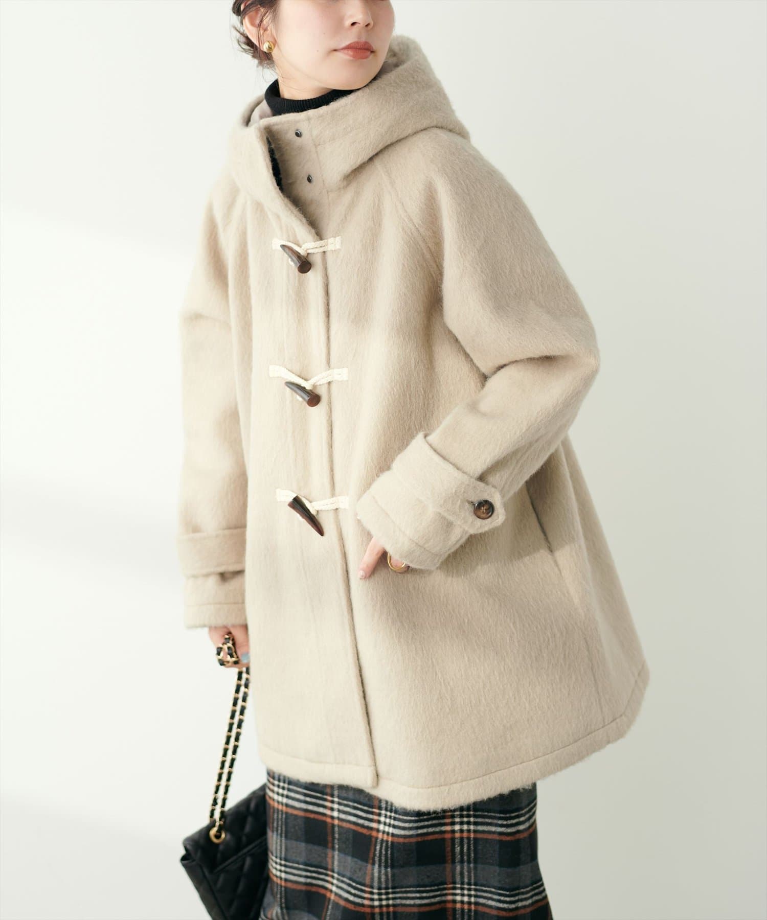 トレンドに左右されずスタイリングを選ばない定番のダッフルコートに、今季注目のシャギー素材を掛け合わせた主役級アウター。