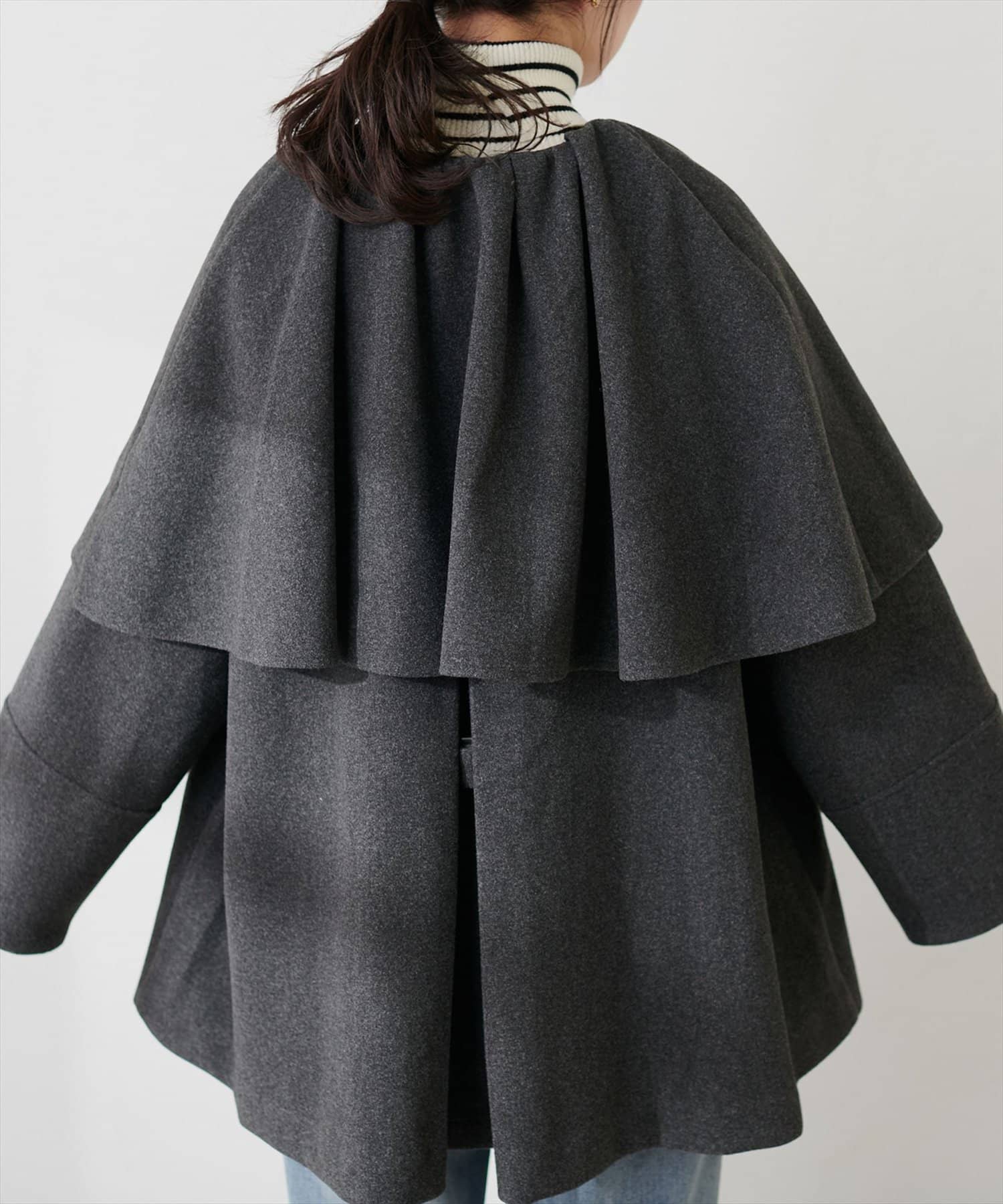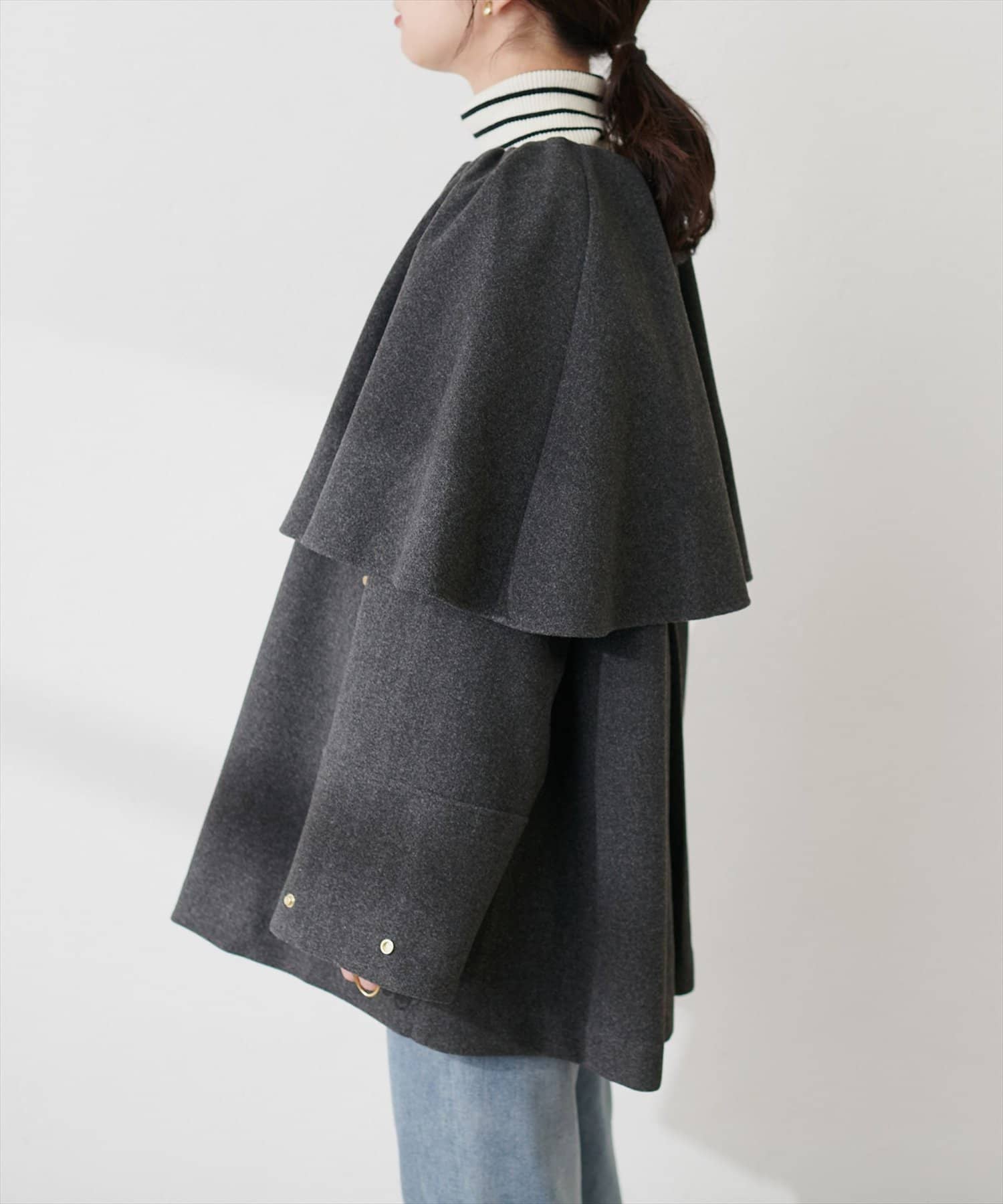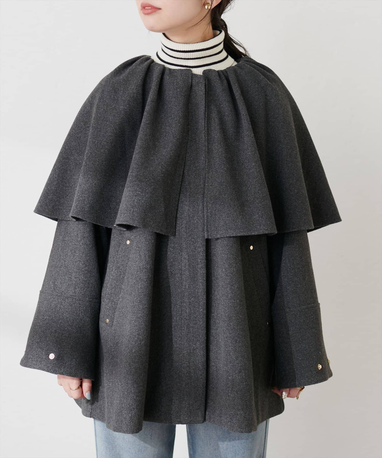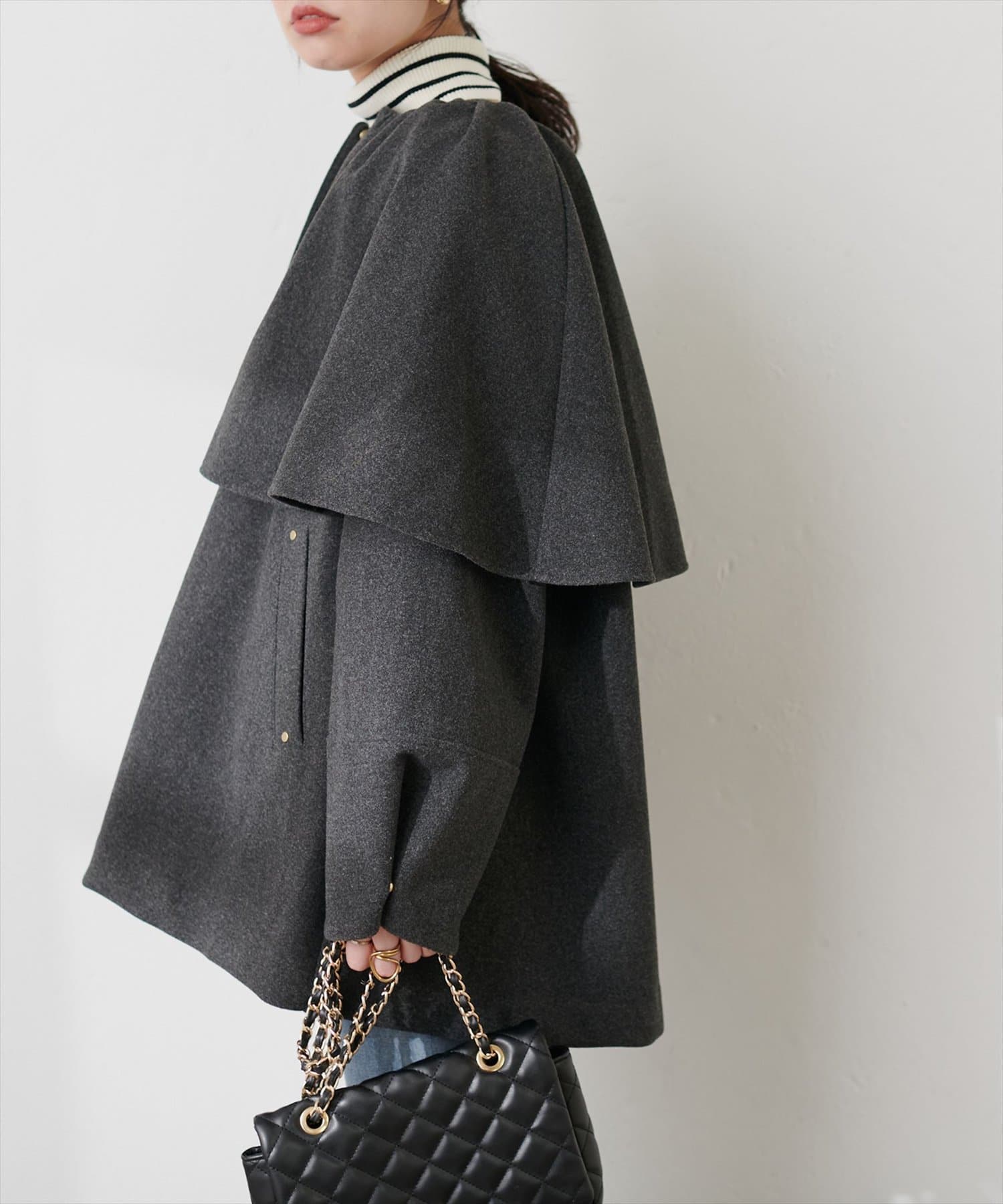 ミドル丈でボリュームのあるケープのデザインが特徴のアウターが登場♪