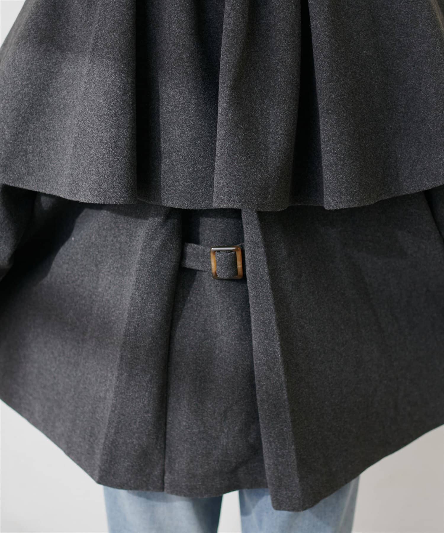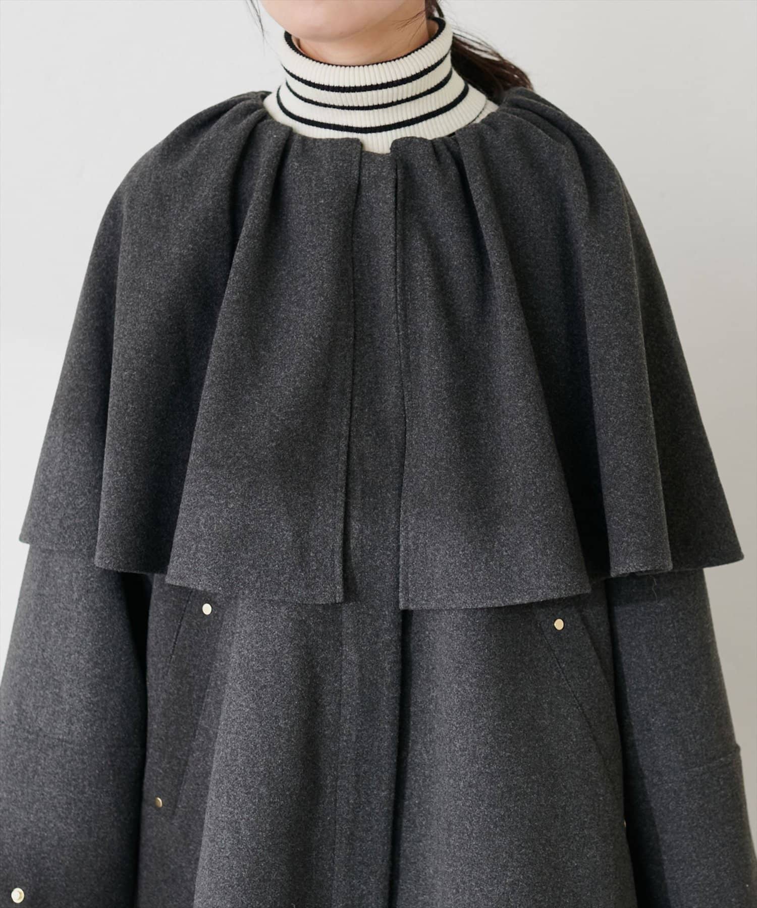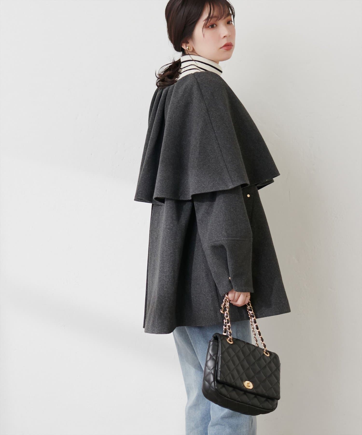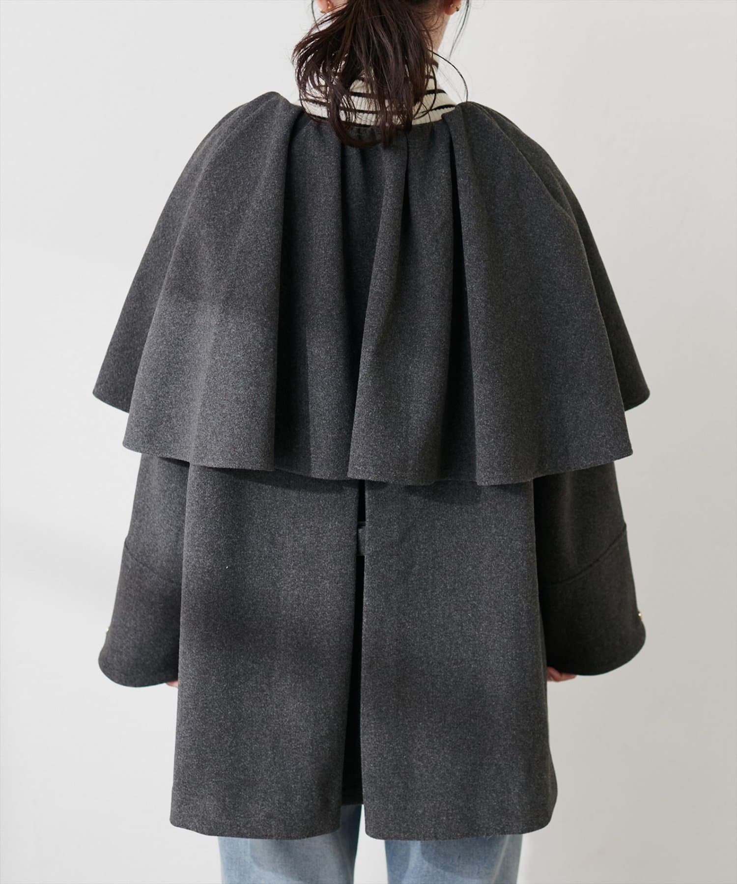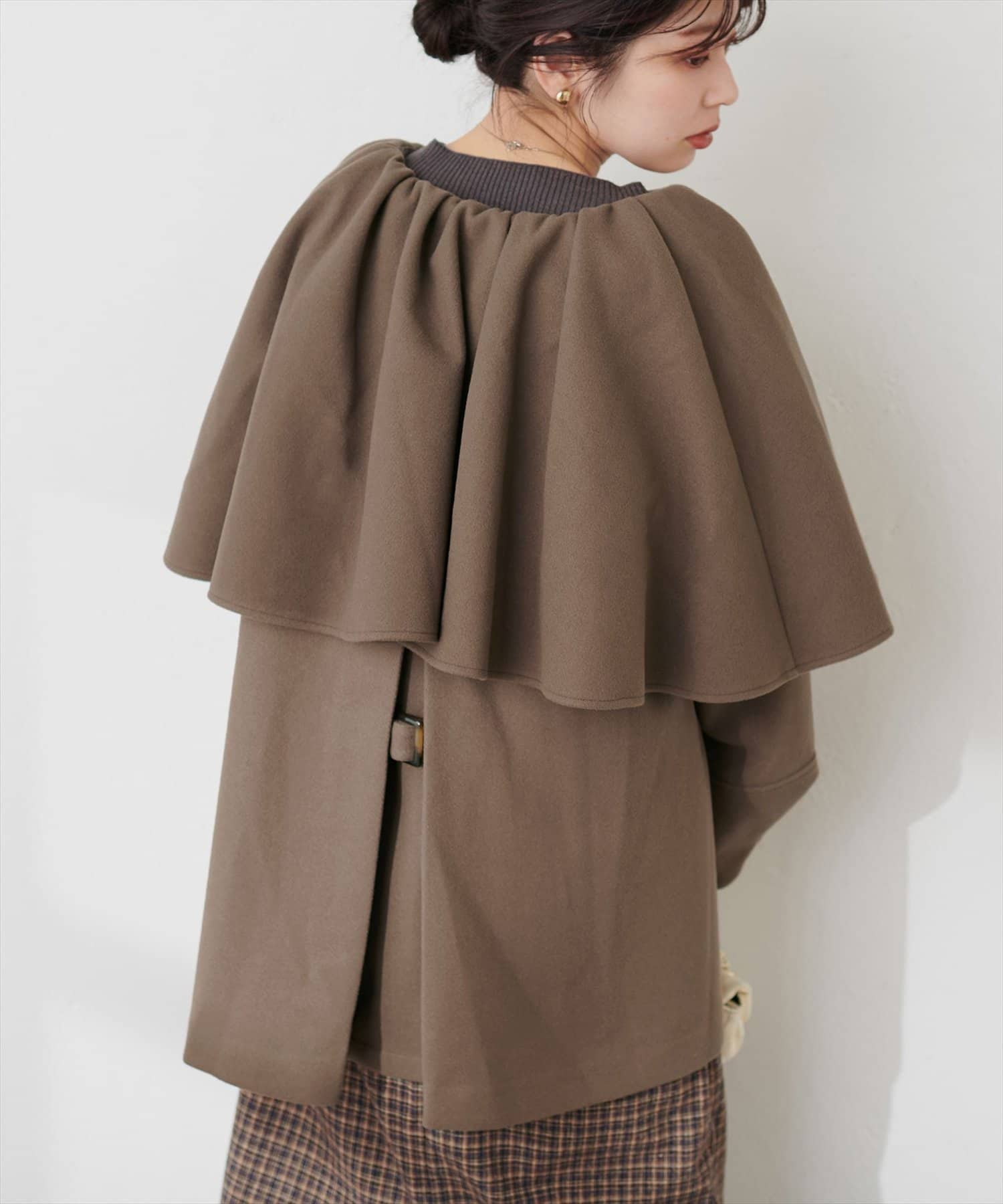 ミドル丈でボリュームのあるケープのデザインが特徴のアウターが登場♪