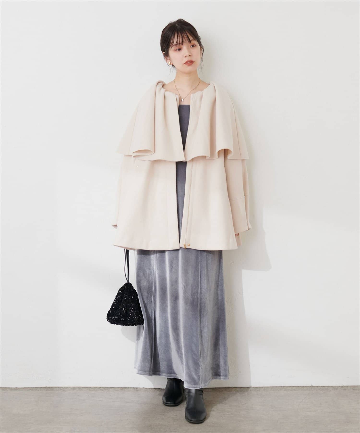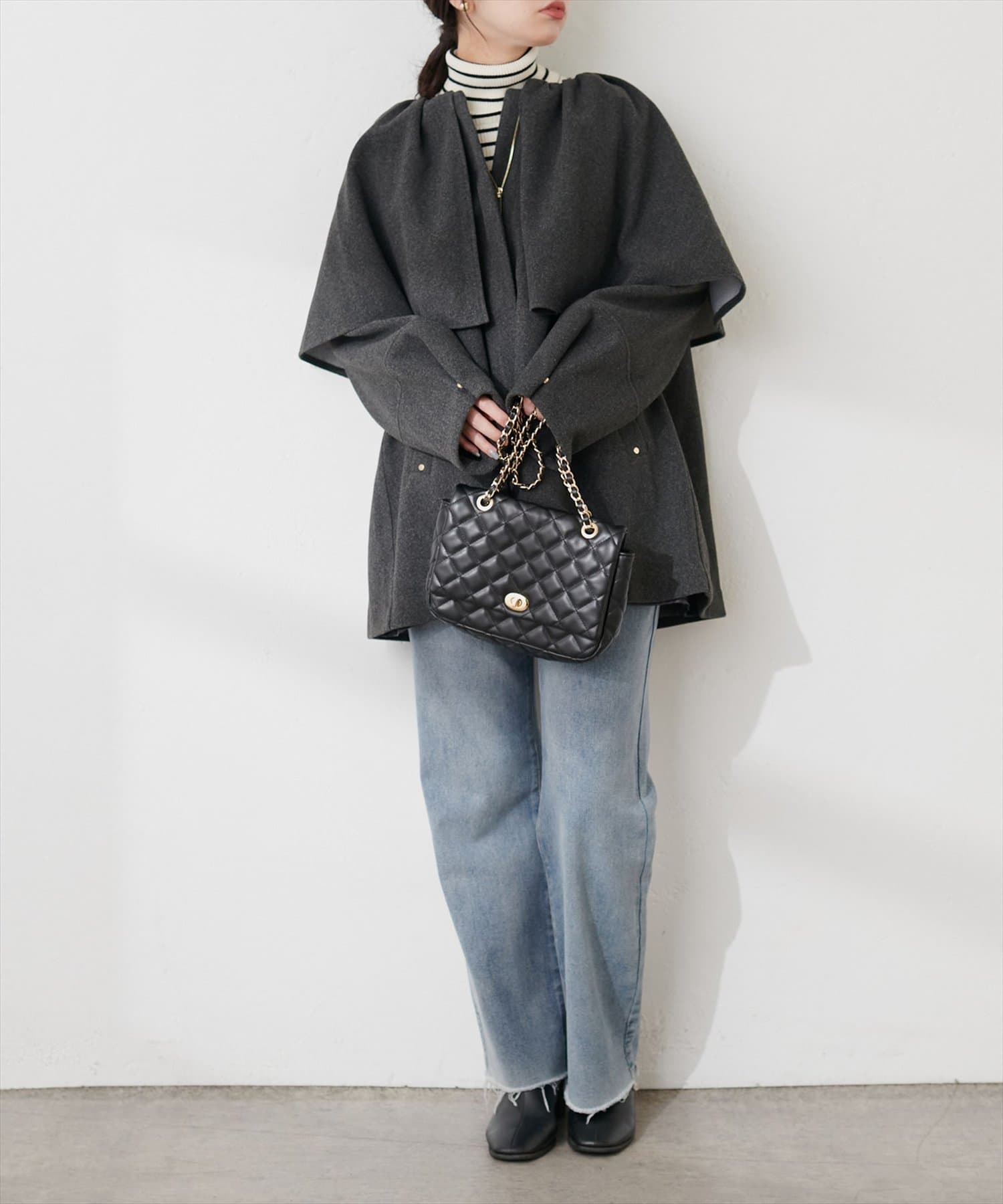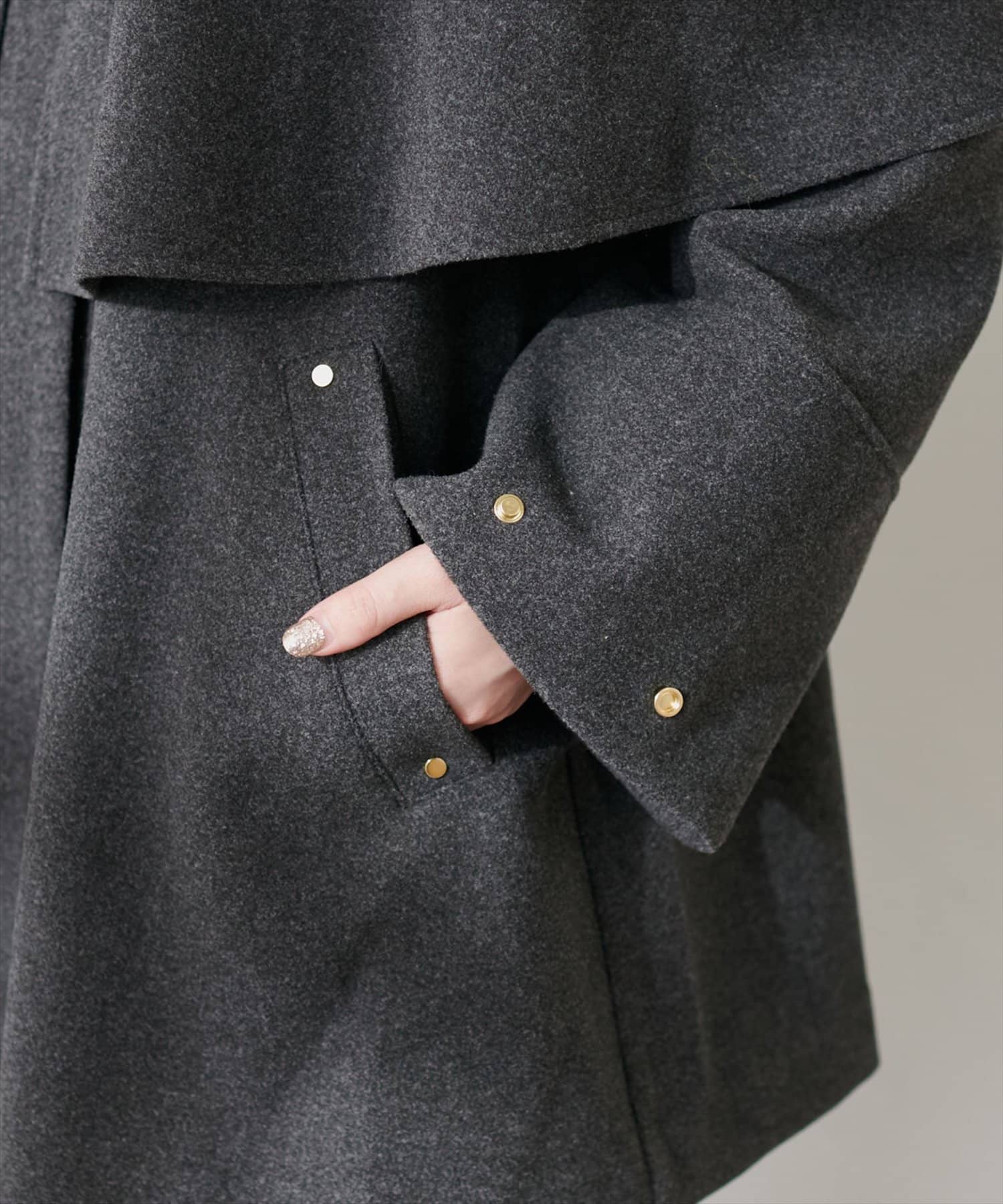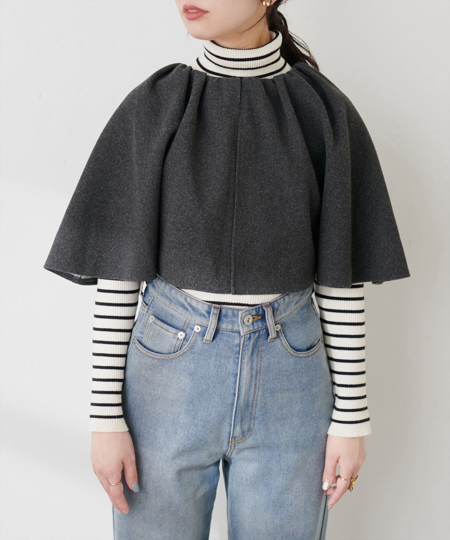 ミドル丈でボリュームのあるケープのデザインが特徴のアウターが登場♪