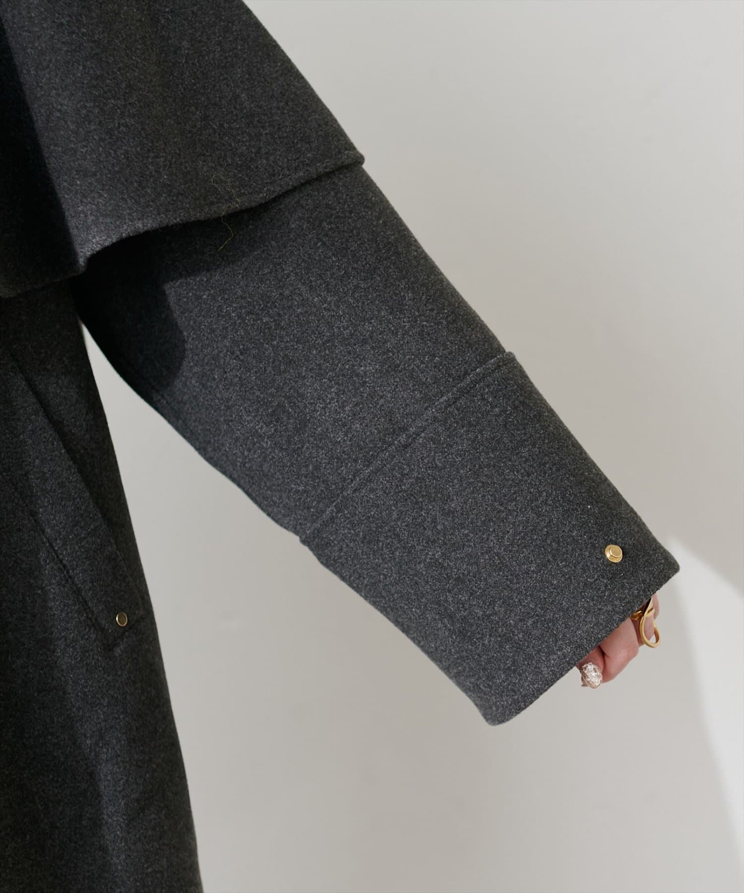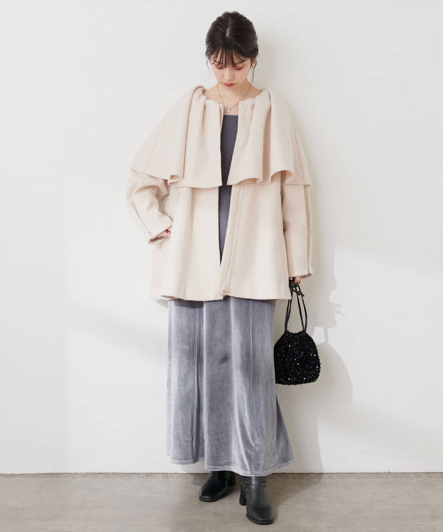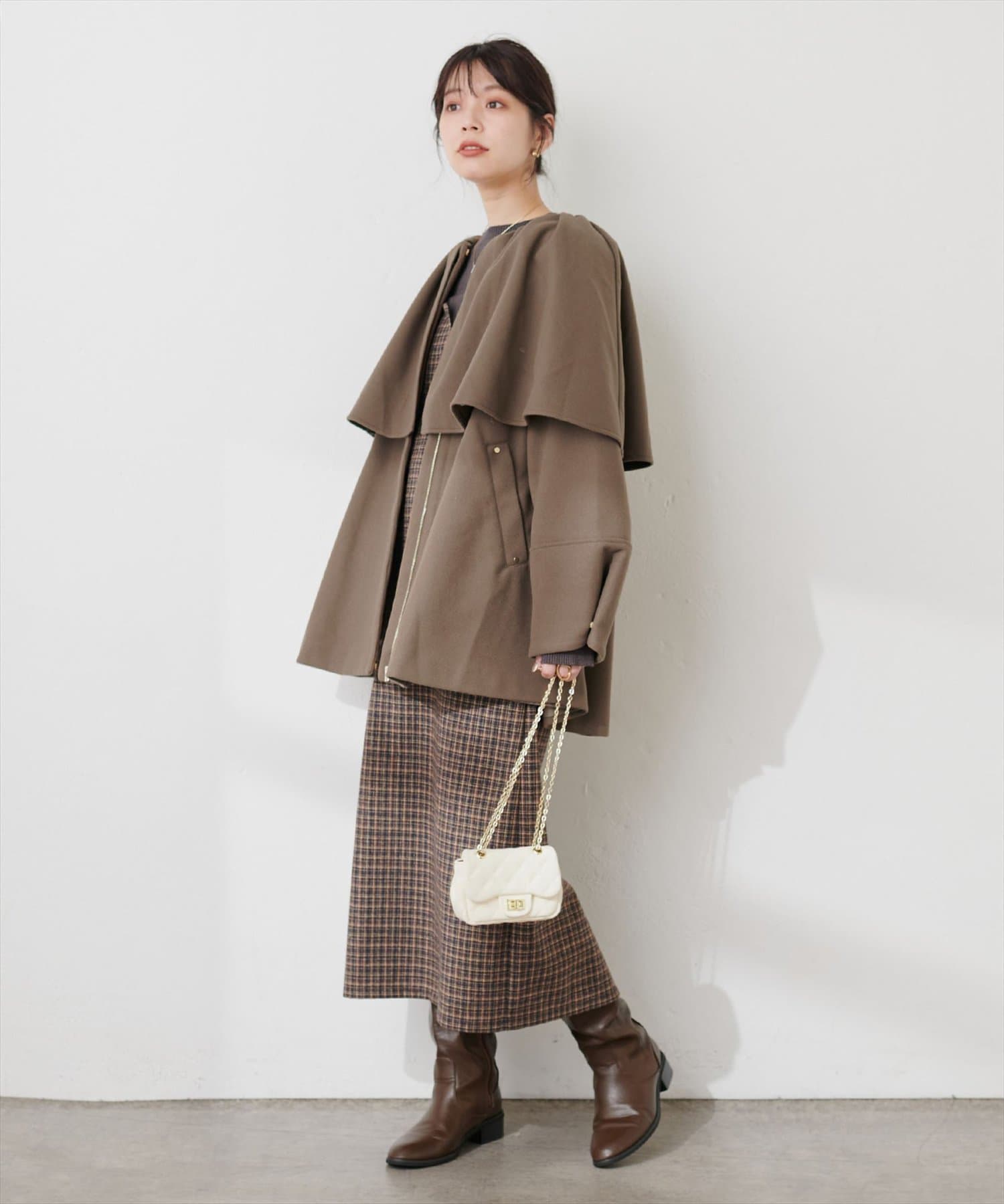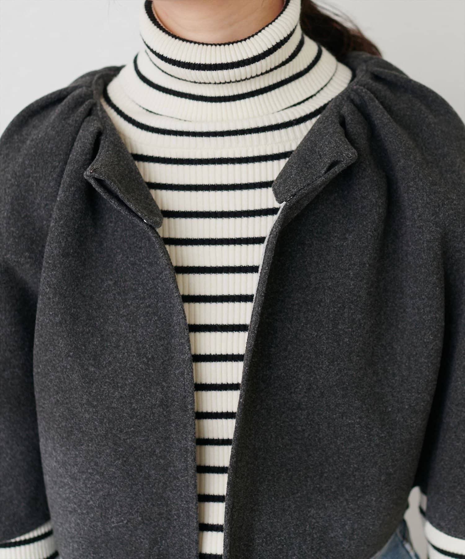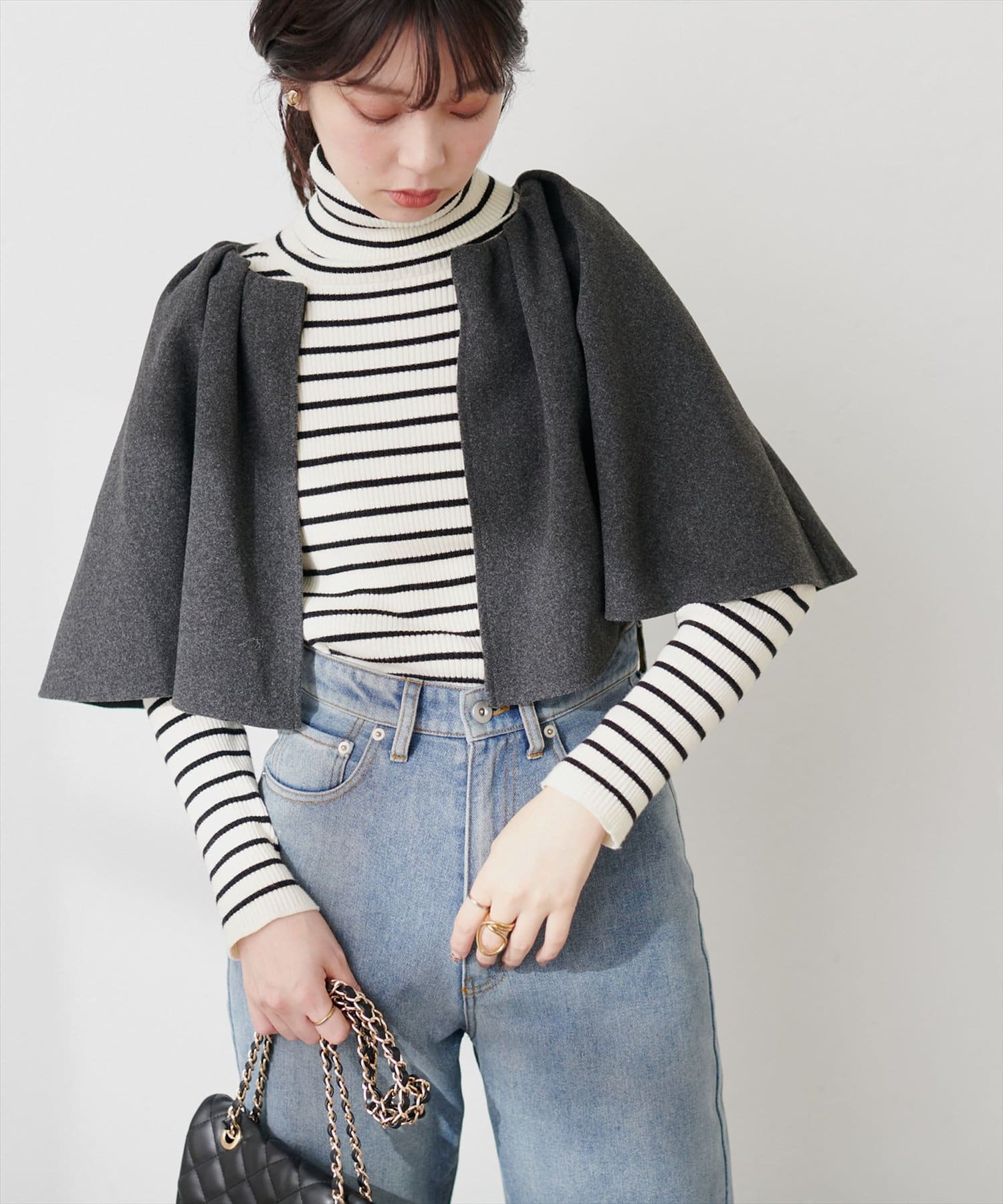ミドル丈でボリュームのあるケープのデザインが特徴のアウターが登場♪