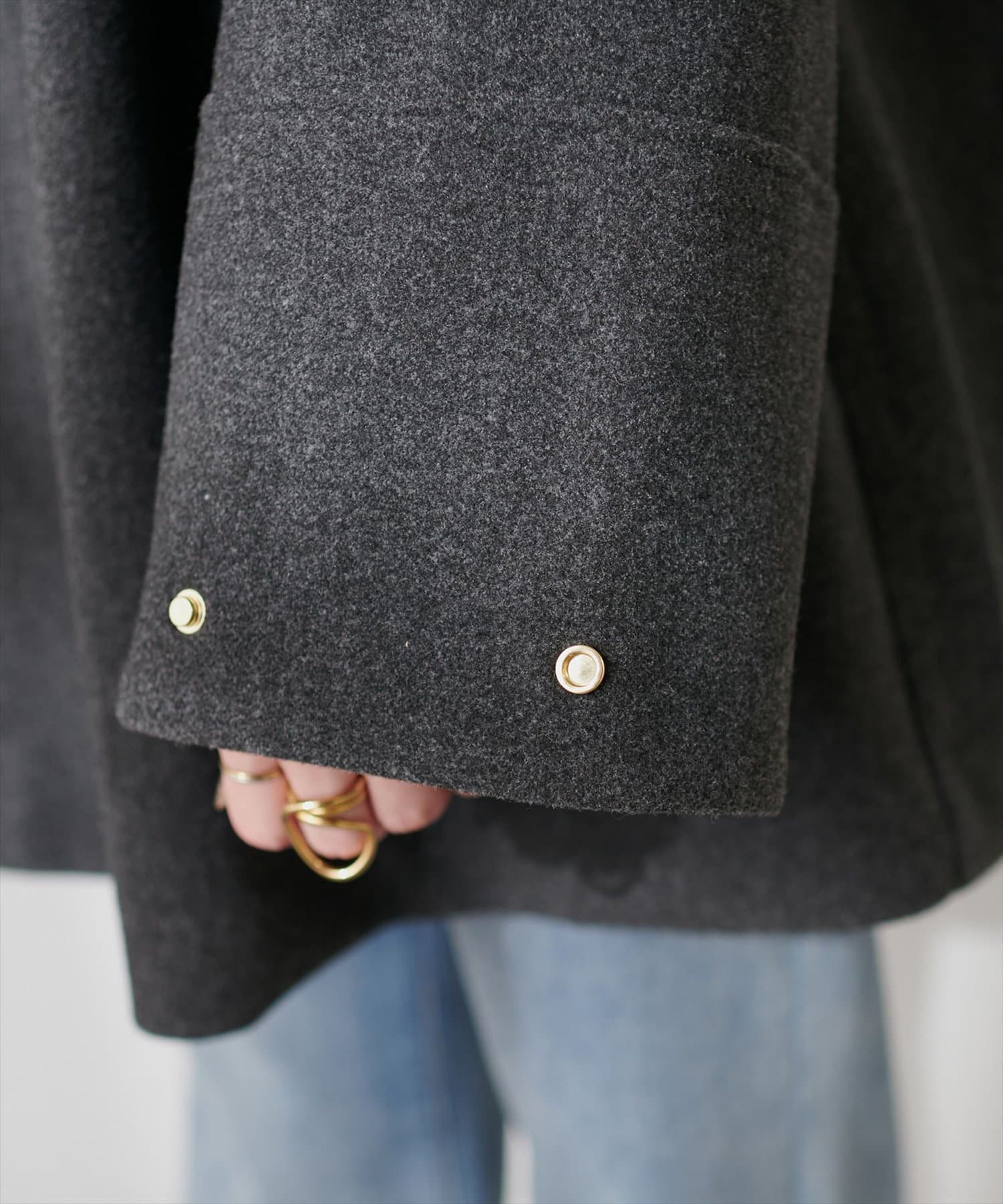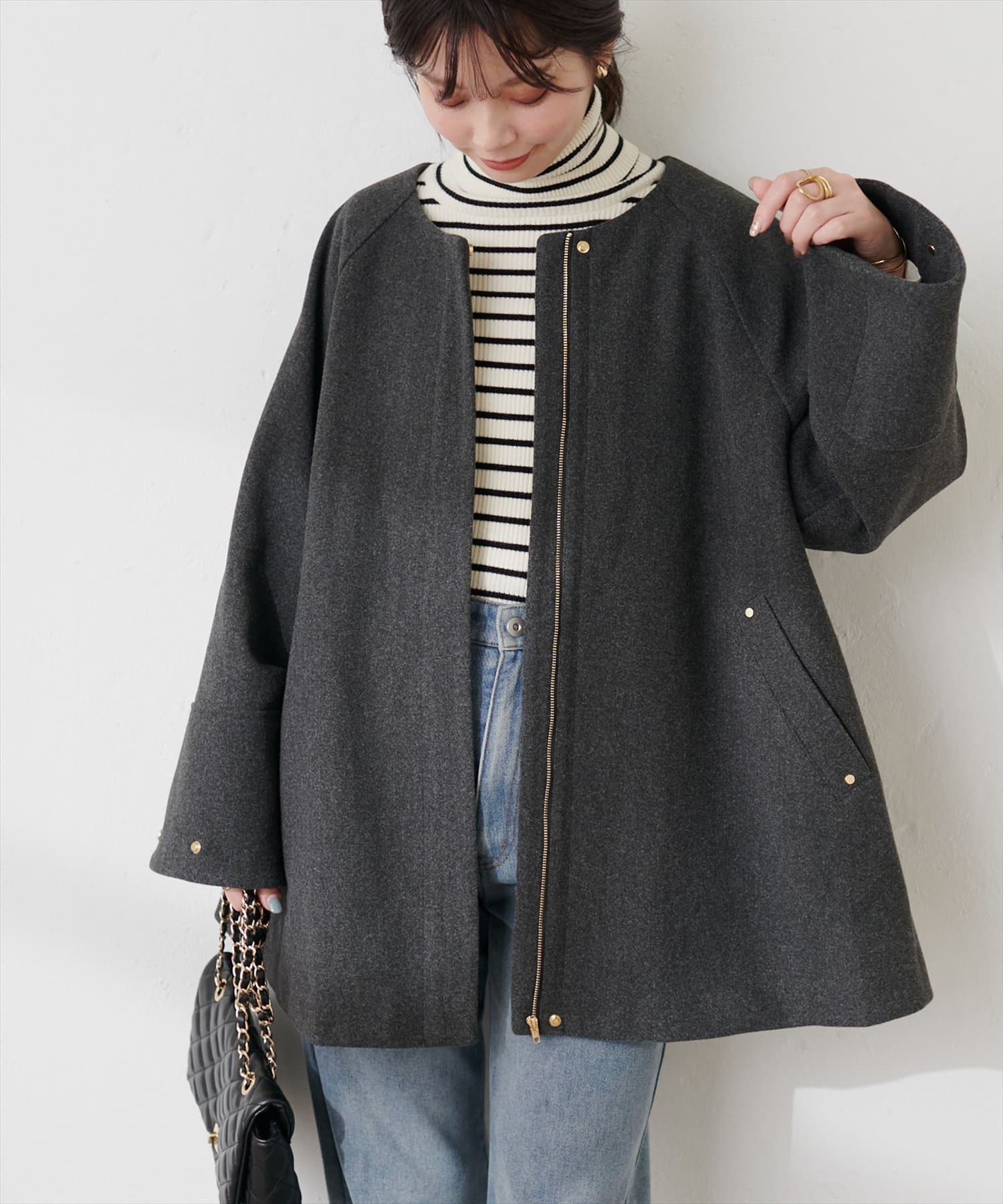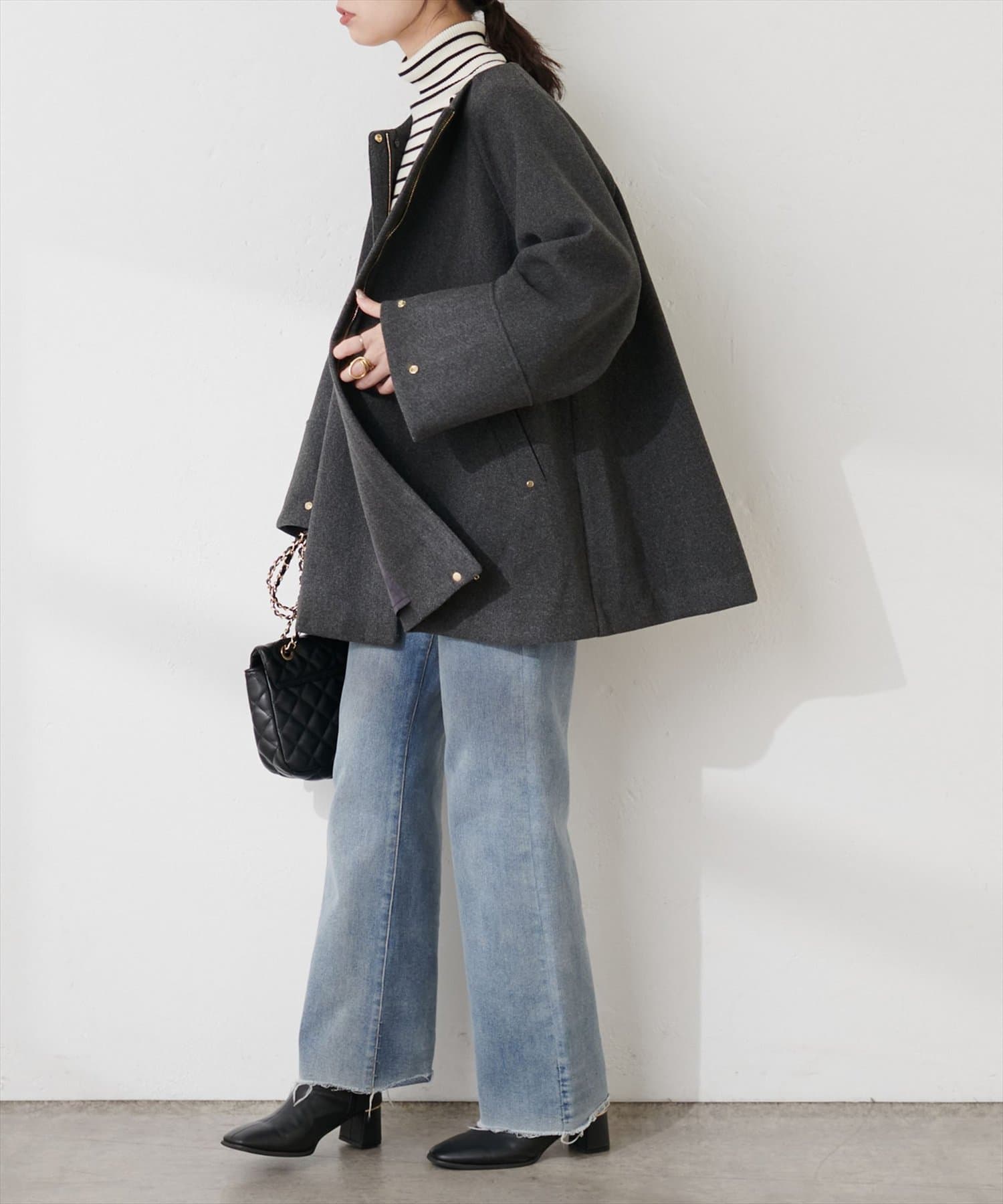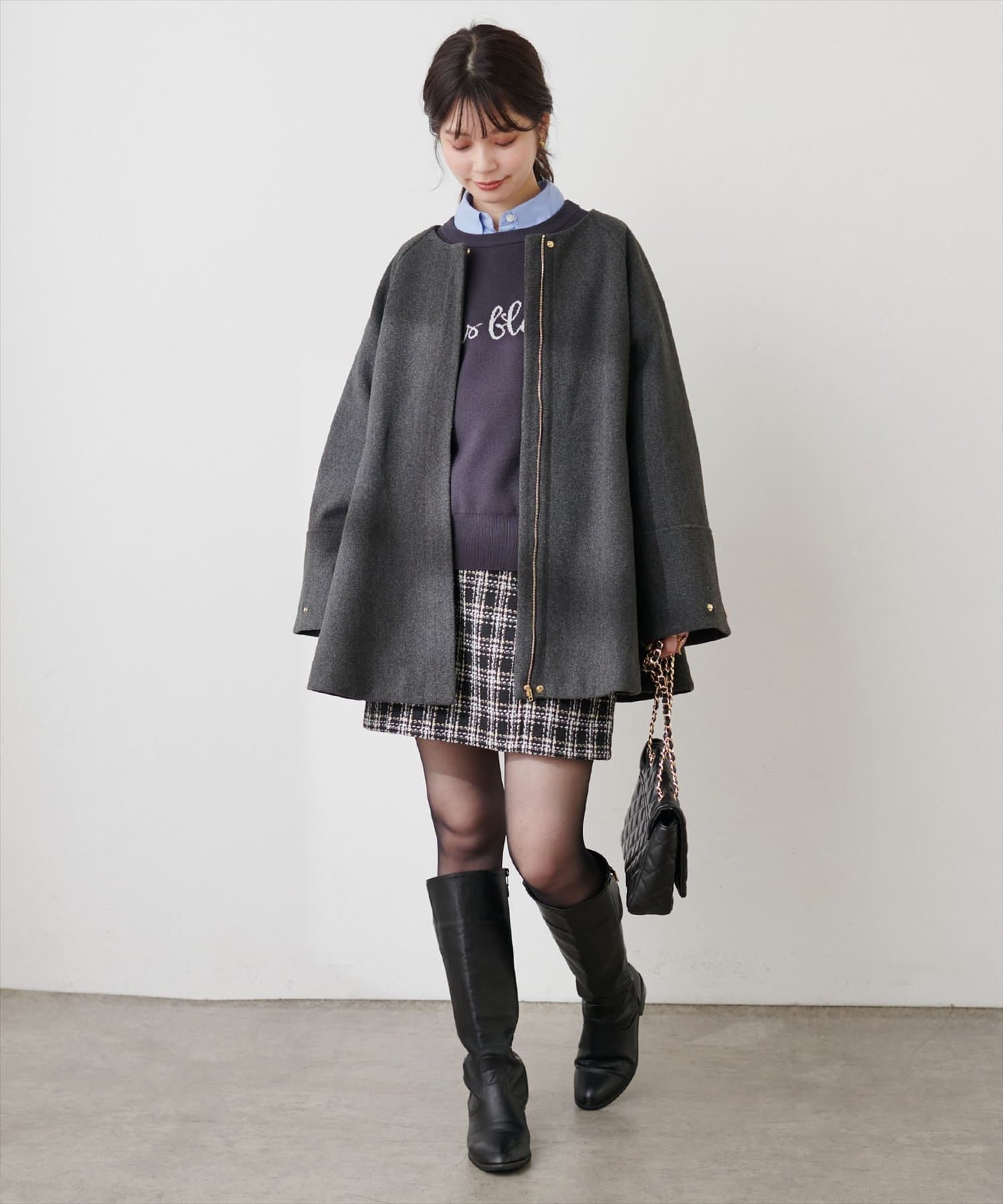 ミドル丈でボリュームのあるケープのデザインが特徴のアウターが登場♪