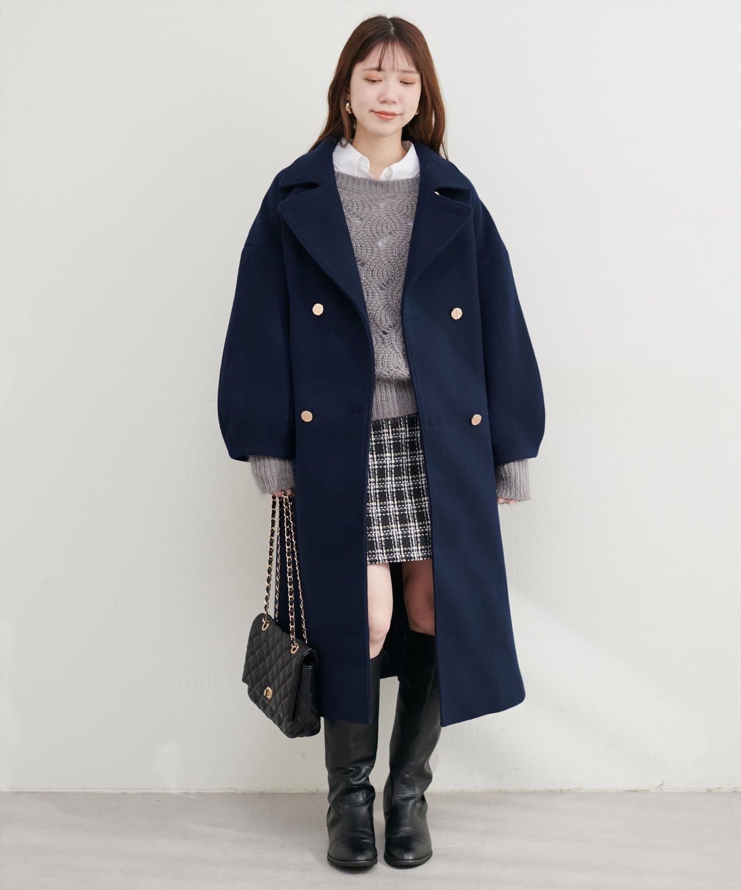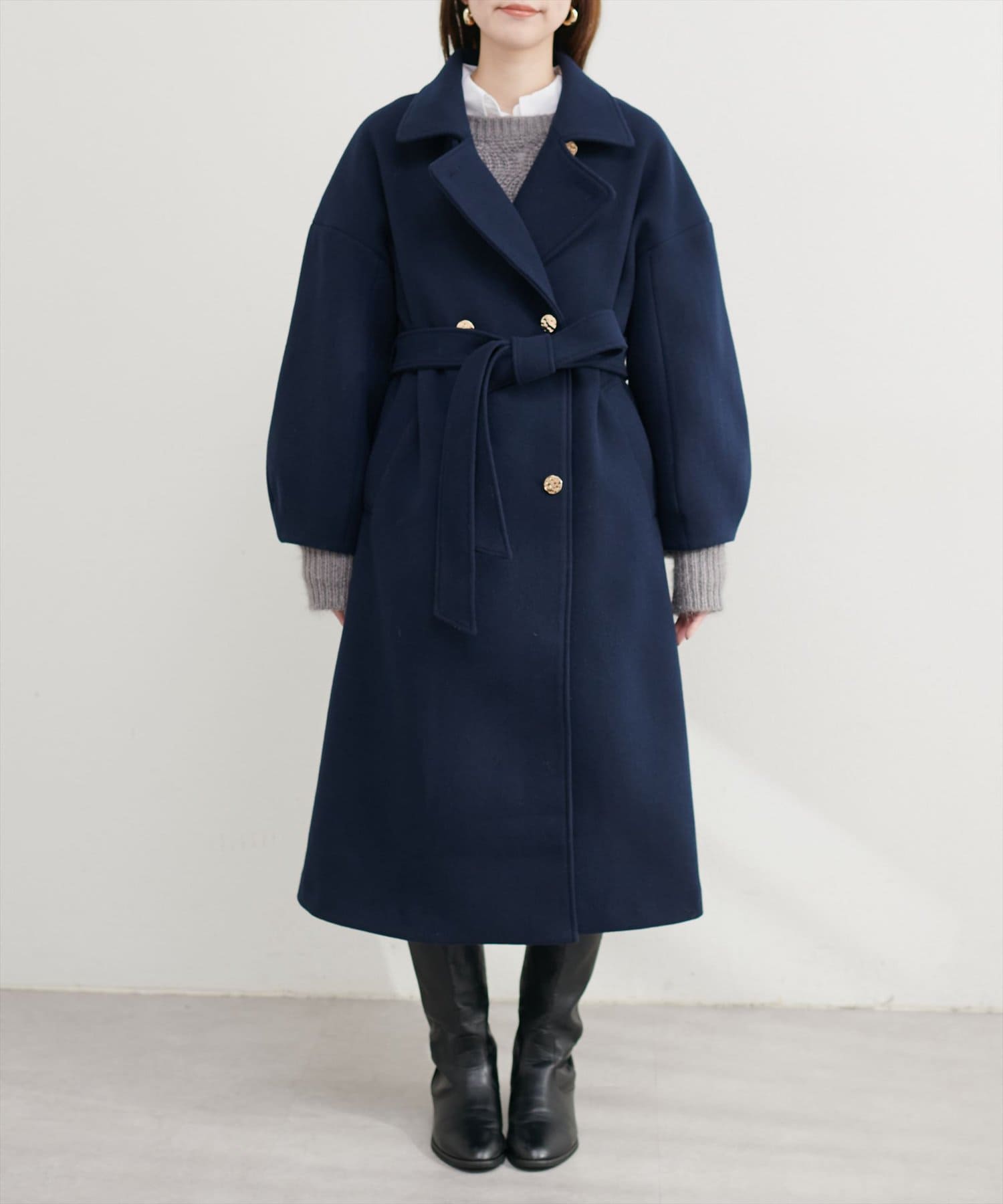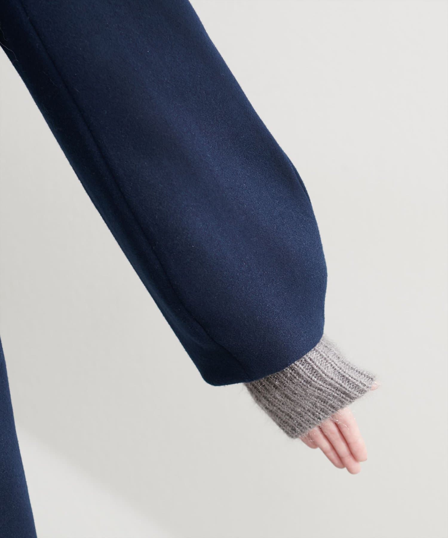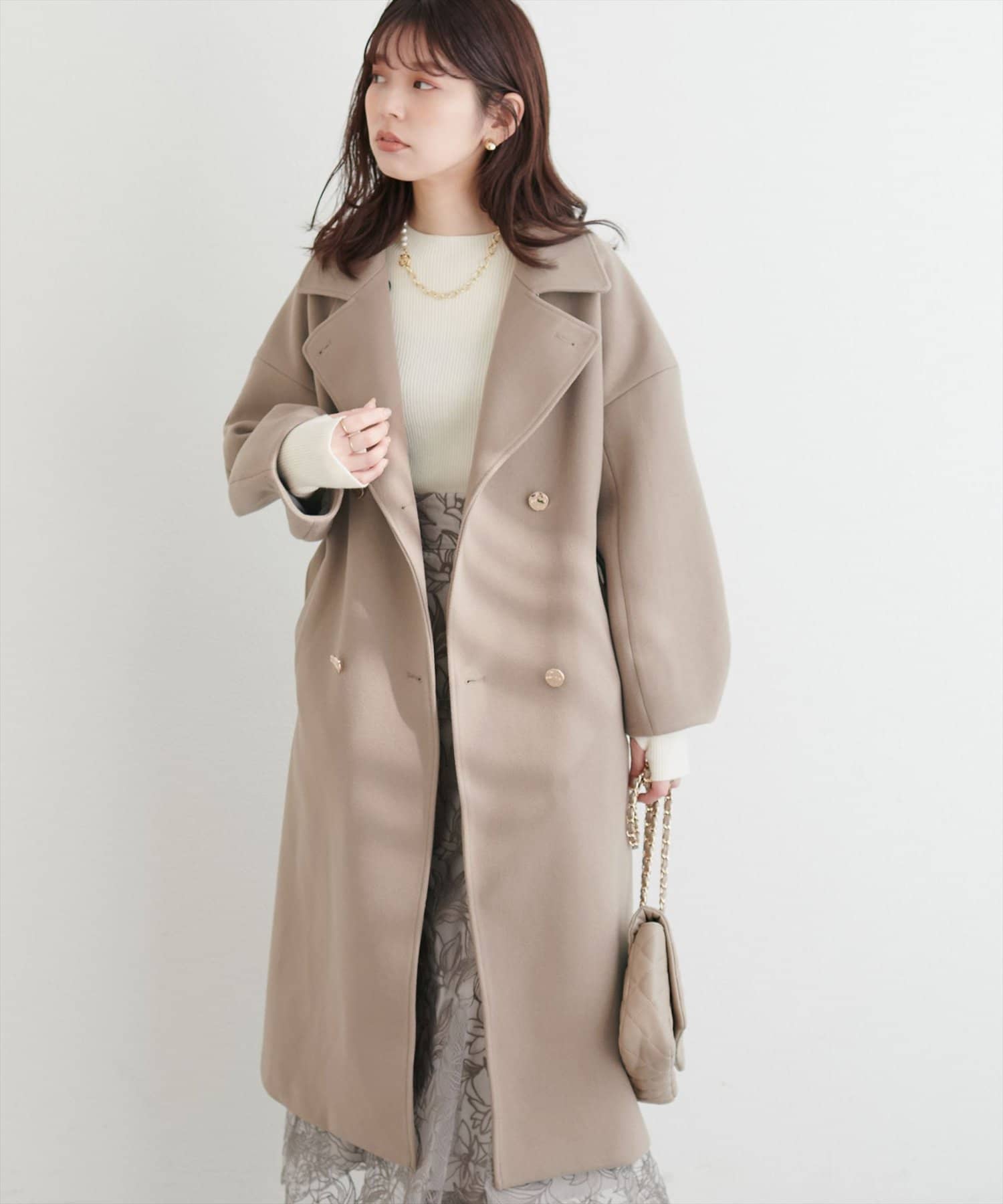 袖口はややコクーンシルエットなので、重厚感のあるアウターでもフェミニンな印象に。