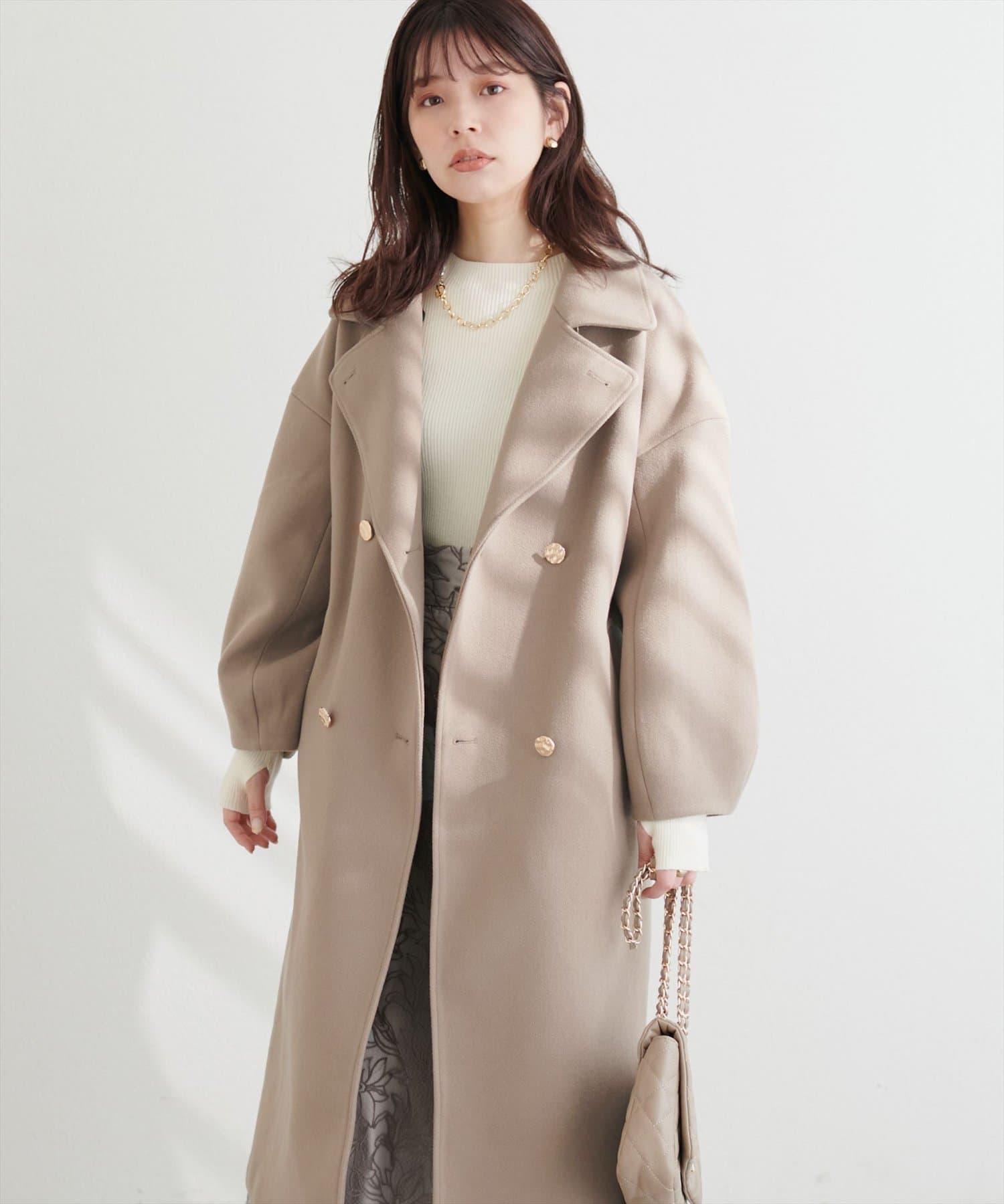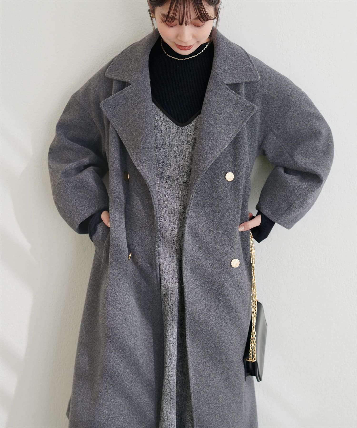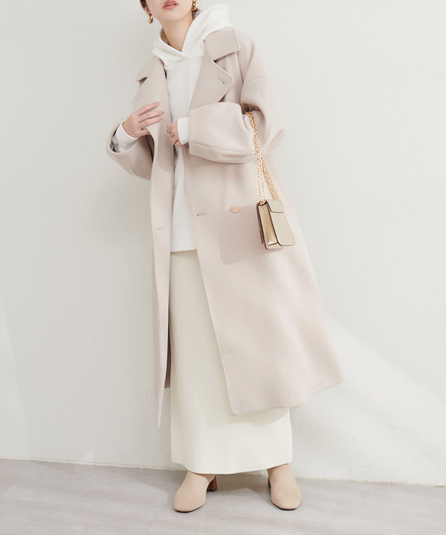 袖口はややコクーンシルエットなので、重厚感のあるアウターでもフェミニンな印象に。