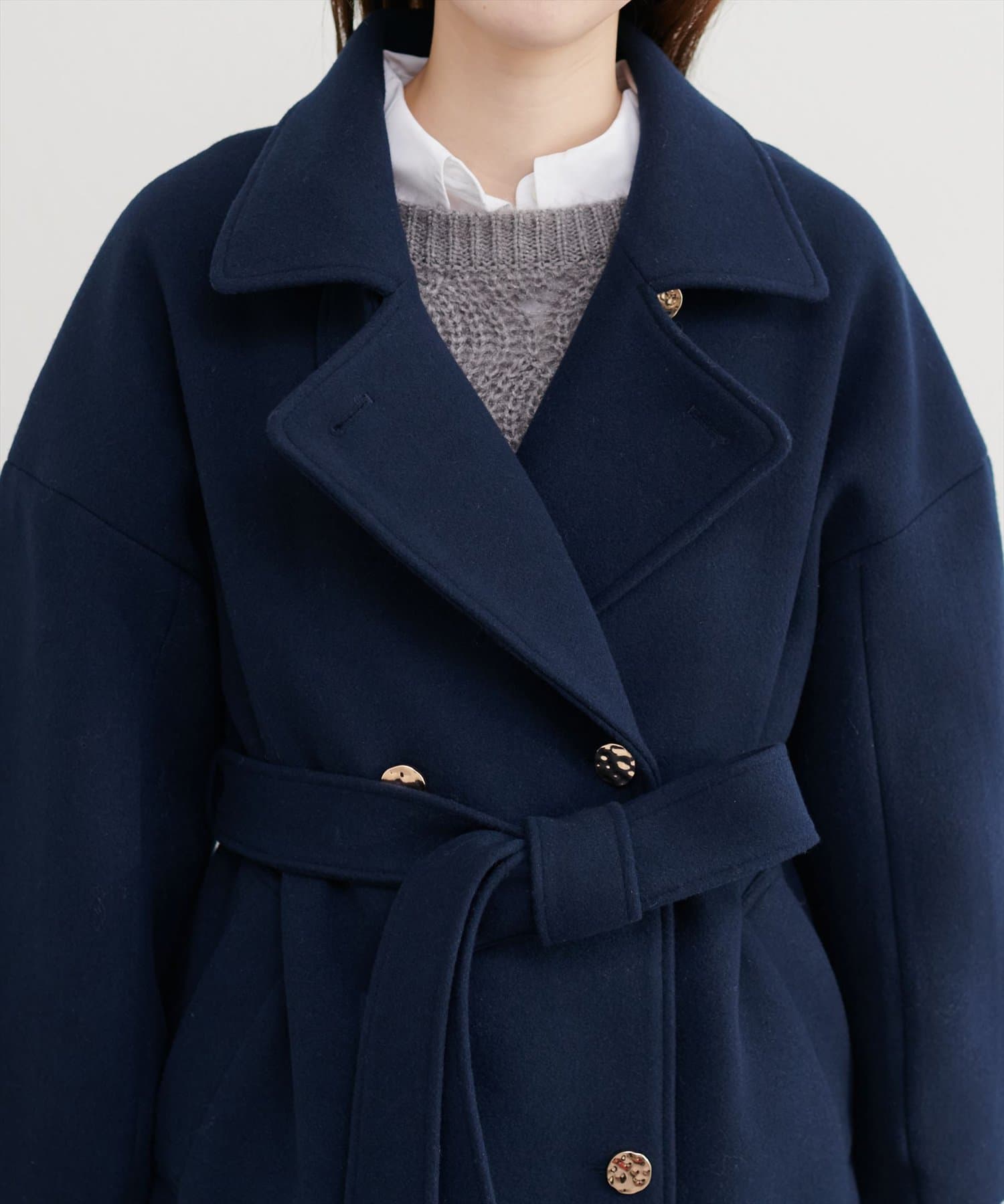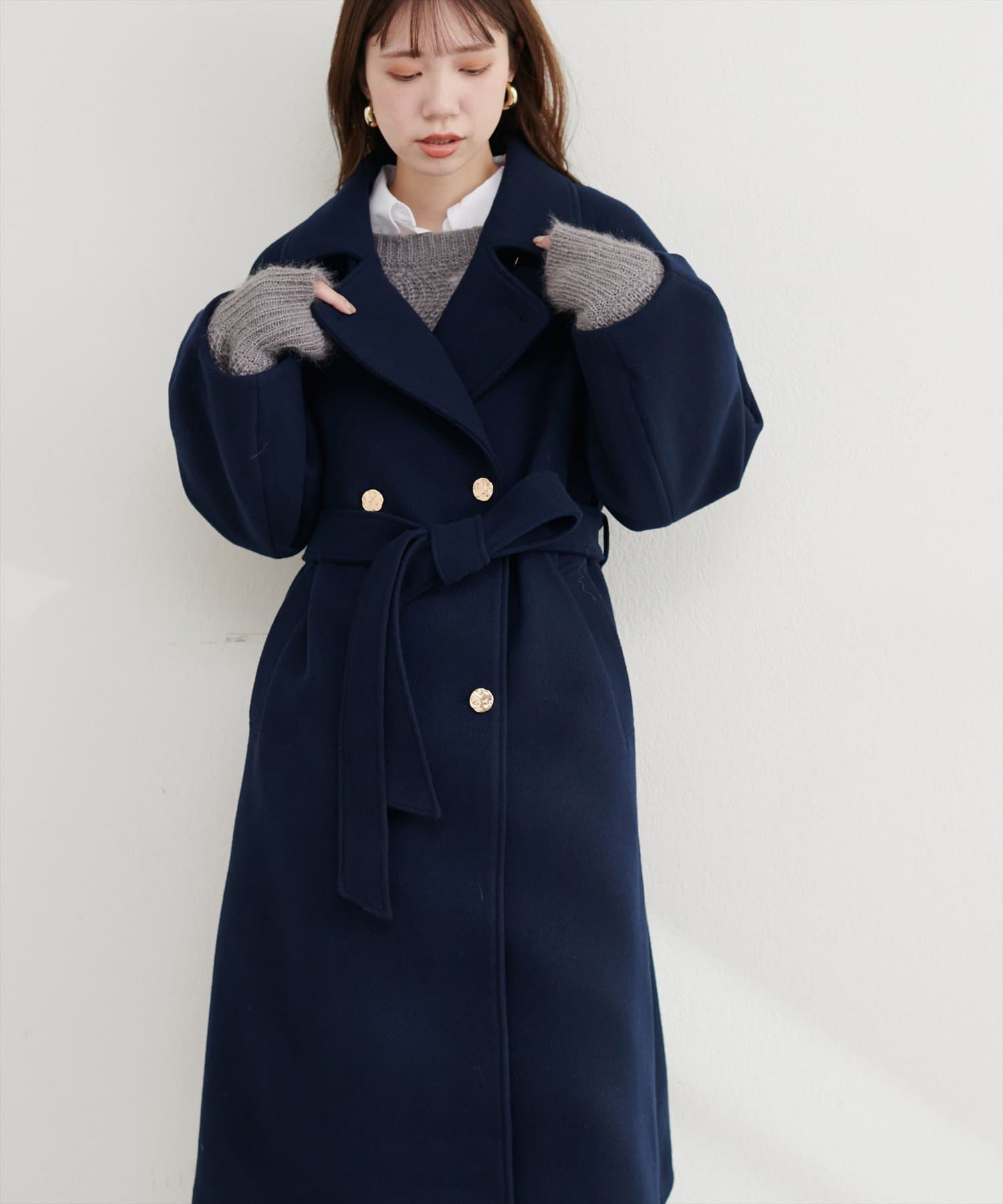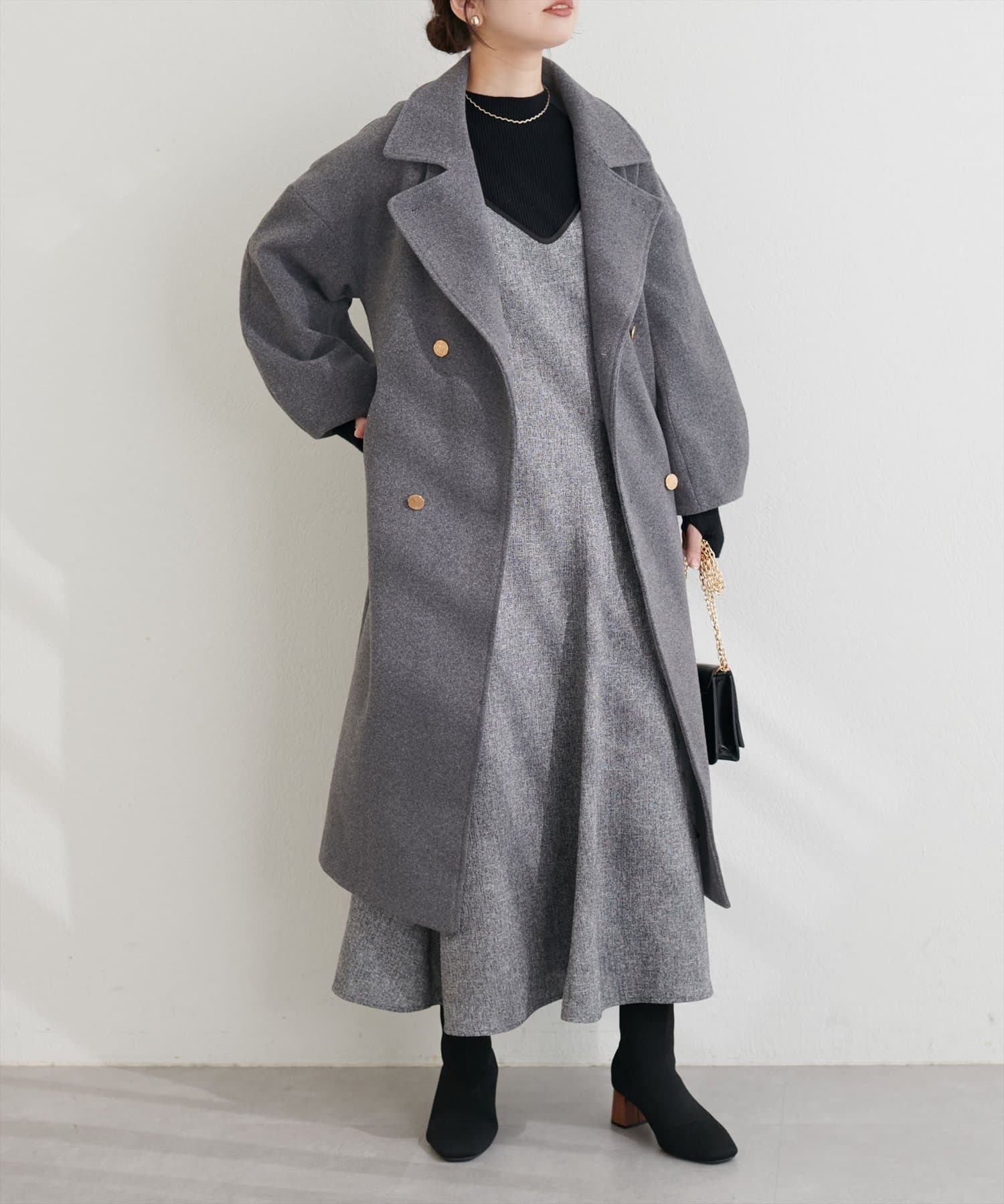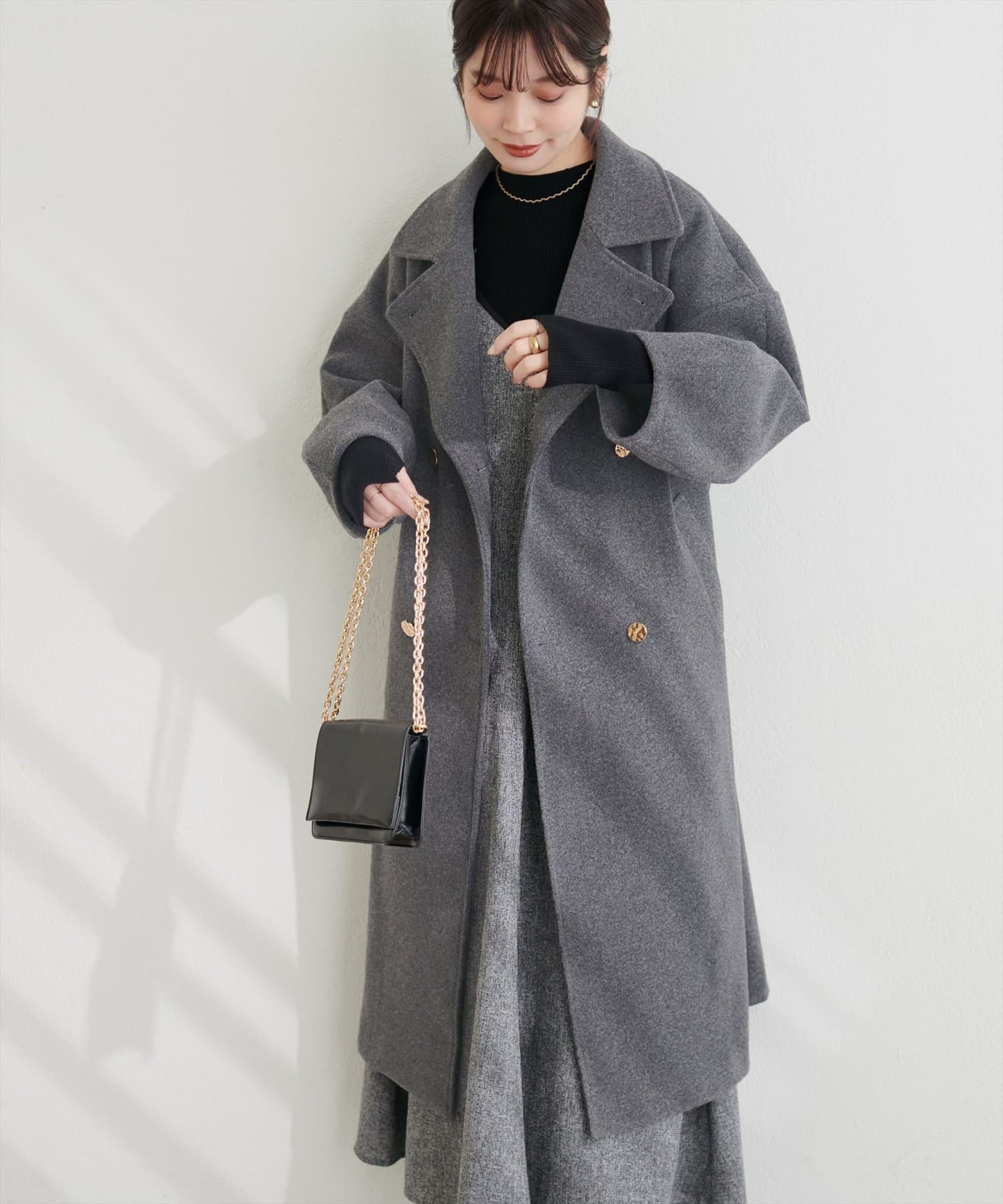 袖口はややコクーンシルエットなので、重厚感のあるアウターでもフェミニンな印象に。