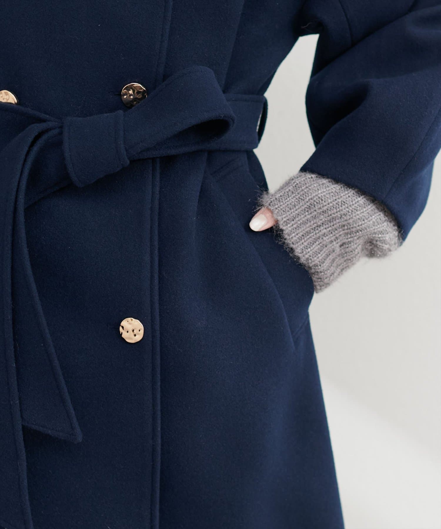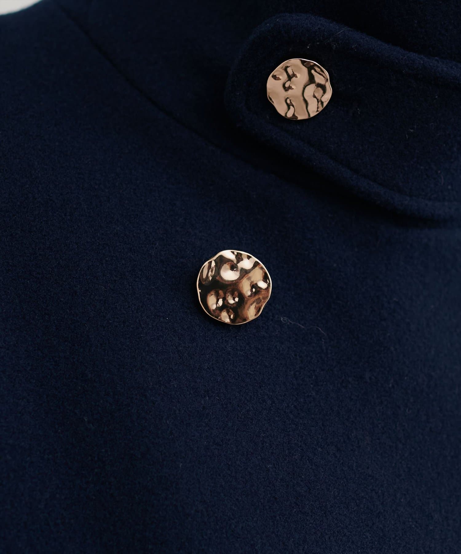 ゴールドの釦がアクセントになっており、ニュアンスのある上品な艶感がポイントに。