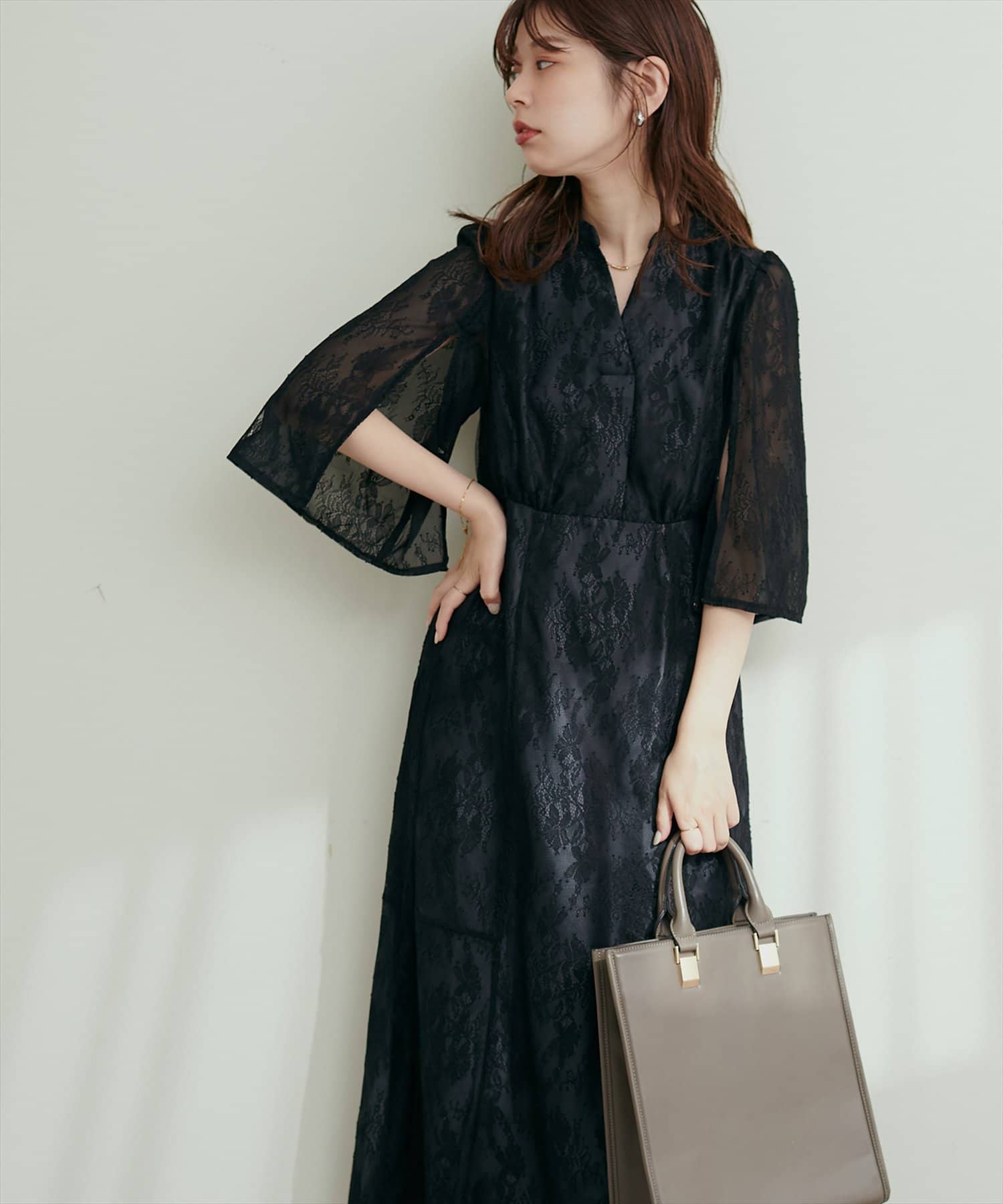 オケージョンにも、観劇などのキレイめを着たい日にも対応できる上品な印象のワンピース。
