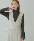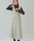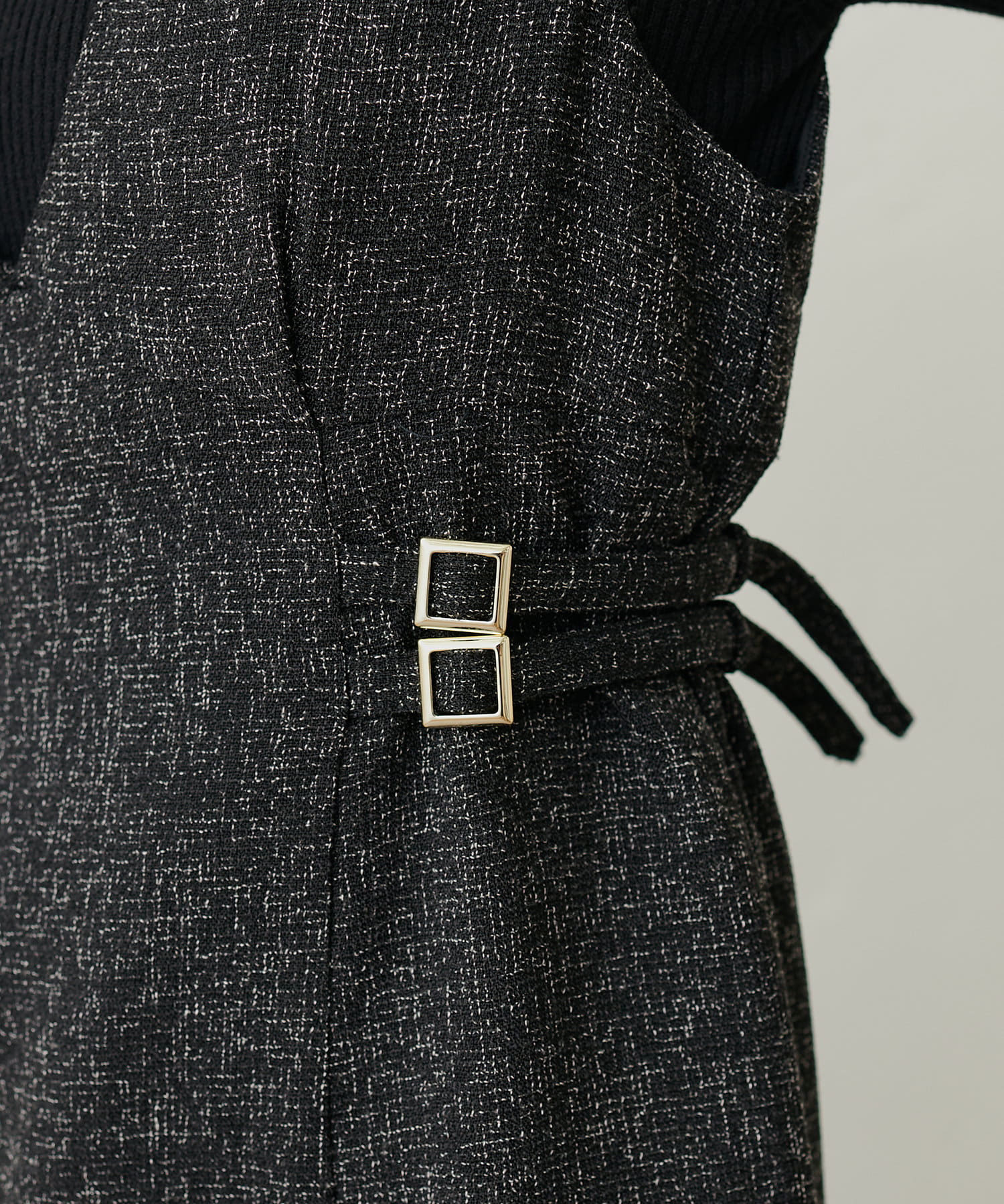 ウエストの切り替え位置が高くスタイルアップ効果がある他、サイドベルトで胴回りのシルエットもお好みに調整していただけます。