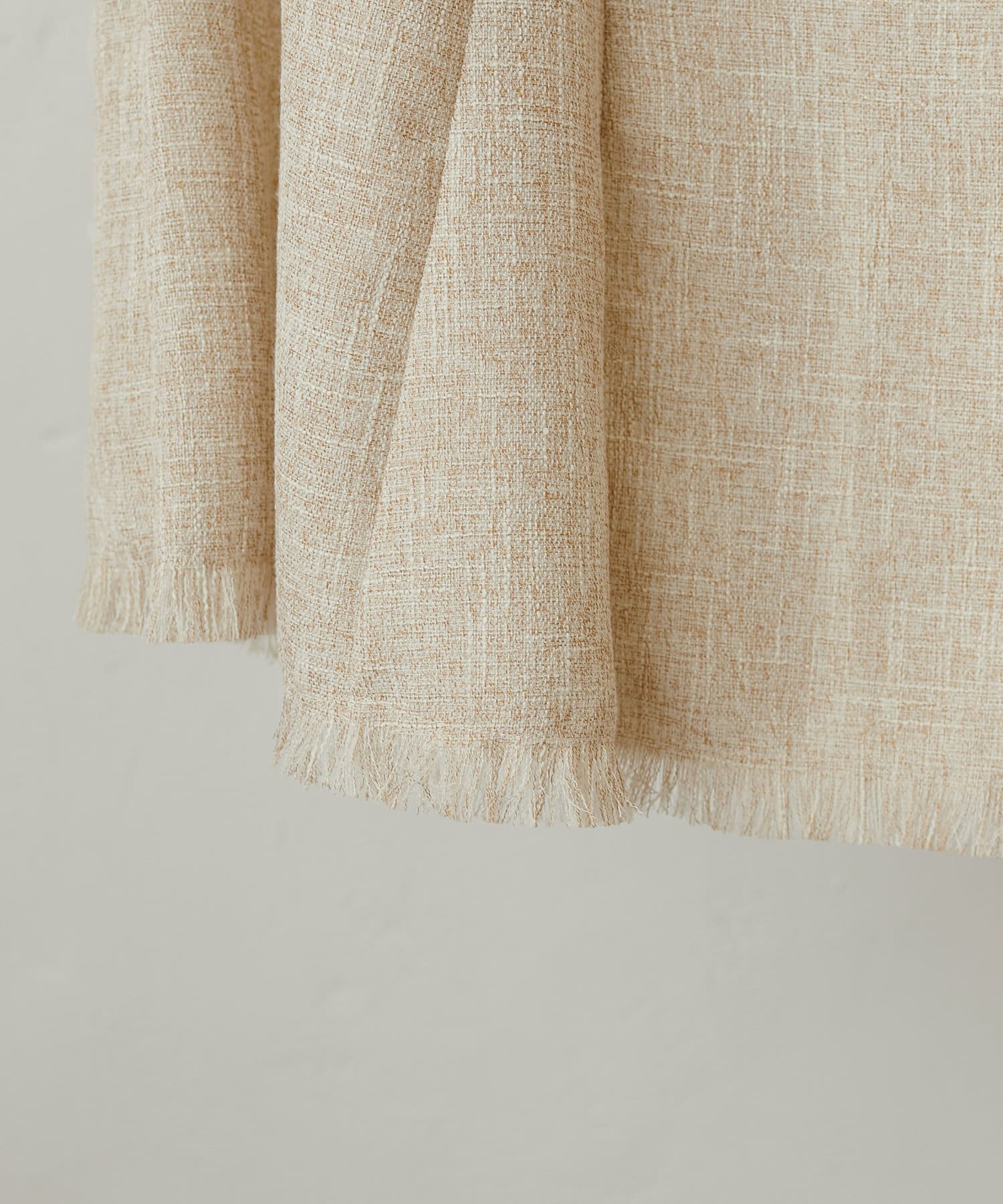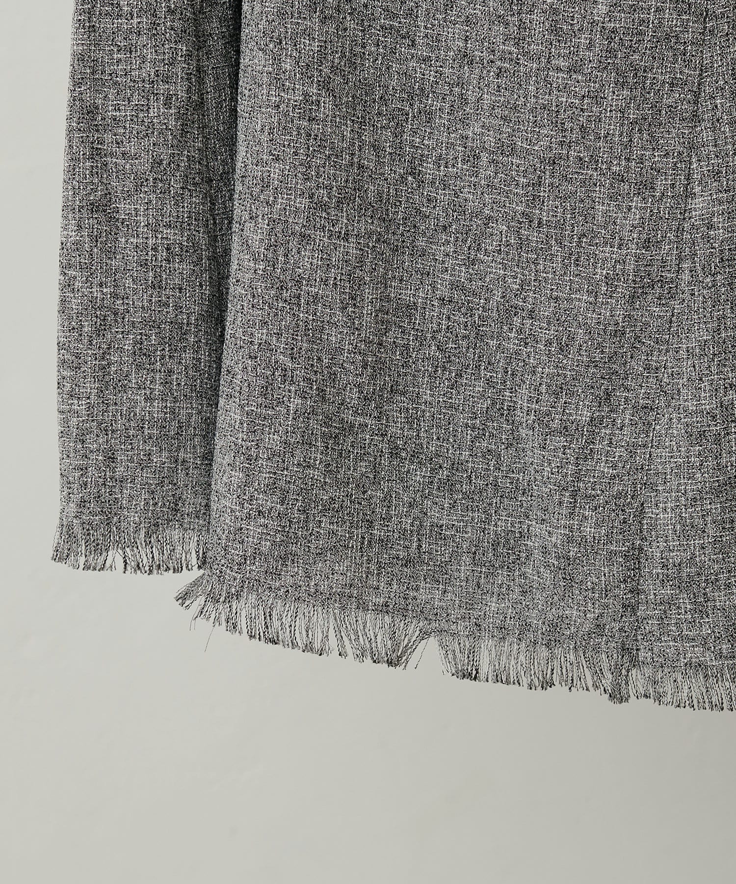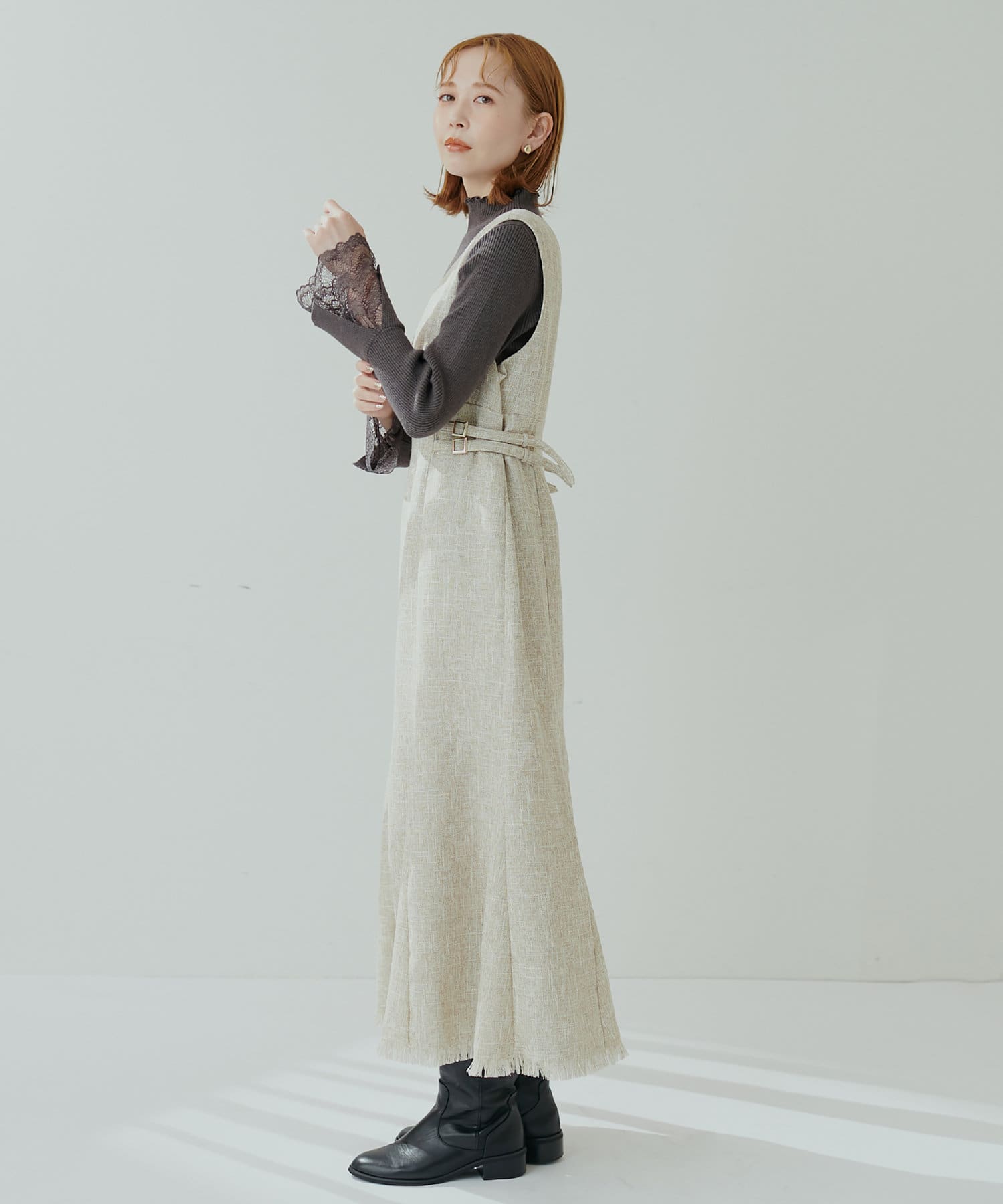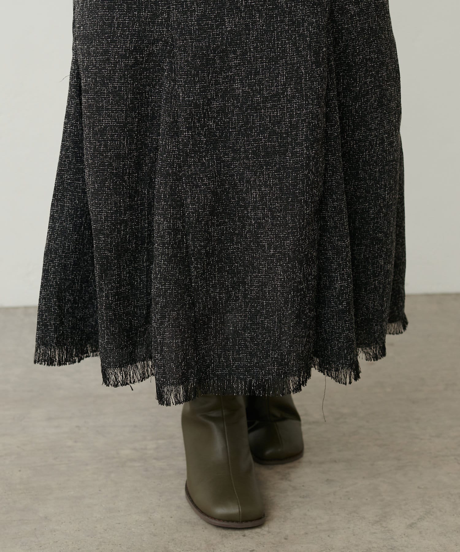 スカート部分は途中から動きの出るフレアになっていて、フリンジの付いた裾が動くたびに綺麗なドレープが生まれます。