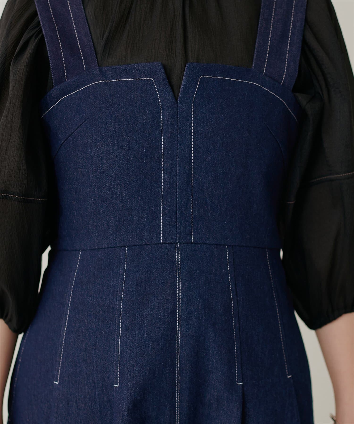 キーネックデザインが新しいフェミニンなジャンパースカート。