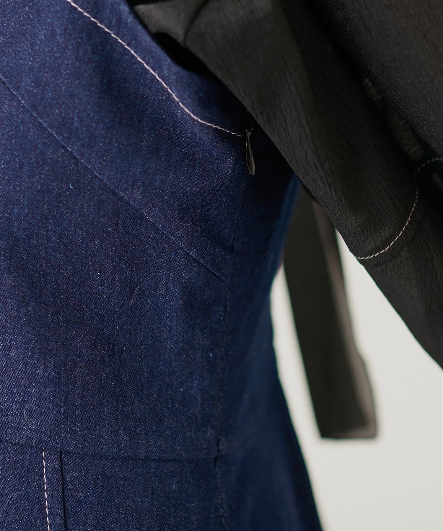 背中はギャザーゴムを使用しており、サイドにファスナーが付いているので脱ぎ着や着心地もらくらく。