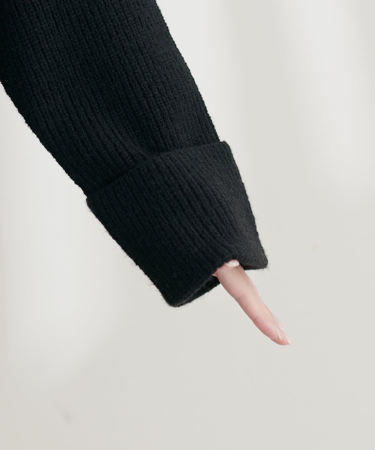 折り返して着る袖口は、オーバーライクな印象を与え包まれているような可愛らしさを醸し出します。