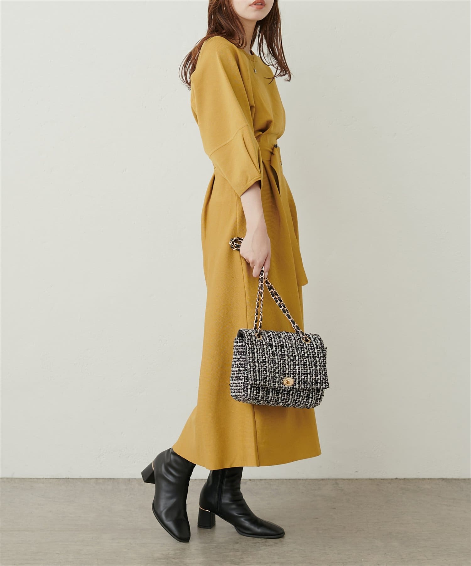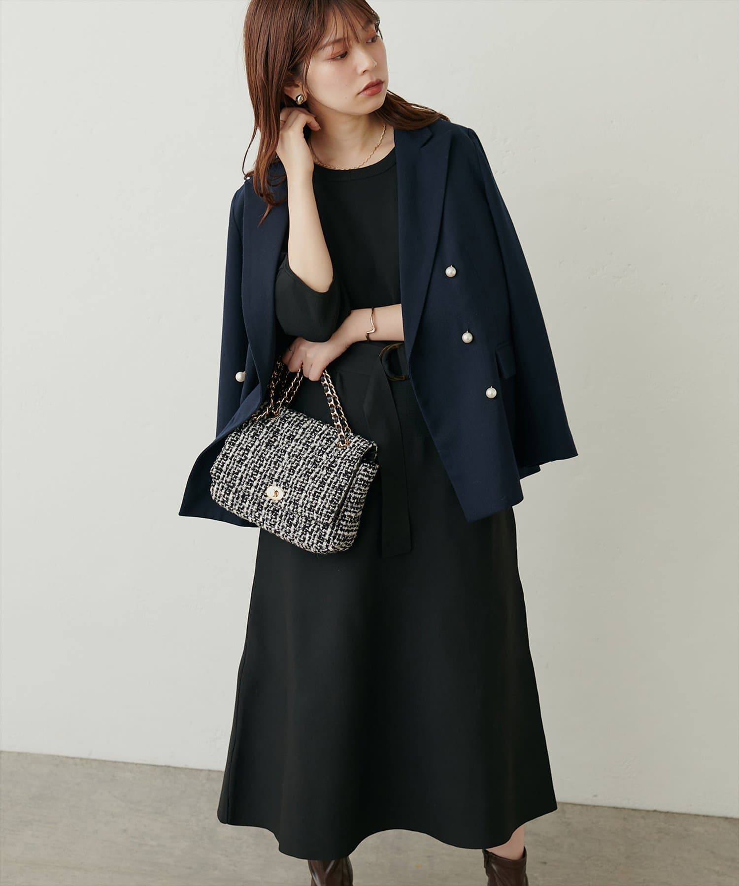 冬はウールのアウターにロングブーツ合わせがおすすめです。