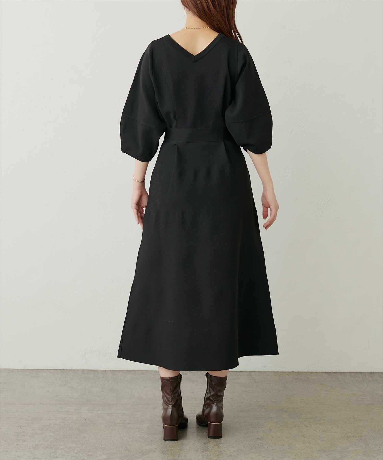 ランタンスリーブポリニットワンピース