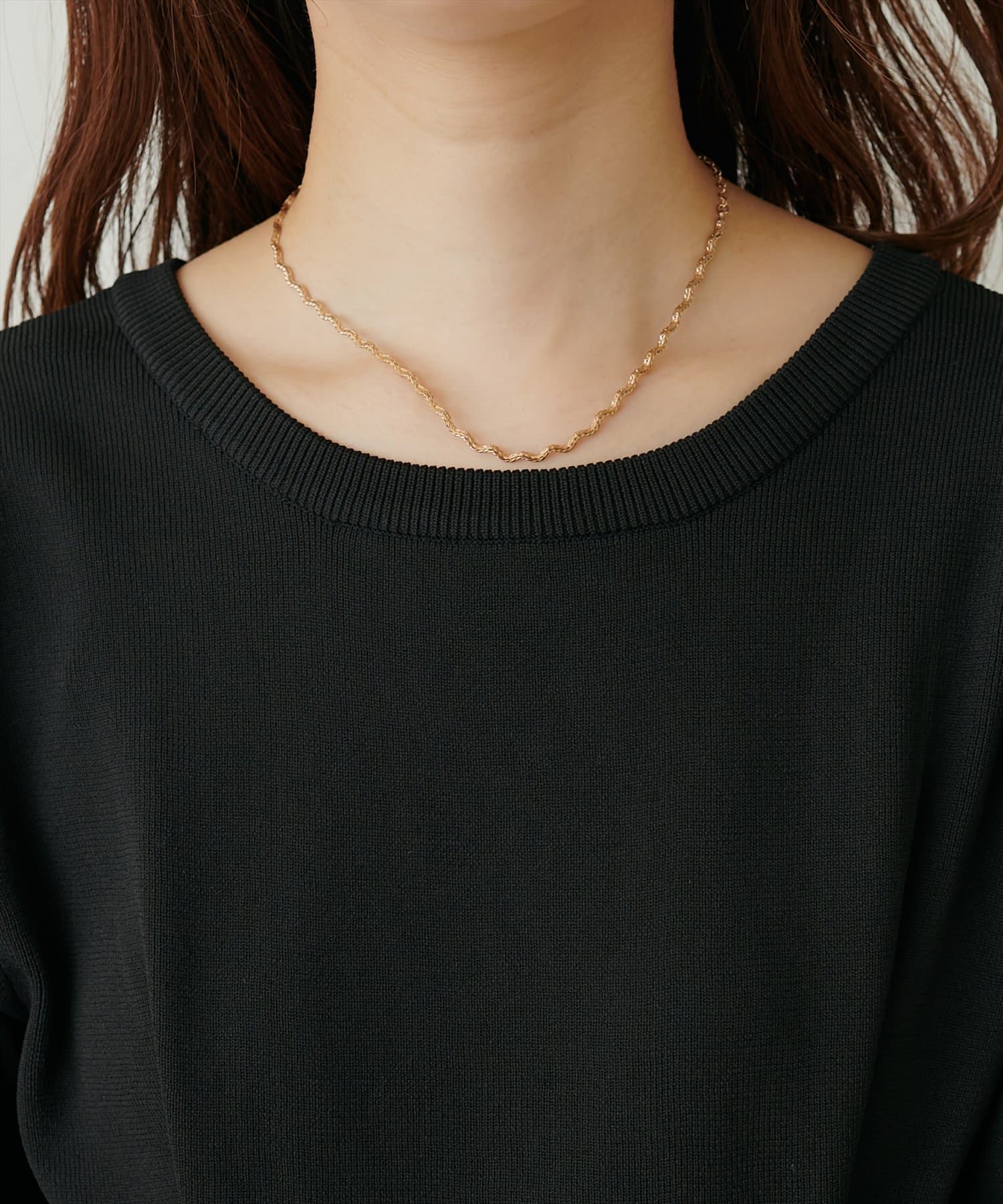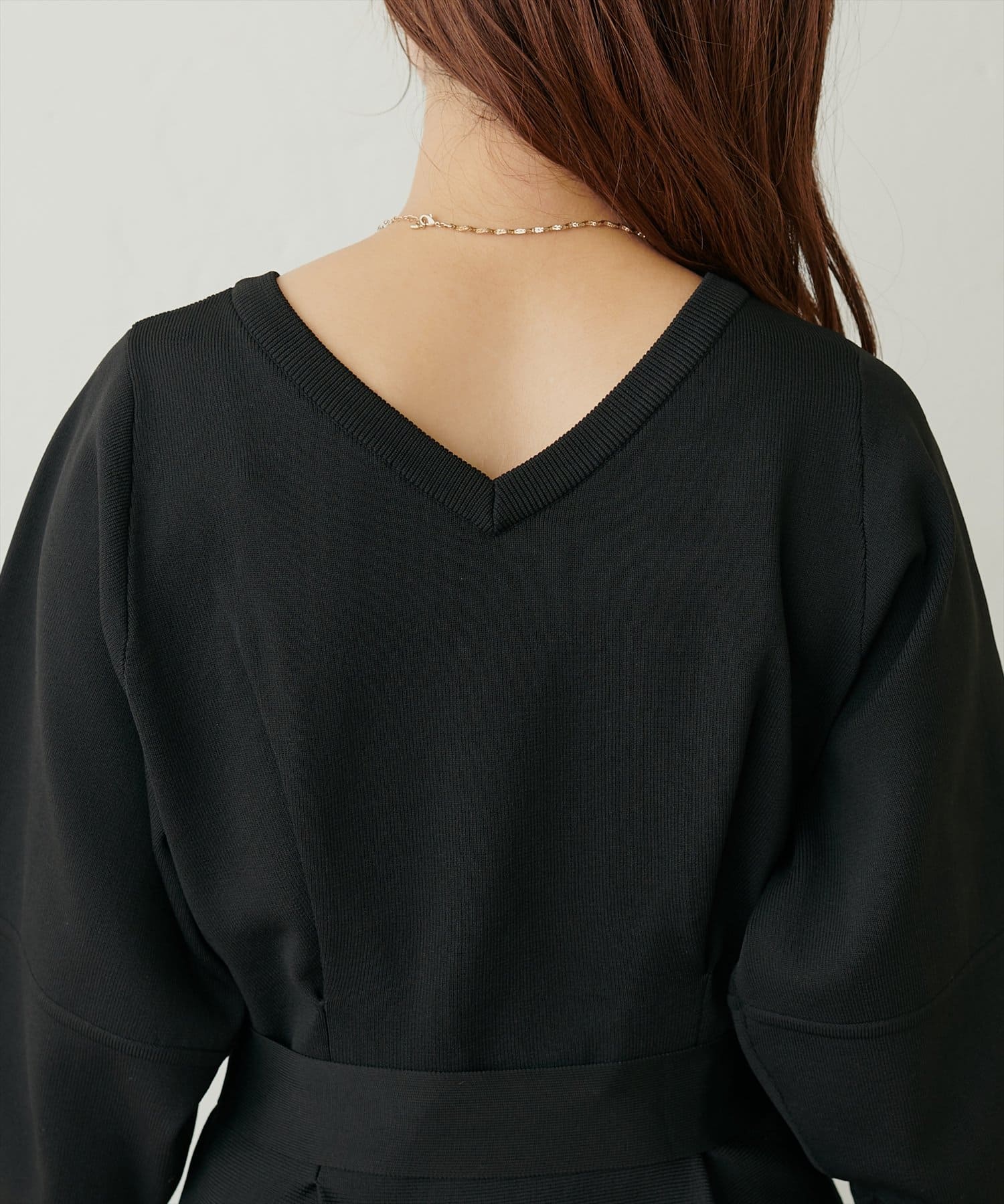 前後2WAY仕様でVネックとUネックの2つの顔がお楽しみ頂け、デコルテ周りがきれいに見えてぐっと女性らしい印象に。
