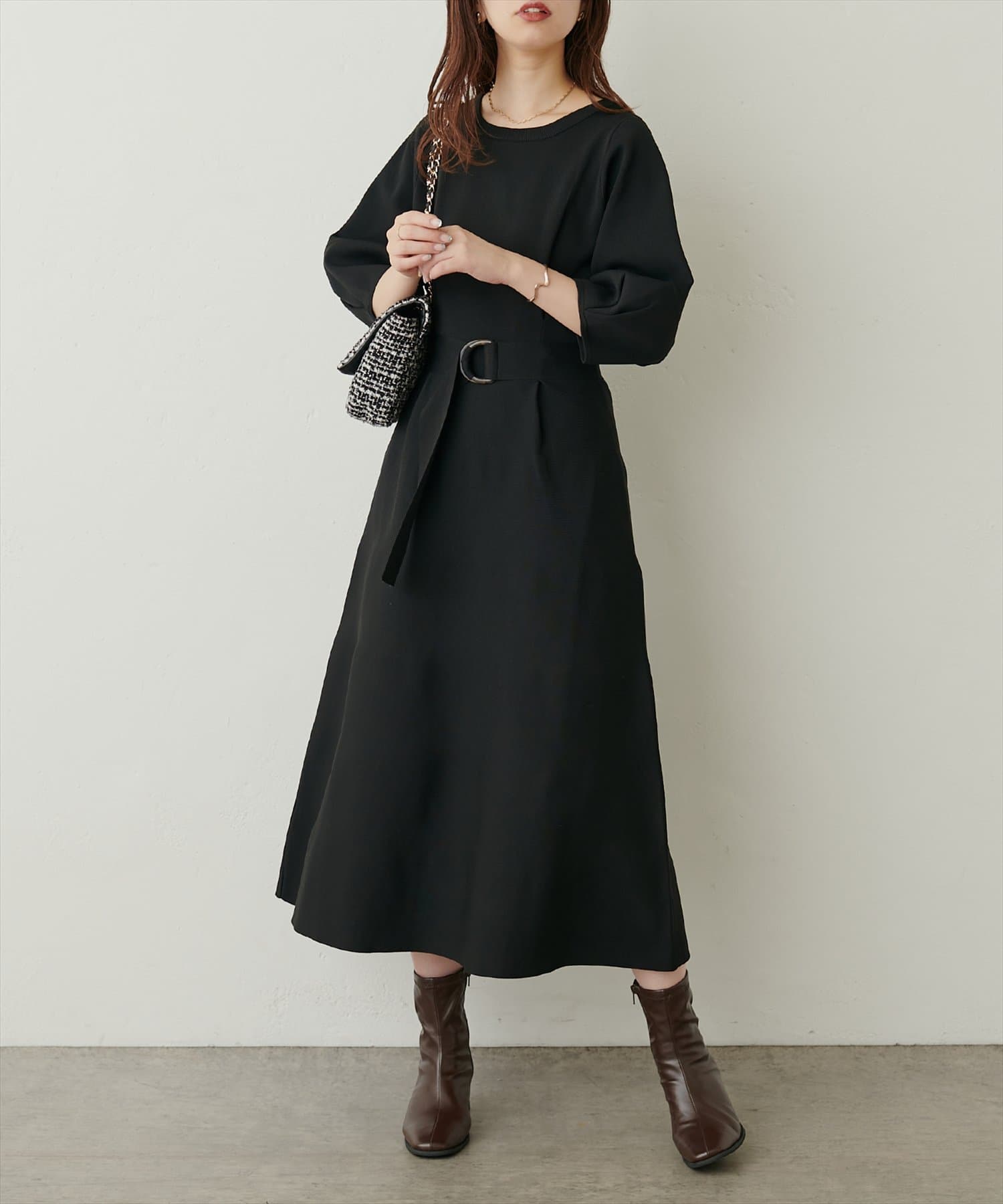 スタイルアップが叶う大人のニットワンピース