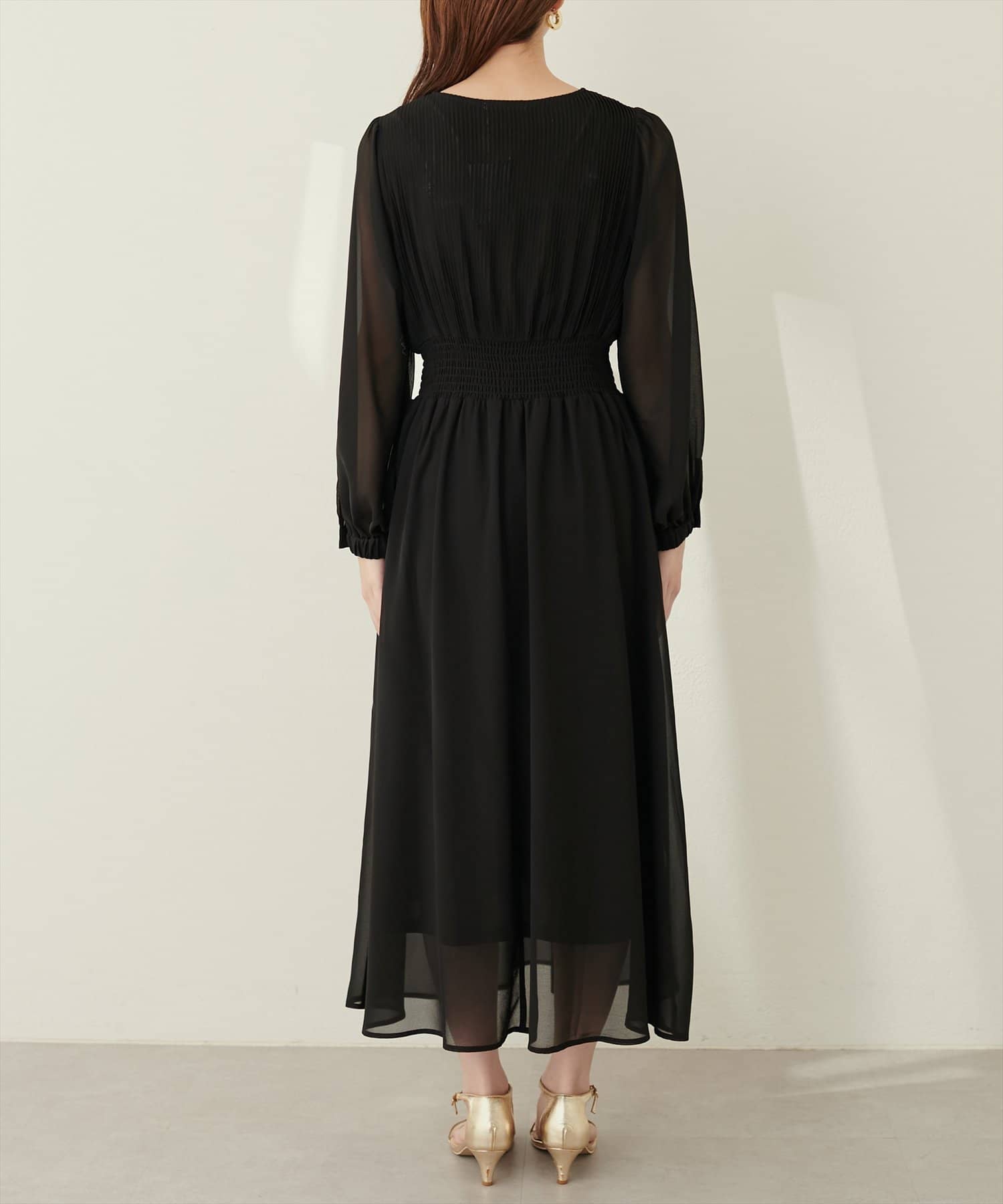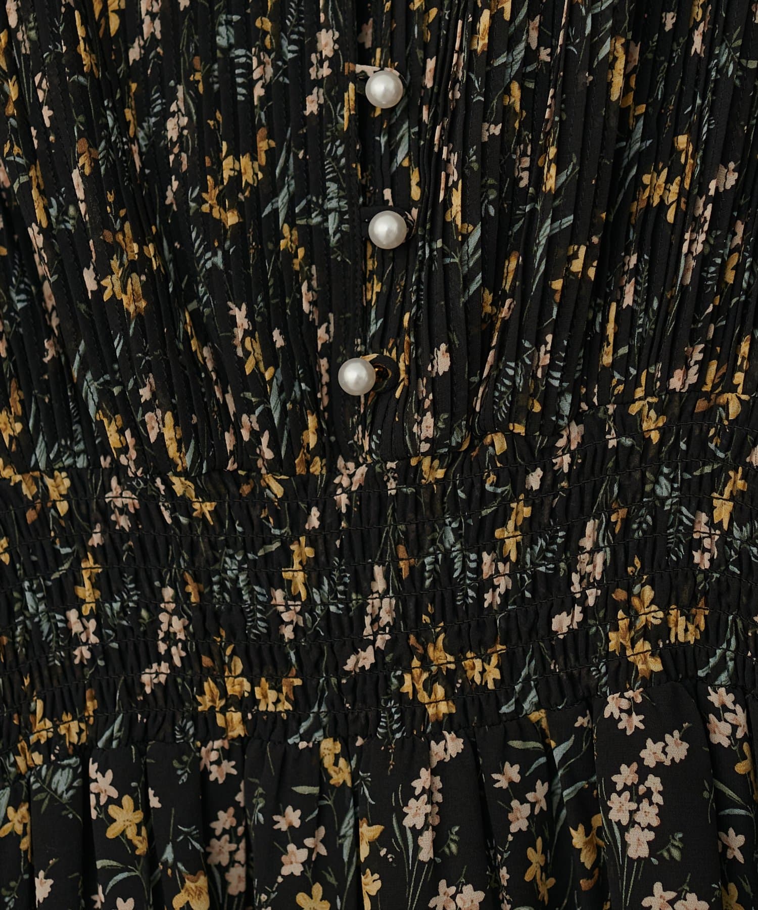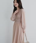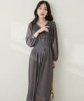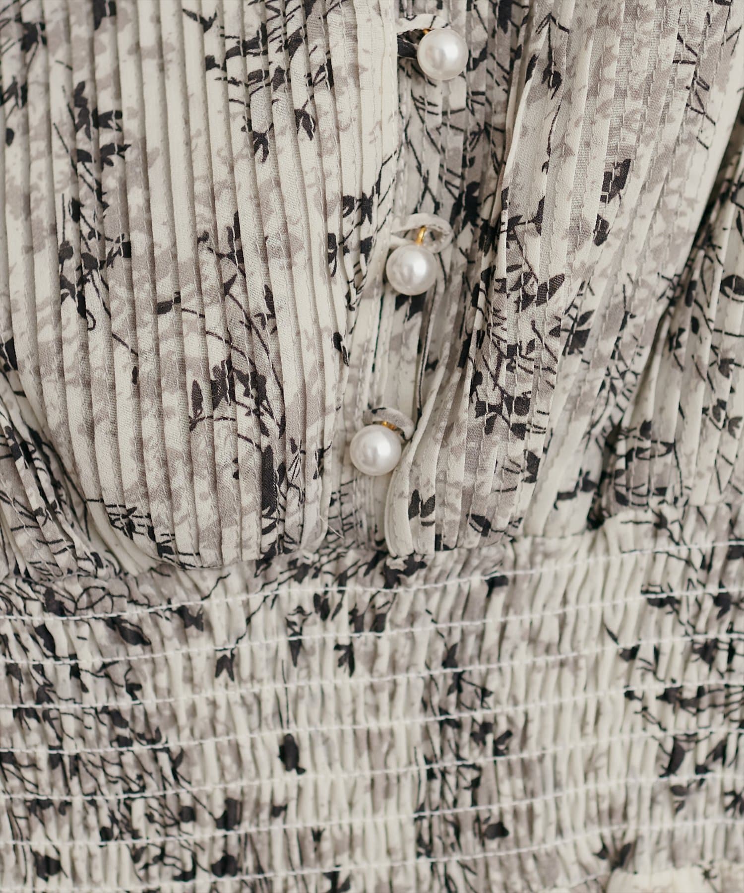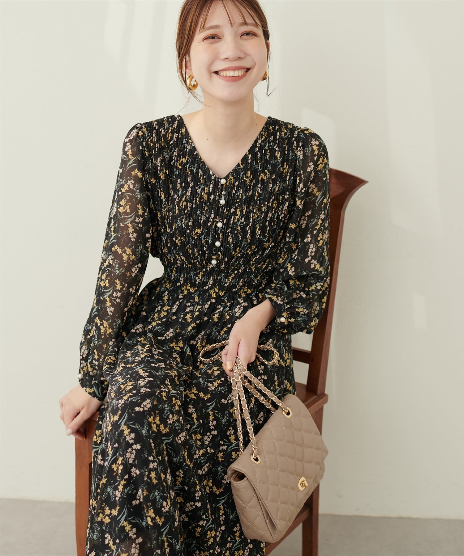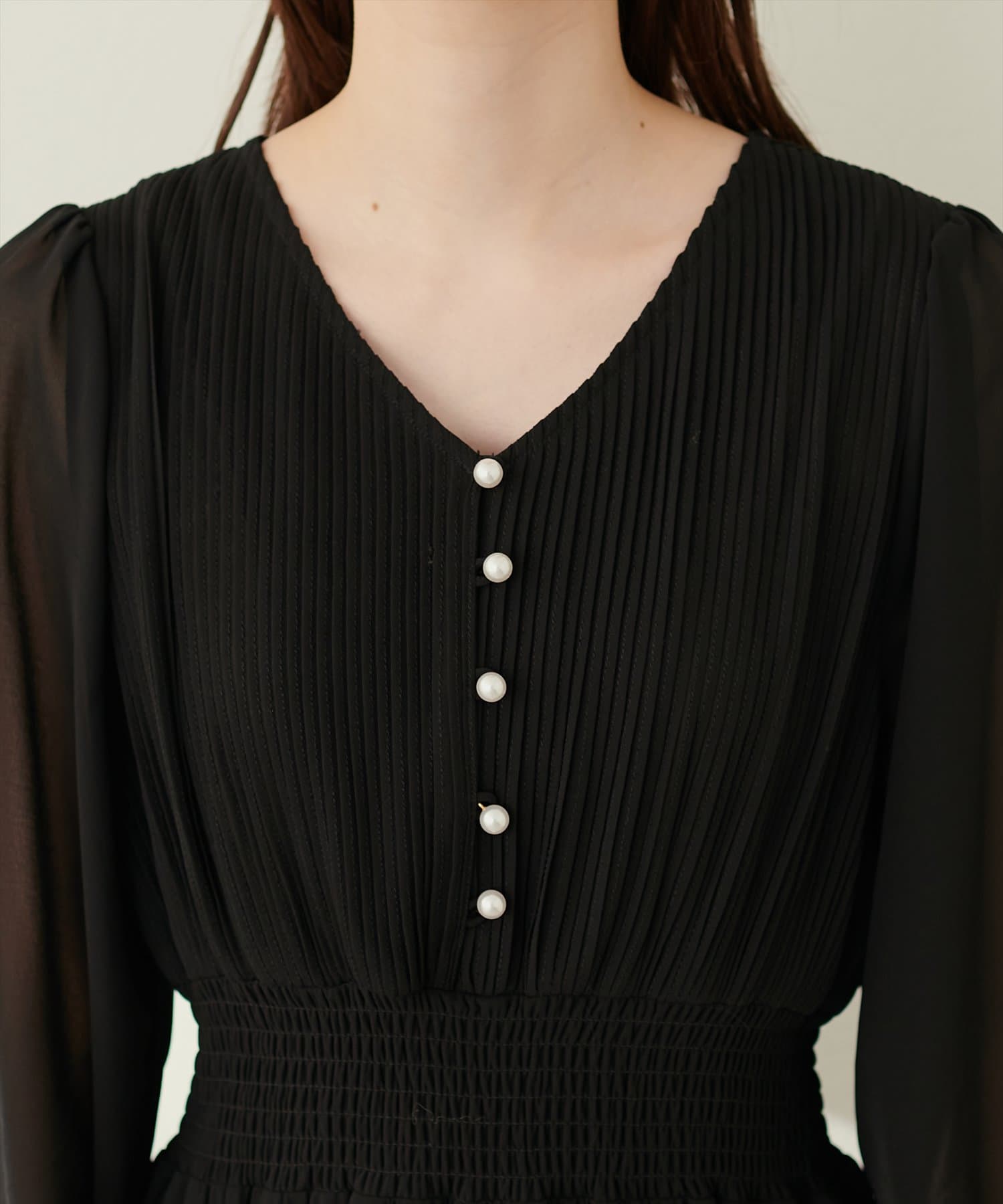 パール釦をあしらった女性らしいデザインのワンピースです。