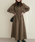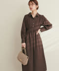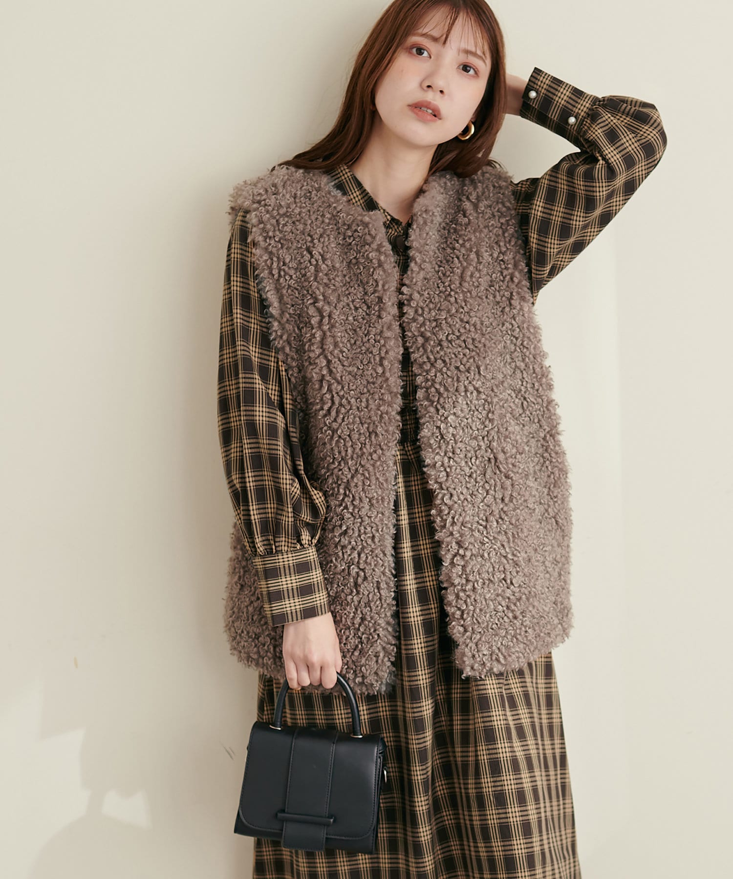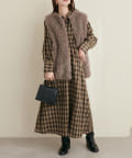 秋口には人気のフェイクファーベストを合わせると一気にトレンド感とこなれ感がアップします。パール釦が上品な、トレンドに左右されない万能ワンピース