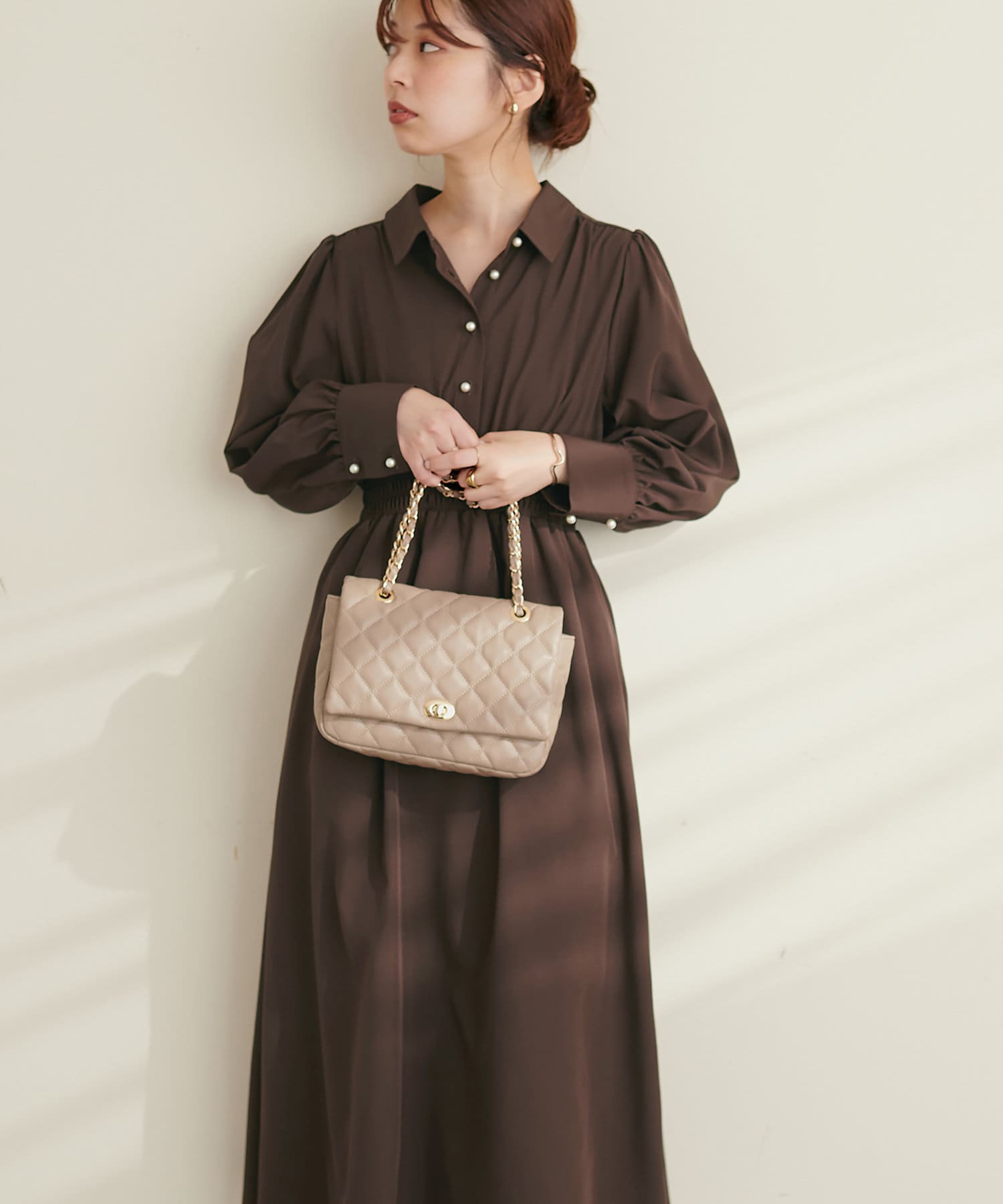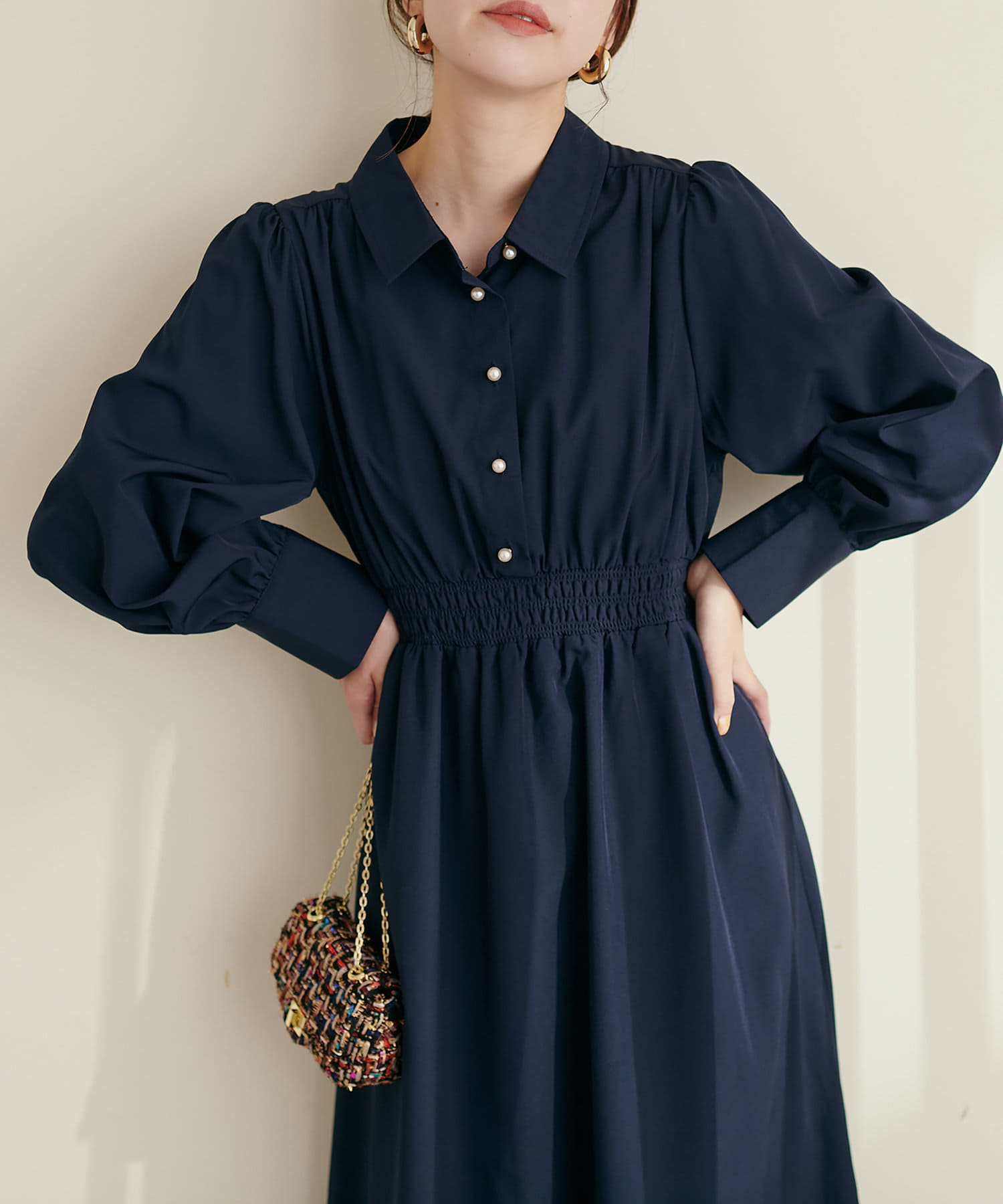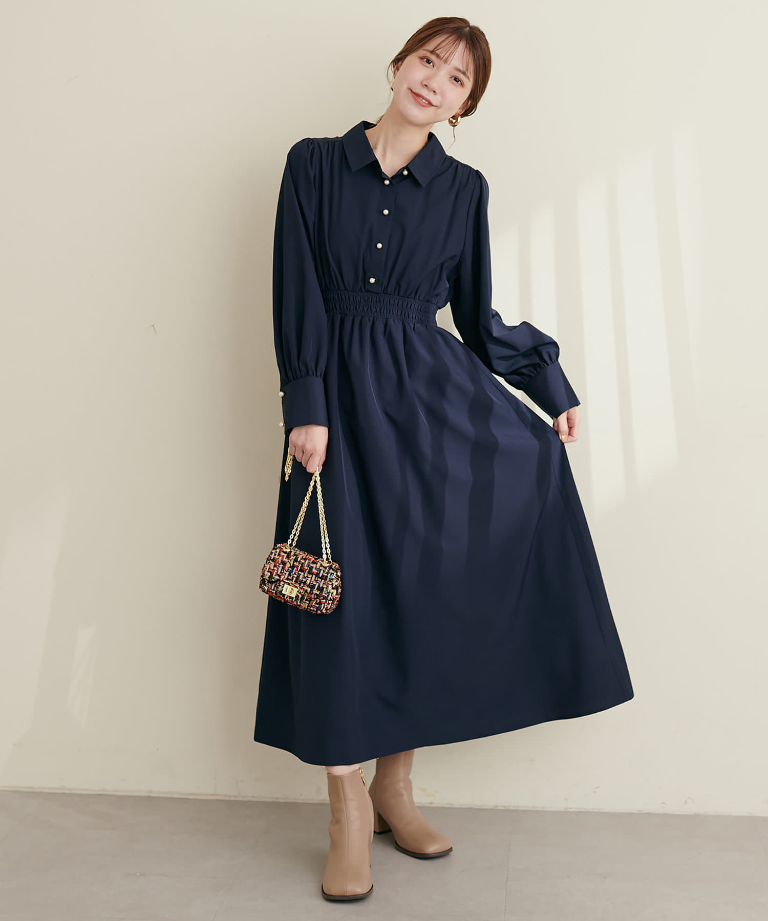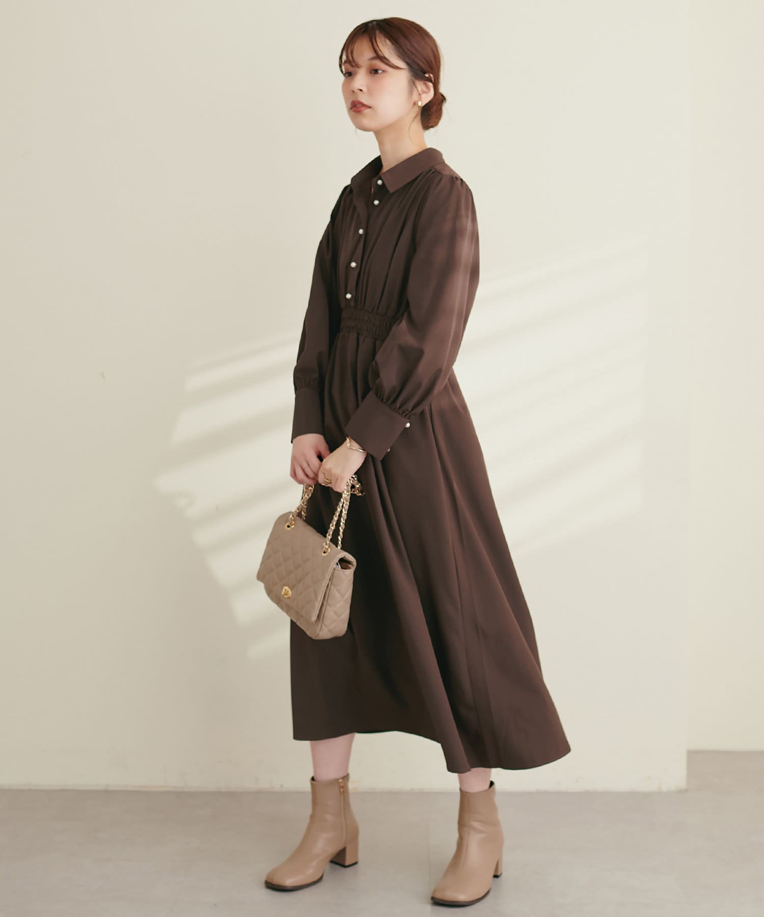 パール釦が上品な、トレンドに左右されない万能ワンピース