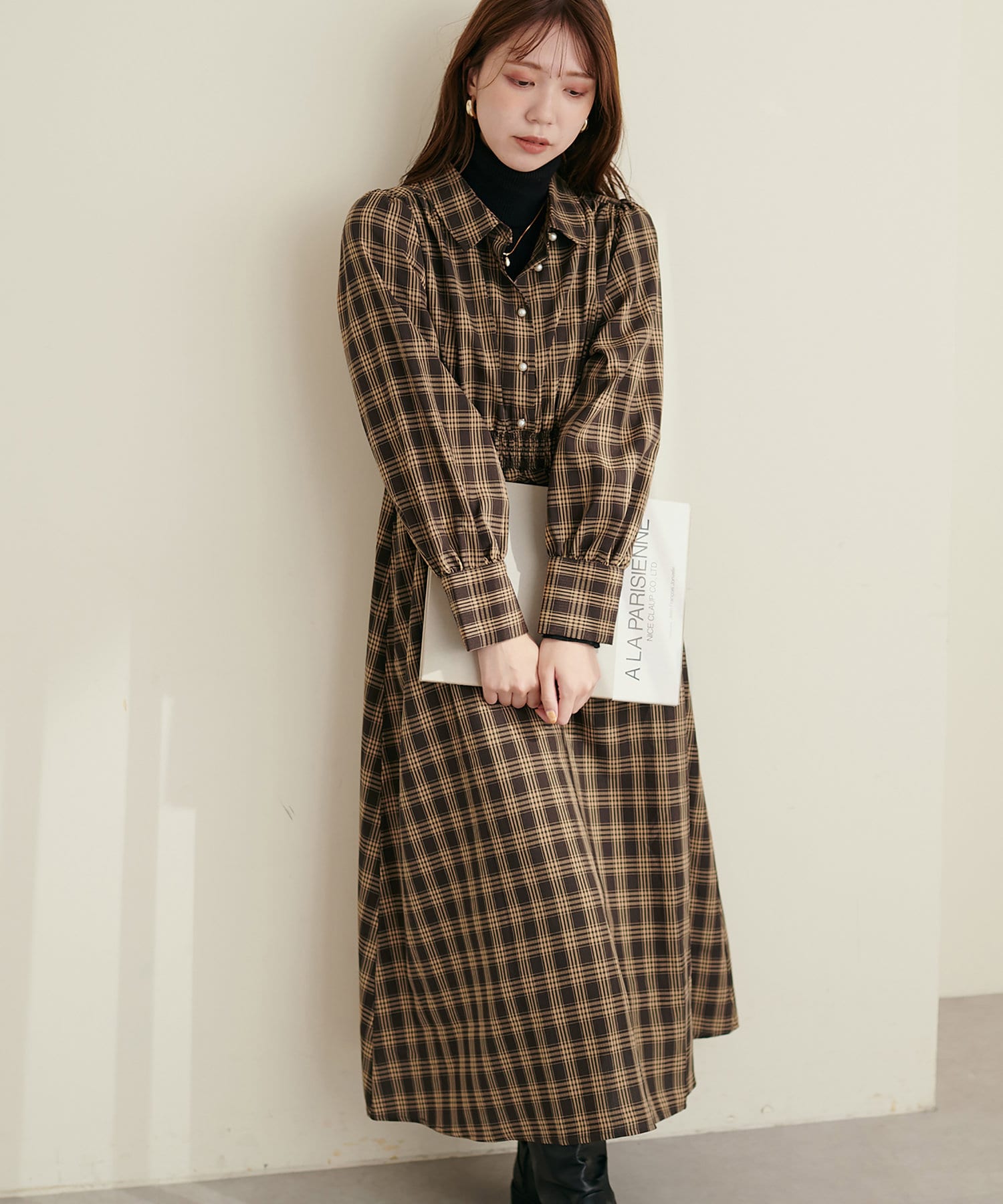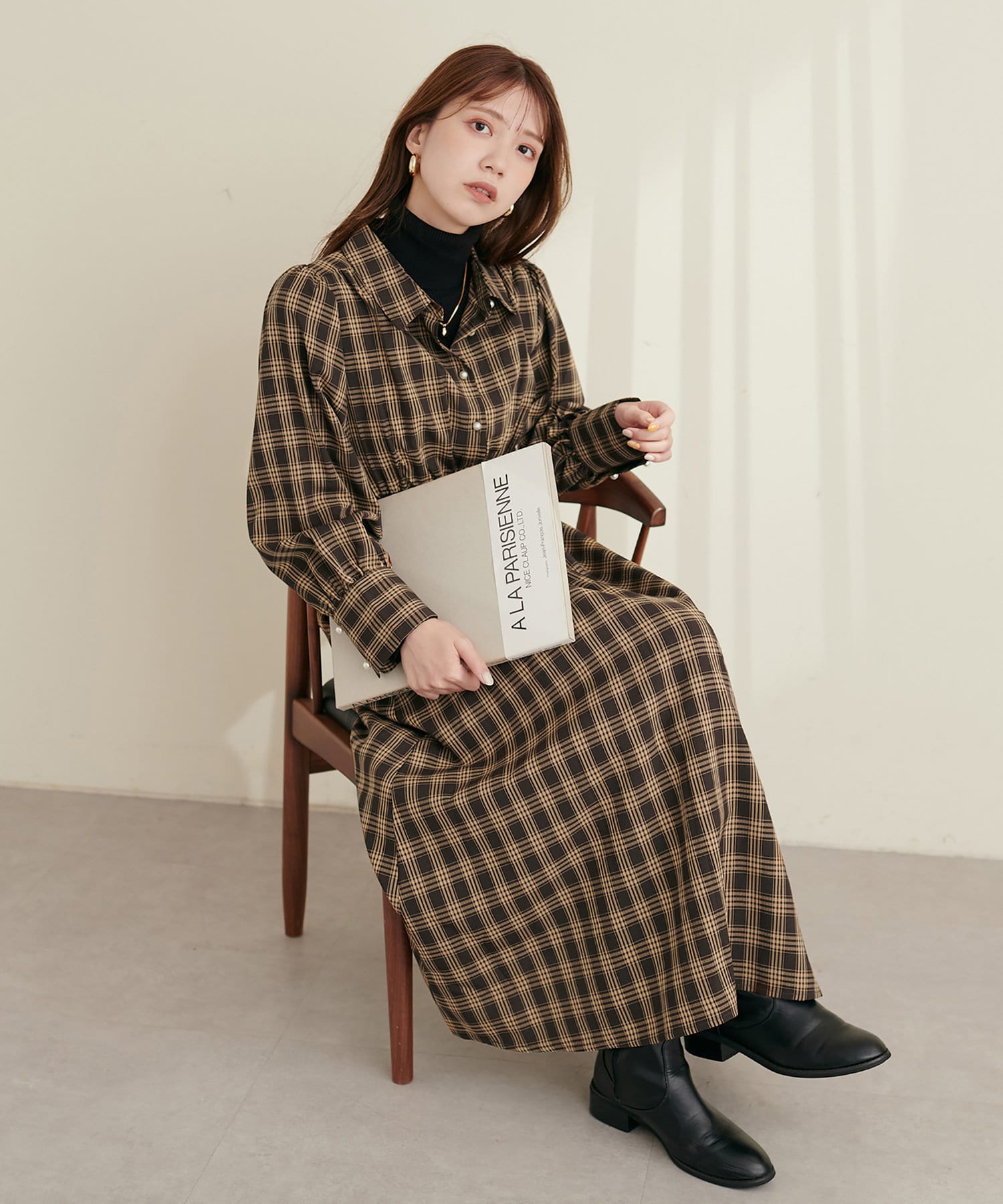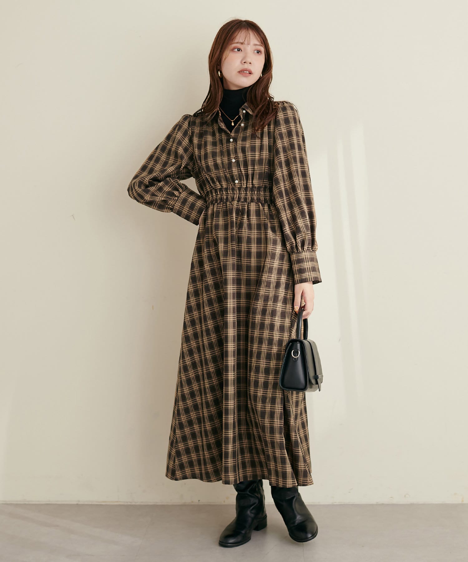 1枚で主役級のワンピースですが、寒くなってきたらインナーにシアータートルを仕込んだり、ふんわりしたカーディガンを羽織ったりするのもおすすめです。