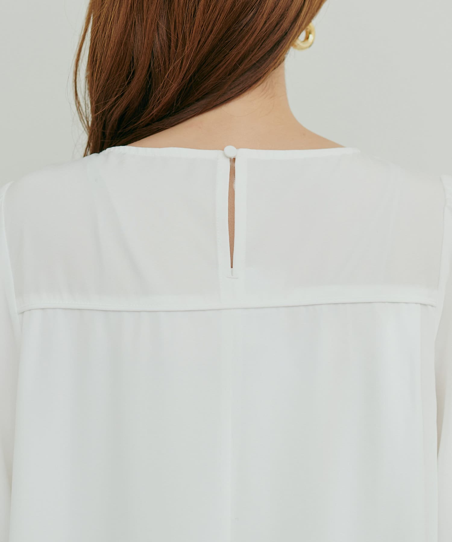 胸元の高い位置に切り替えギャザーが施されているので、視線が高くなりスタイルアップ効果が期待できます。