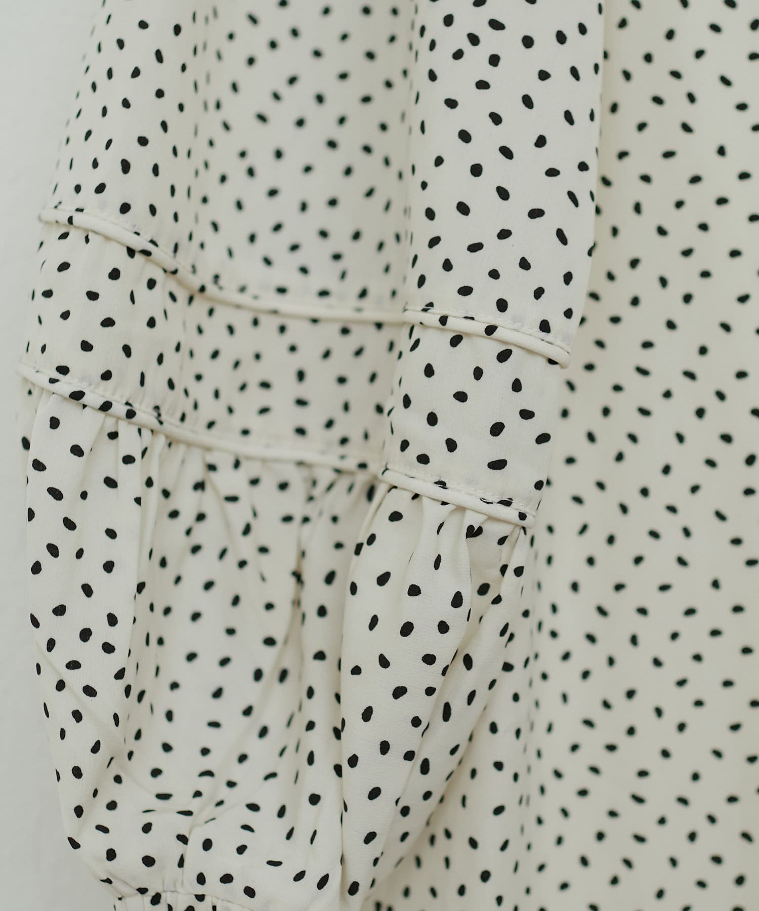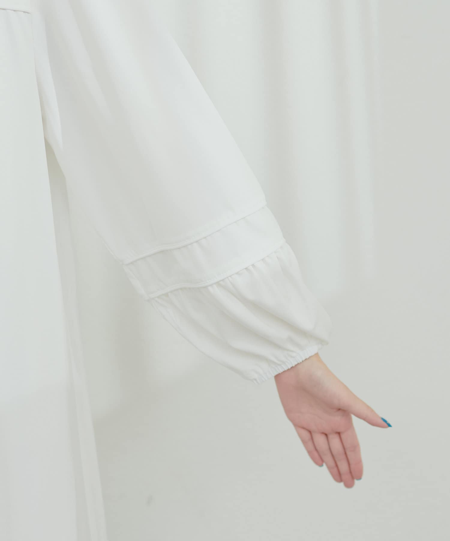 腕を華奢に見せてくれるランタンスリーブが目を惹く1枚。