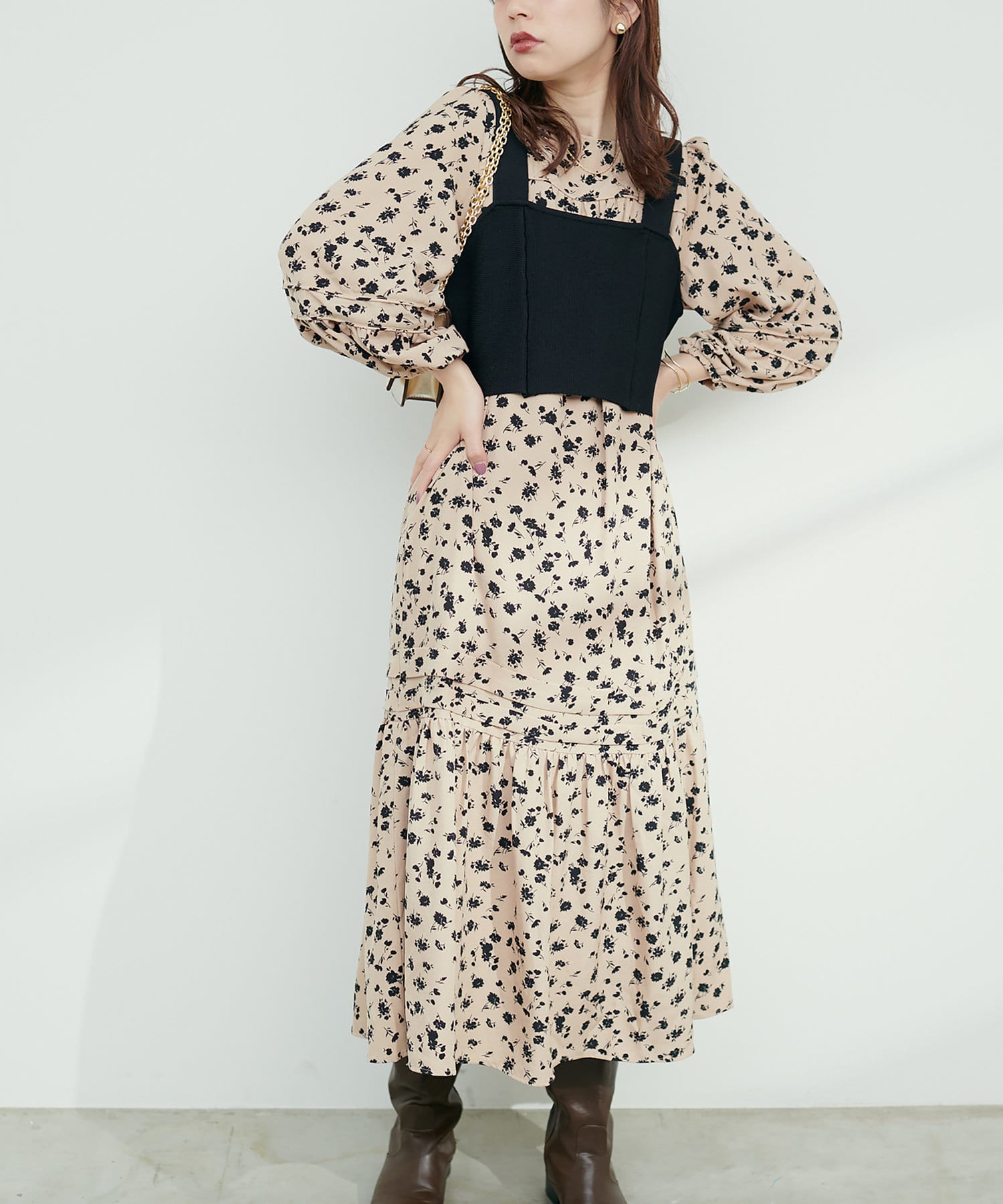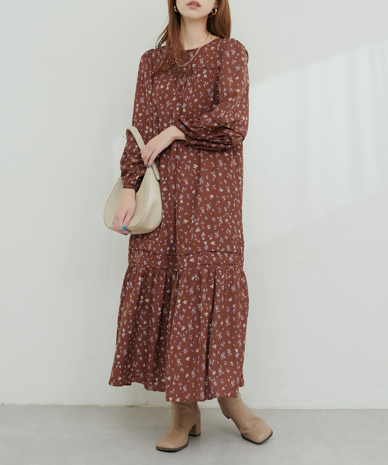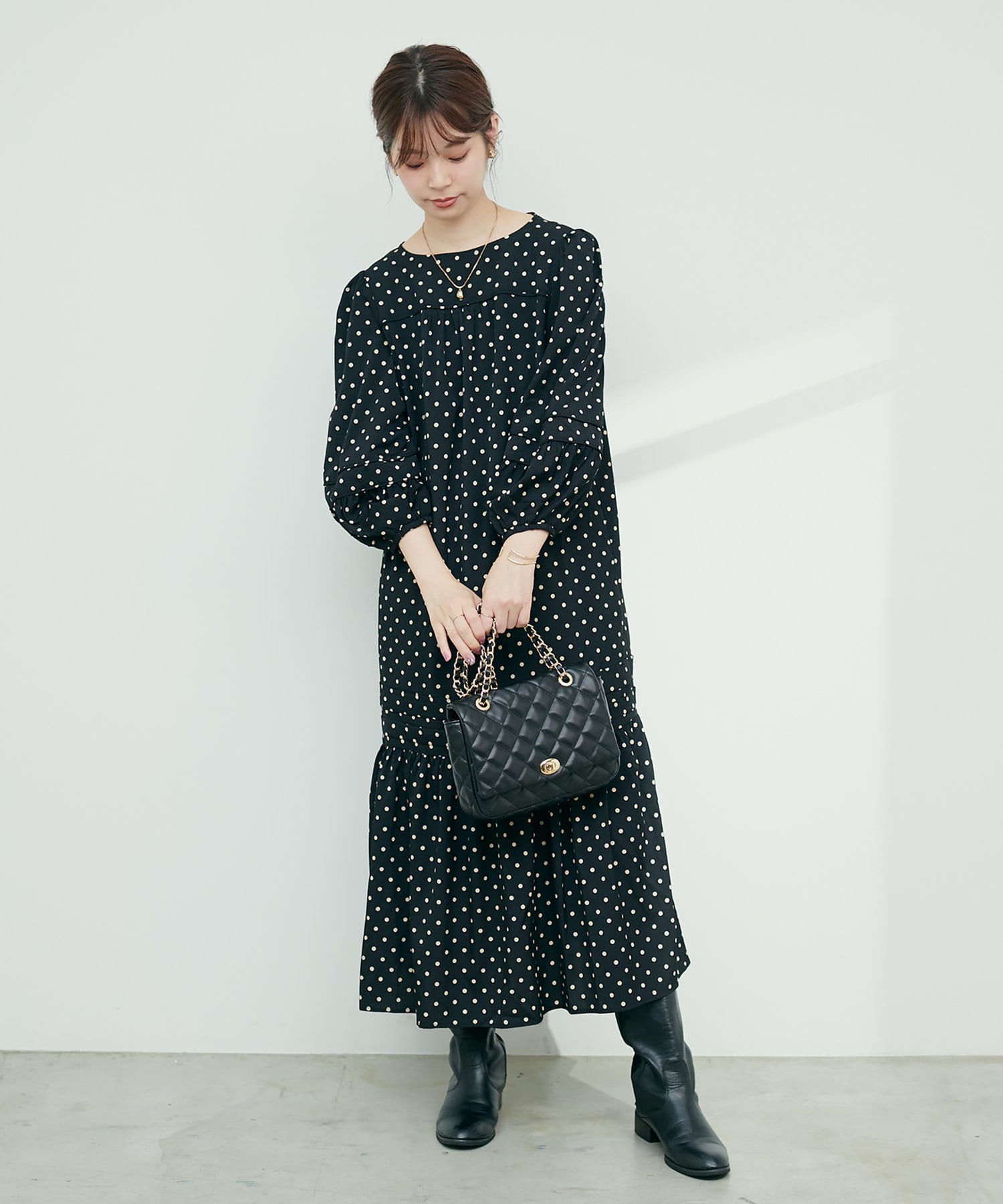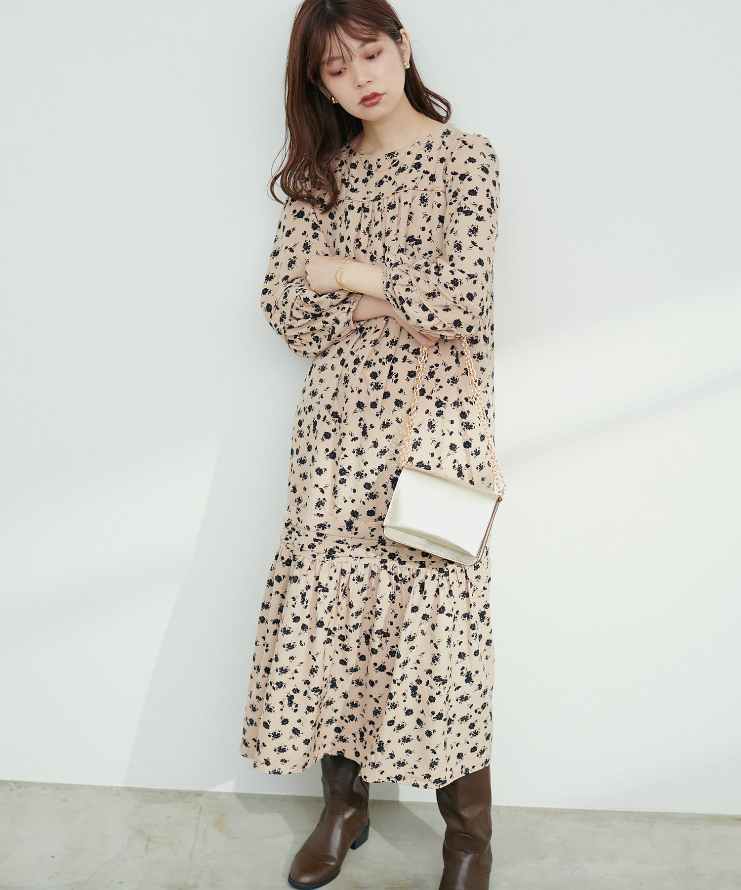 ティアードデザインが動くたびに揺れ感を与え、女性らしさを引き立ててくれる大人レディなワンピースです。