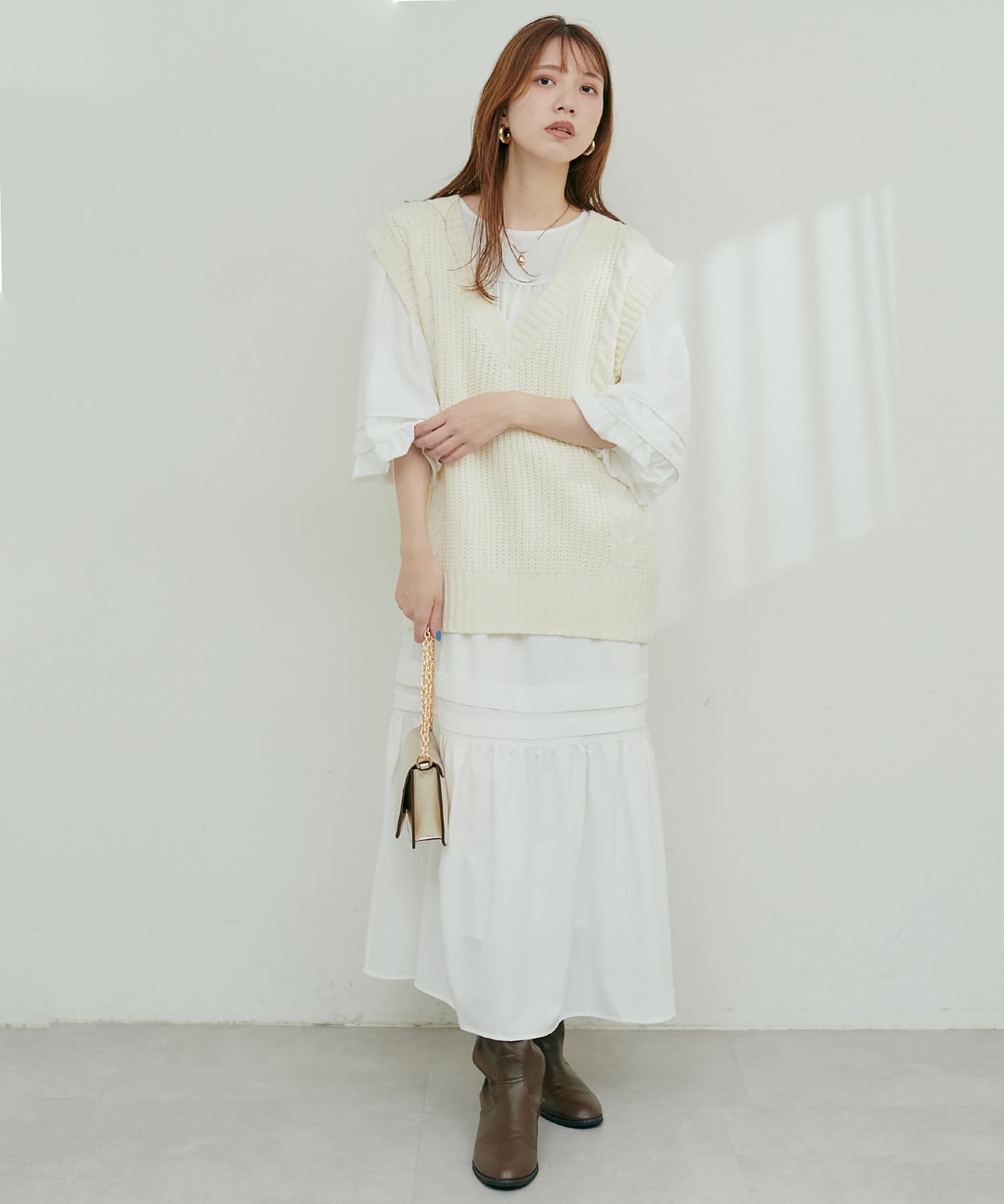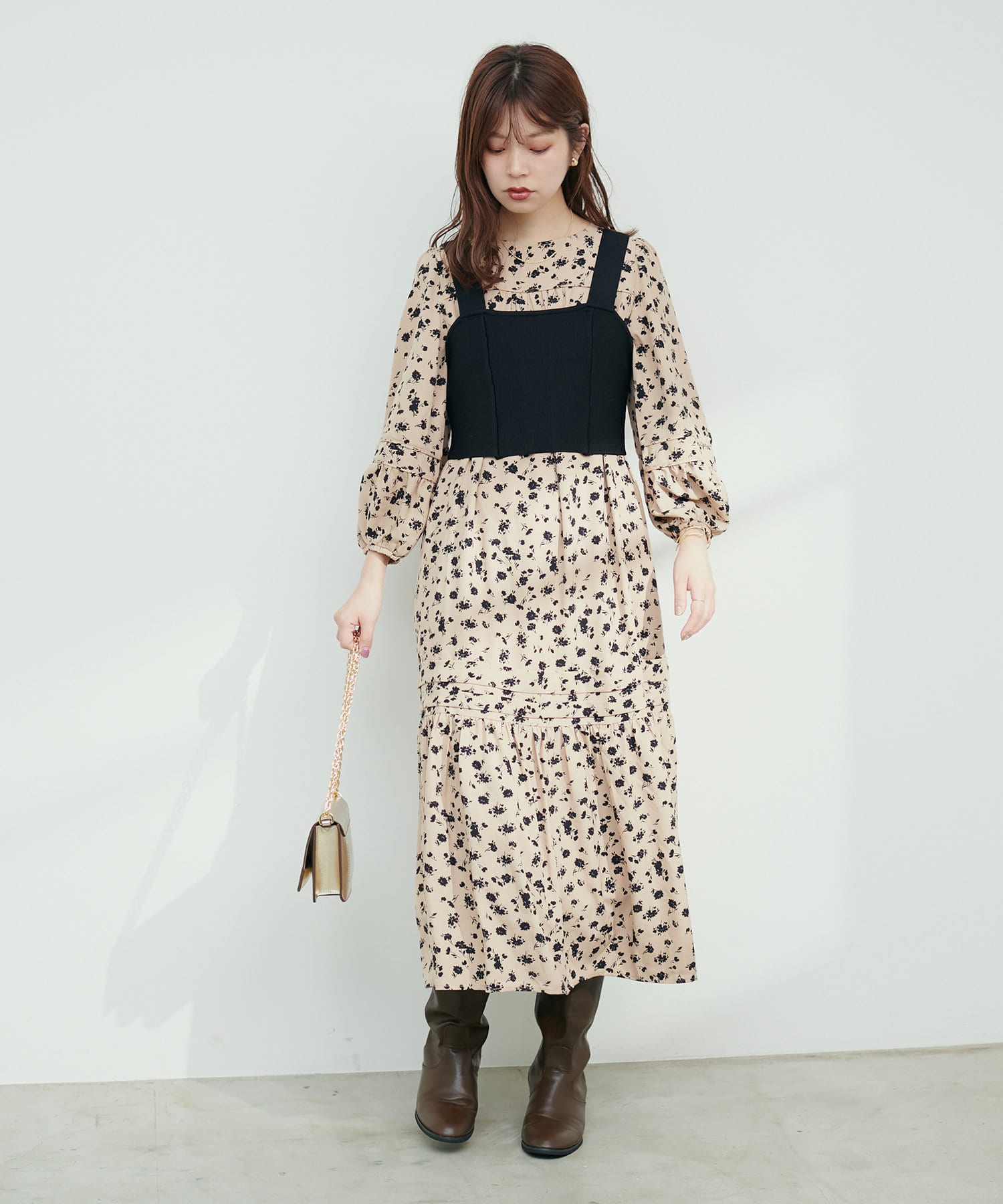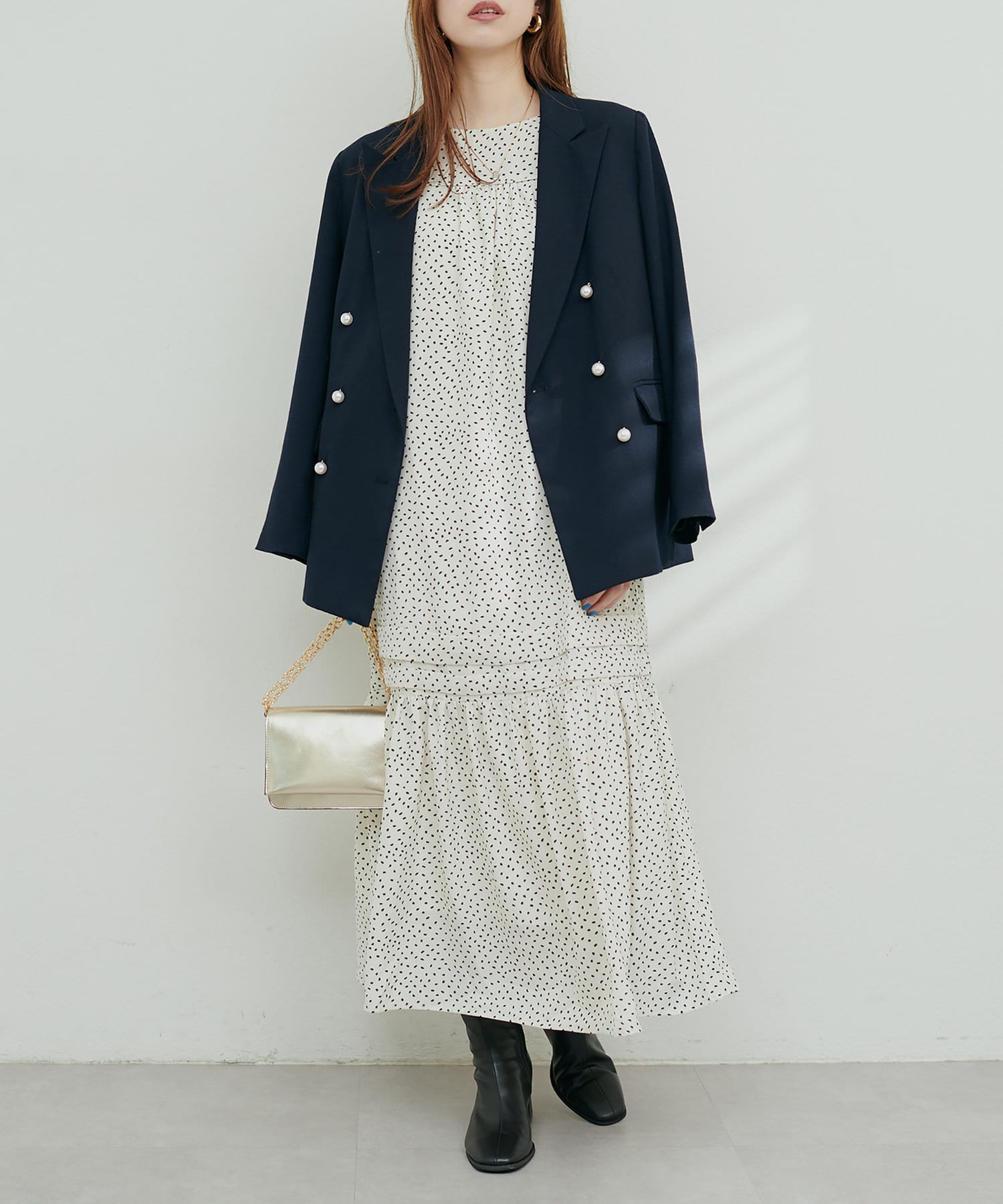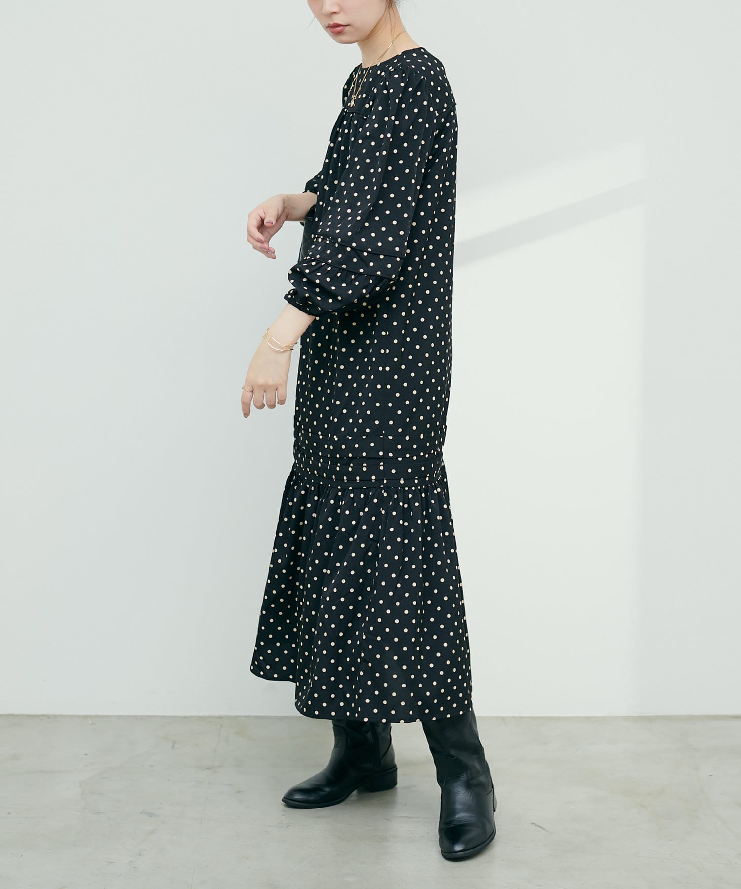 ティアードデザインが動くたびに揺れ感を与え、女性らしさを引き立ててくれる大人レディなワンピースです。