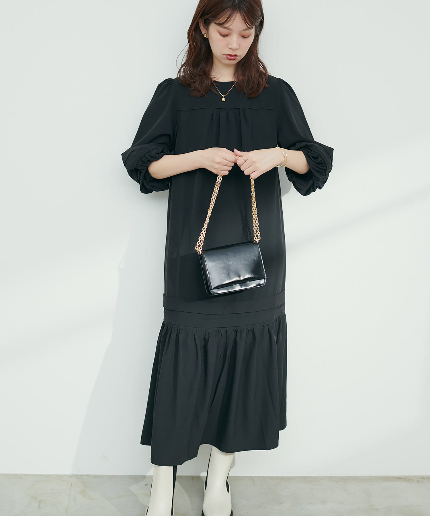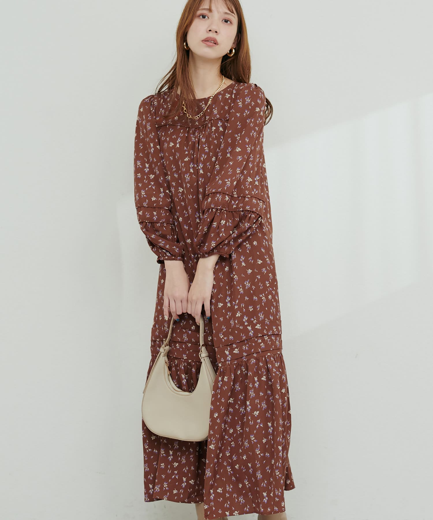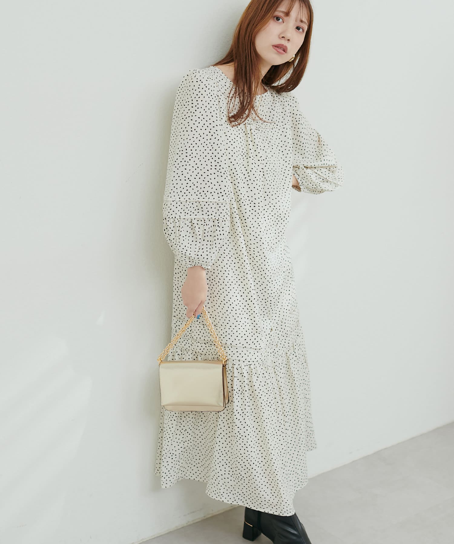 ランタンスリーブとティアードデザインでフェミニンなワンピース