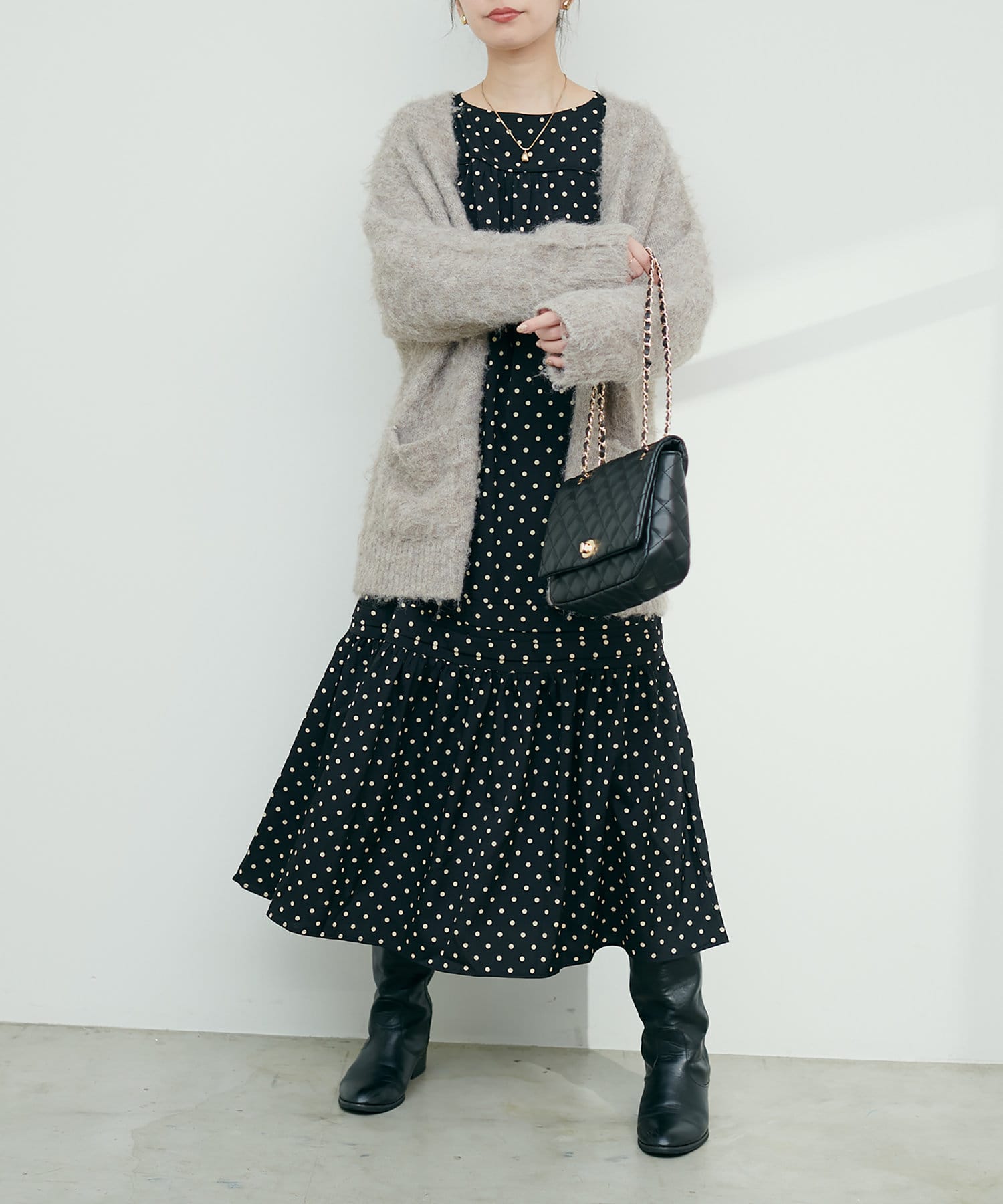 1枚で主役級のワンピースなので、さらっとお召し頂くだけできまるのが嬉しいポイント。