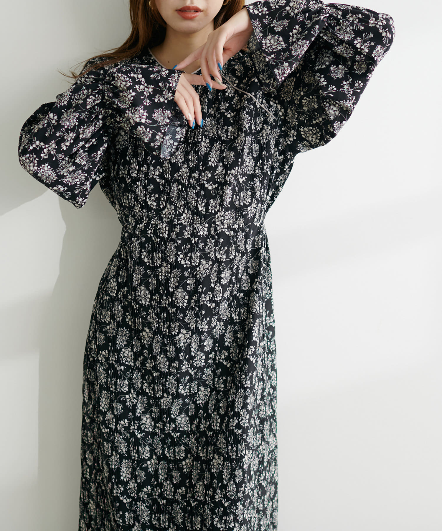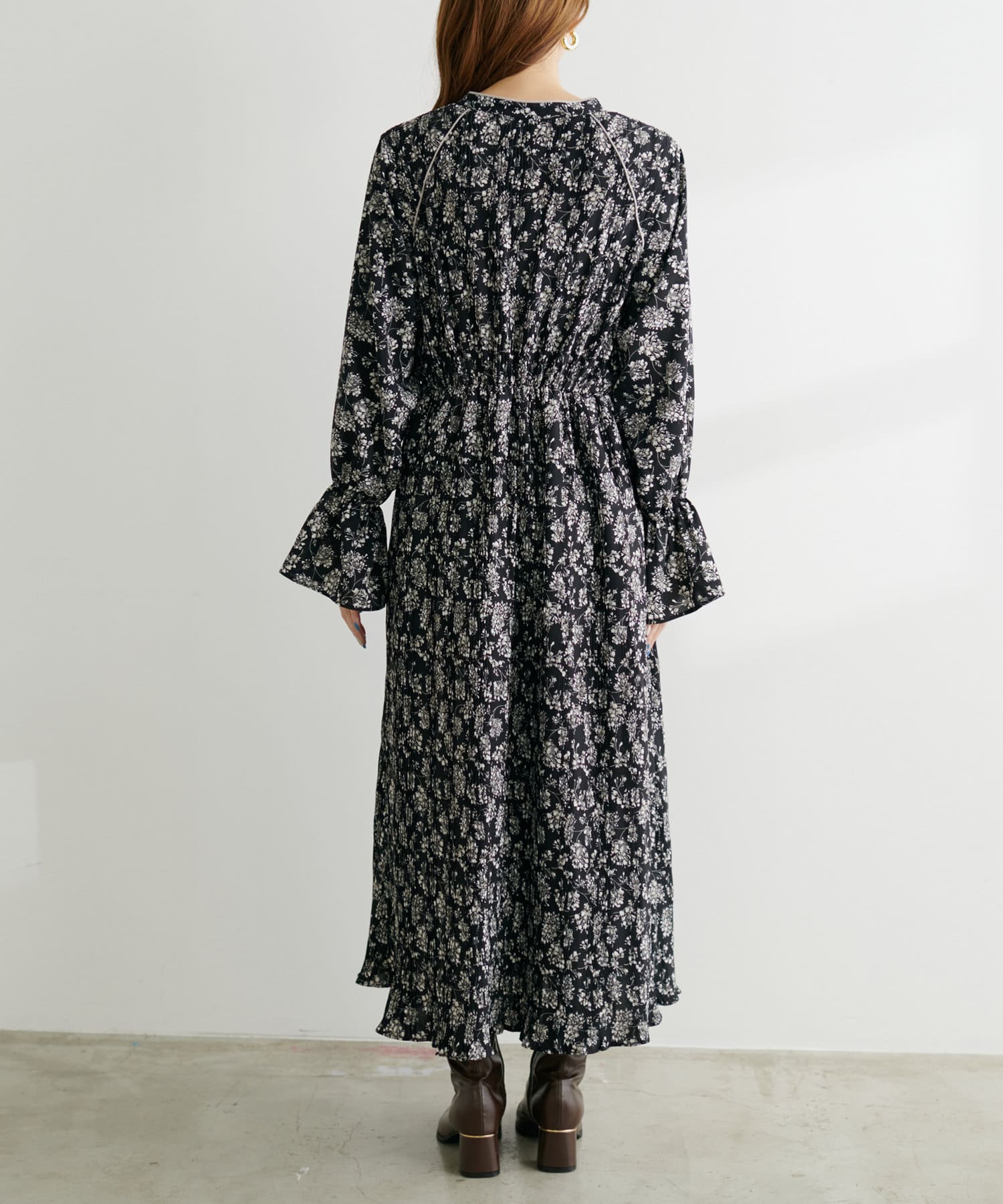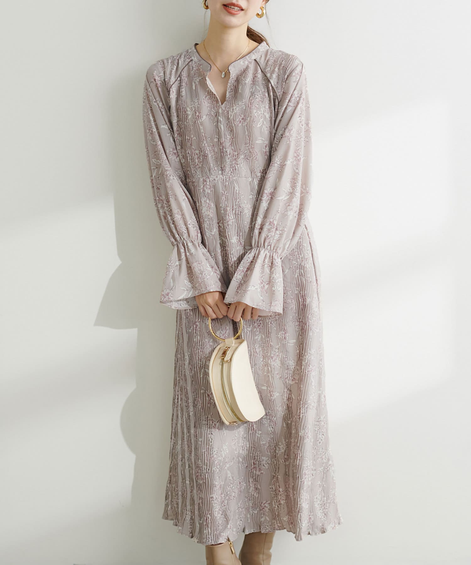 流れるような変形プリーツが印象的な大人レディワンピース。
