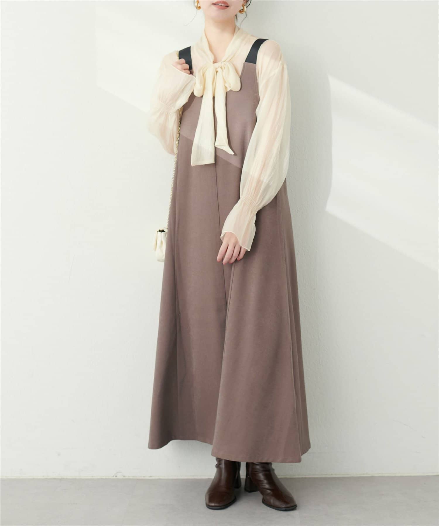 足もとはブーツ、パンプス、サンダルなどお好みの靴でスタイリング可能です。
