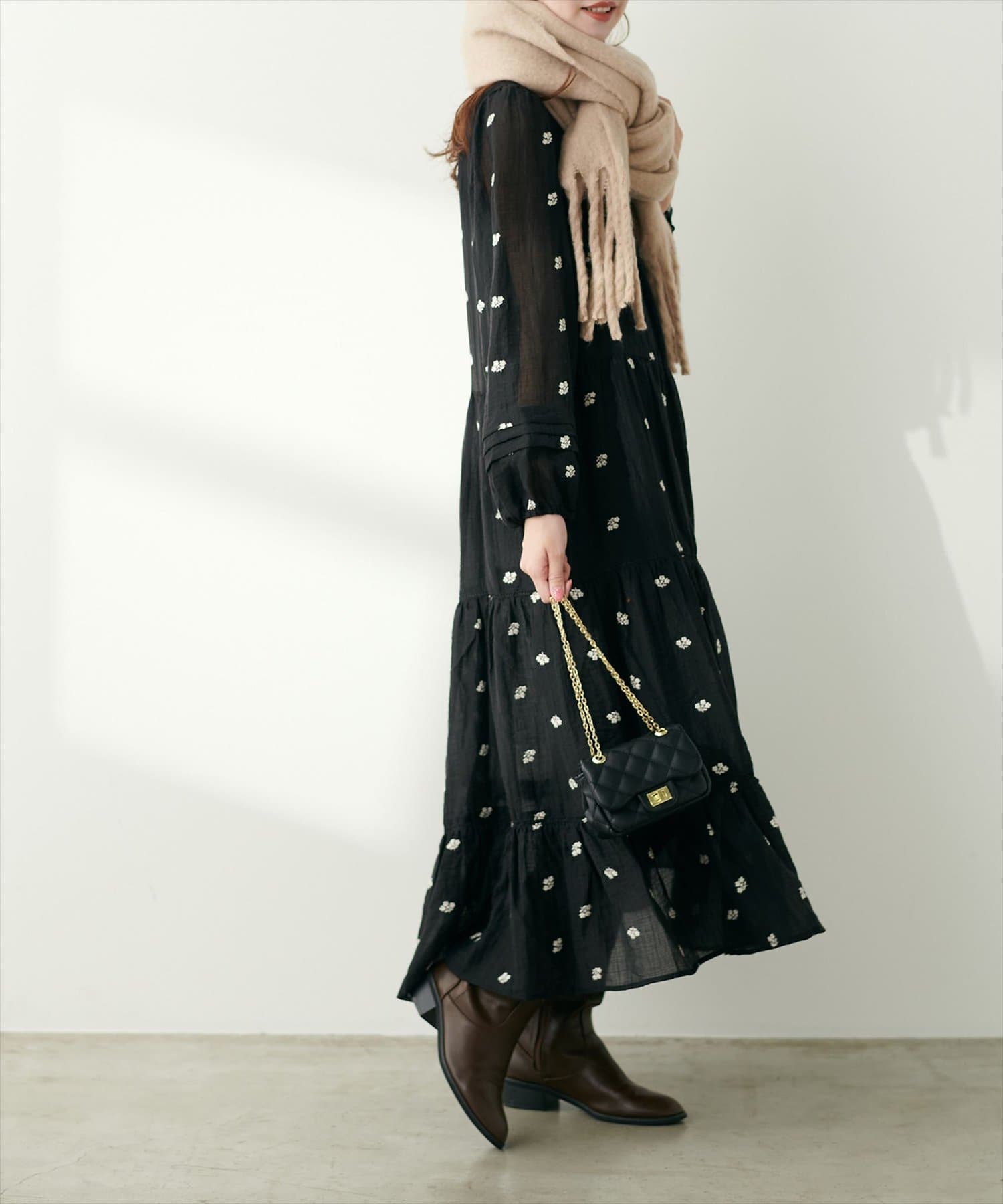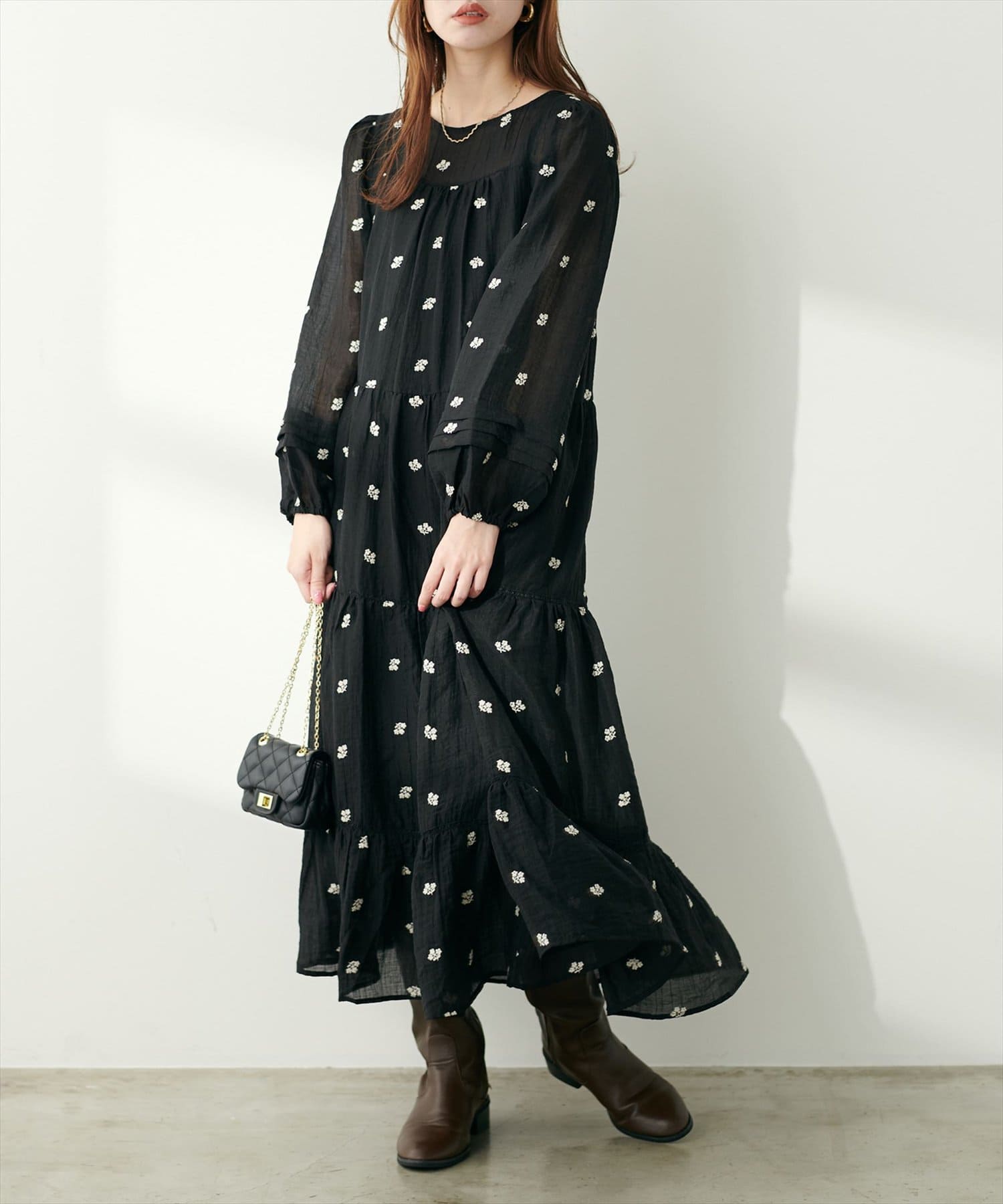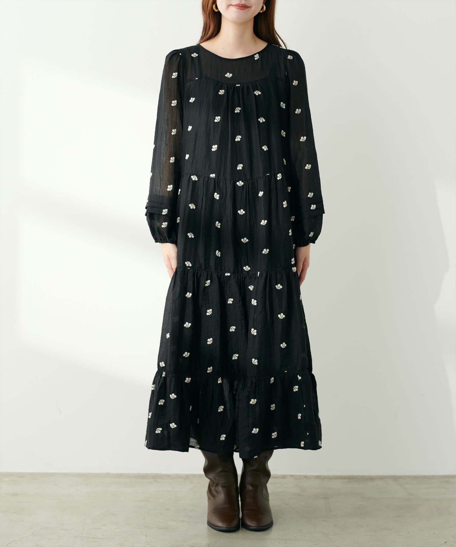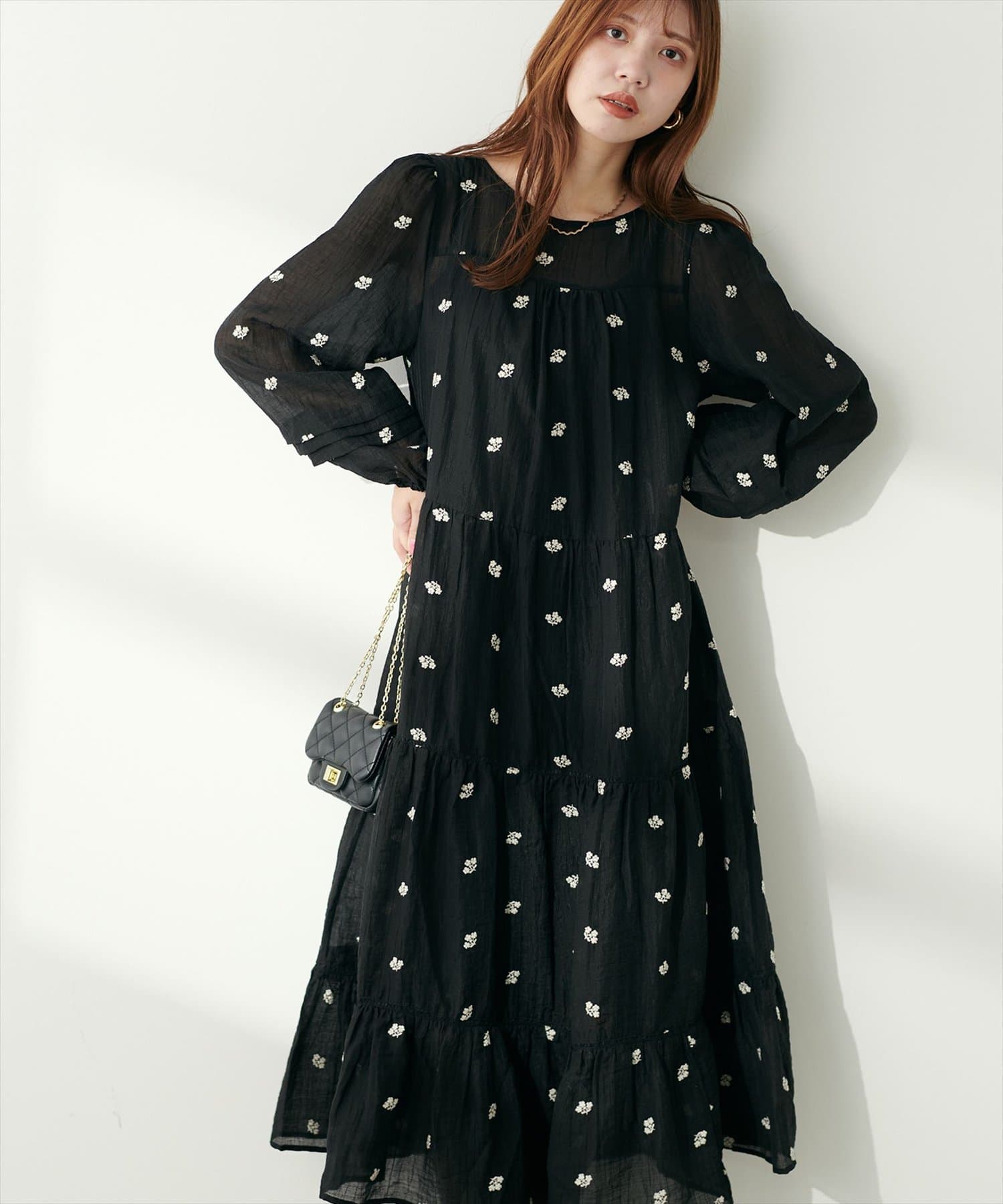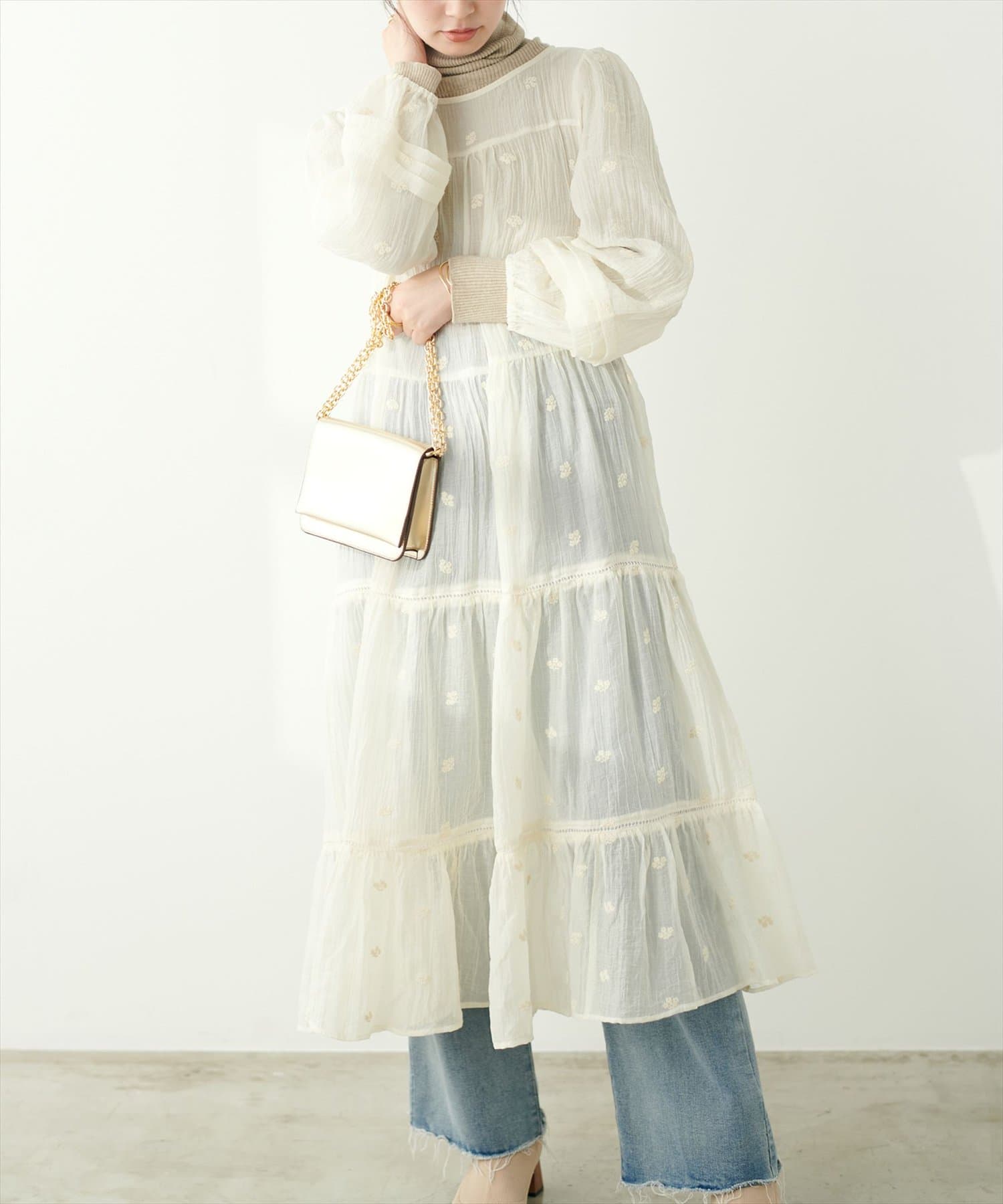 ヘルシーな透け感でレイヤードスタイルが楽しめるティアードワンピース。