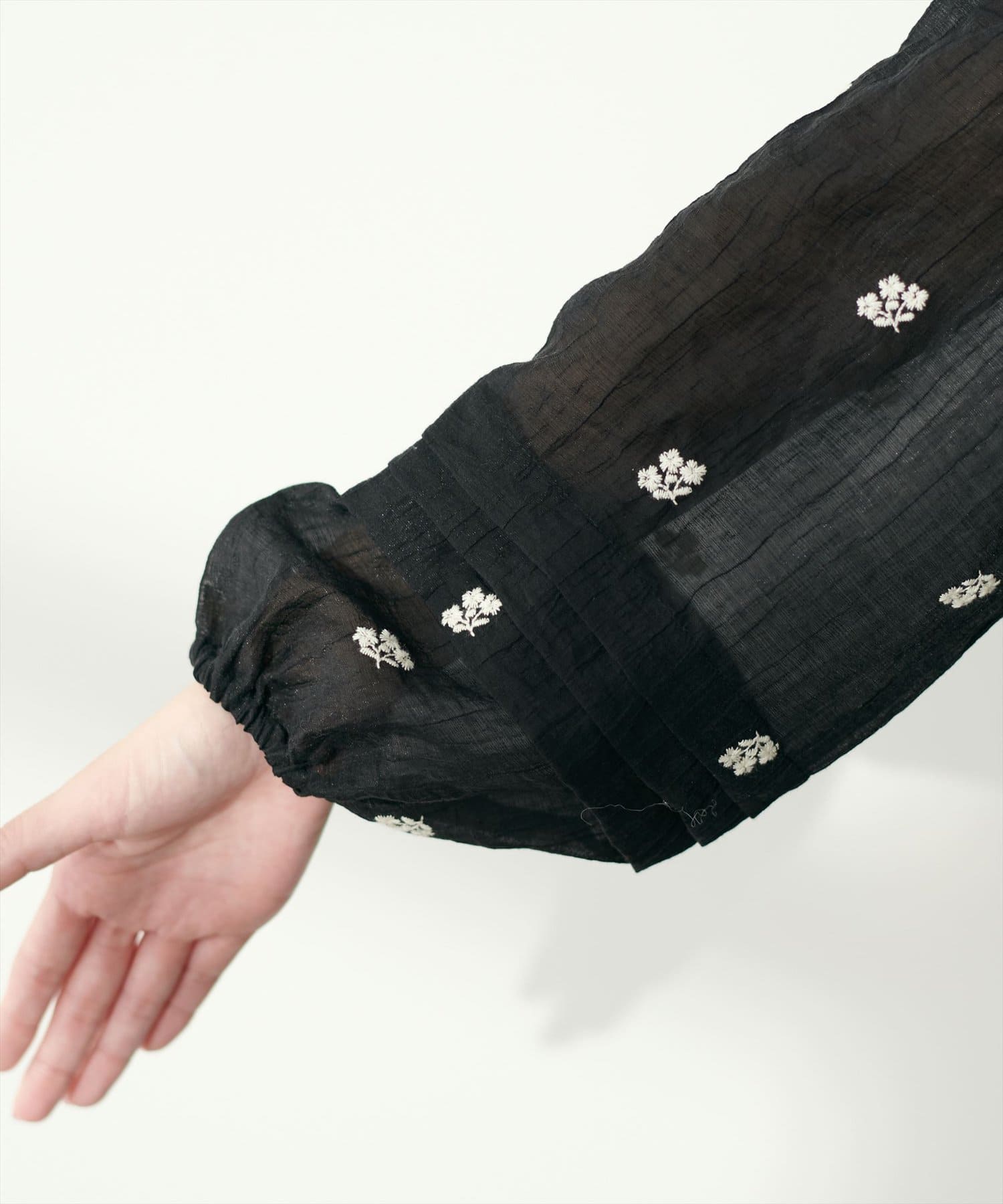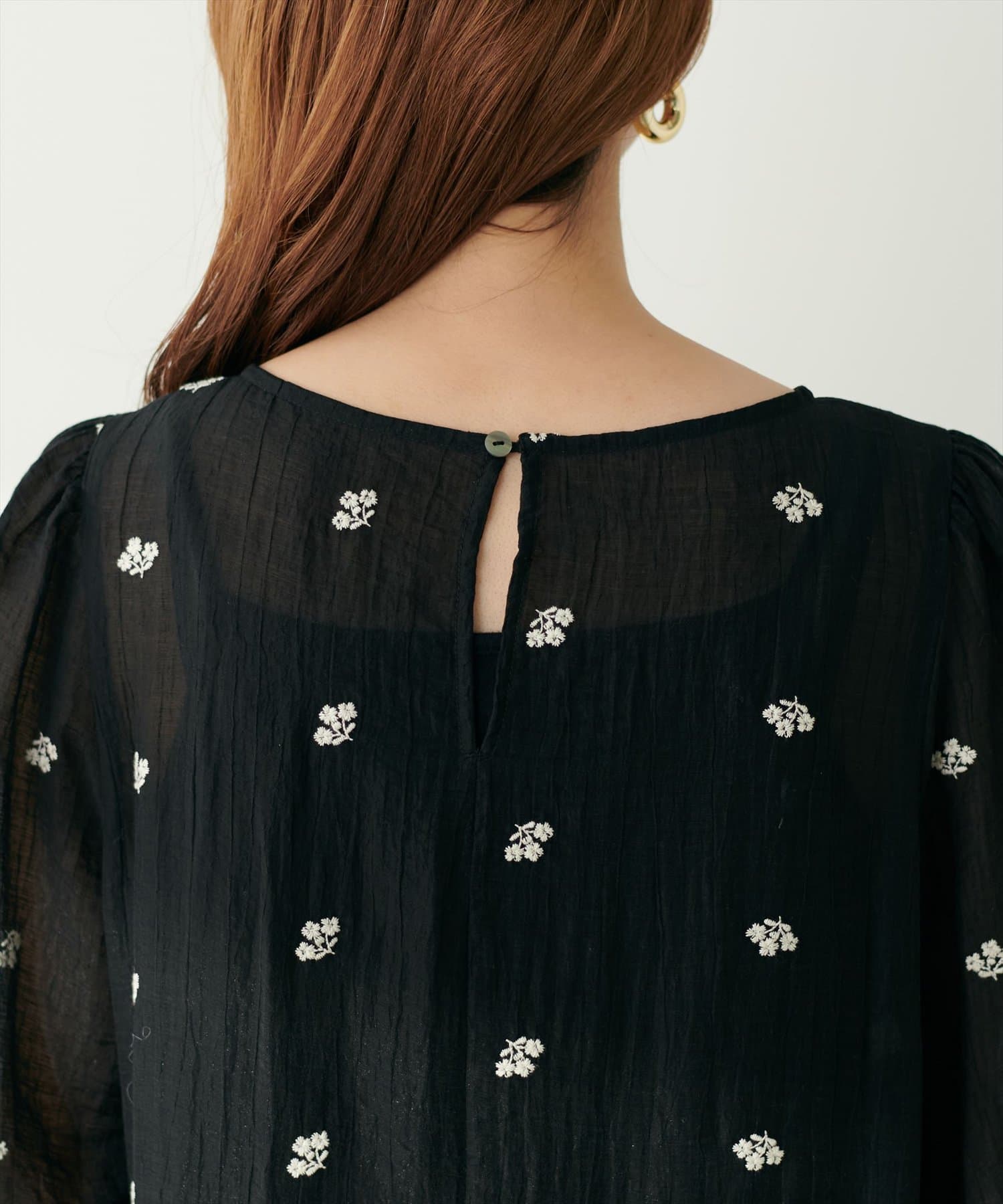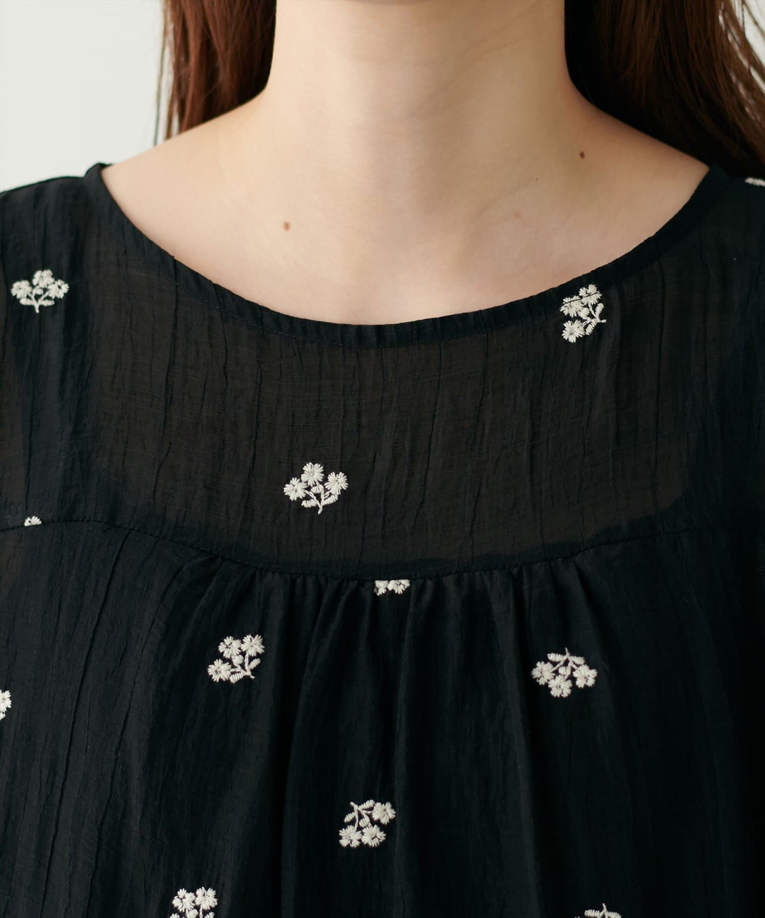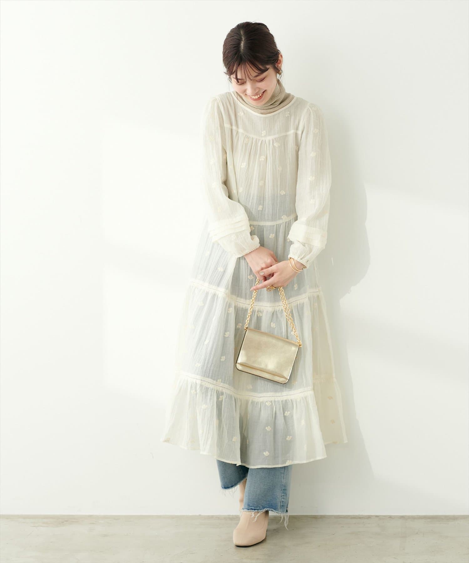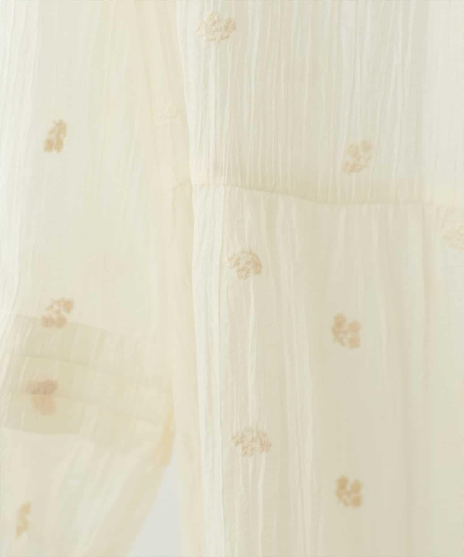 表面感のある素材感や、刺繍、はしごレースなどポイントがぎゅっとつまった一枚。