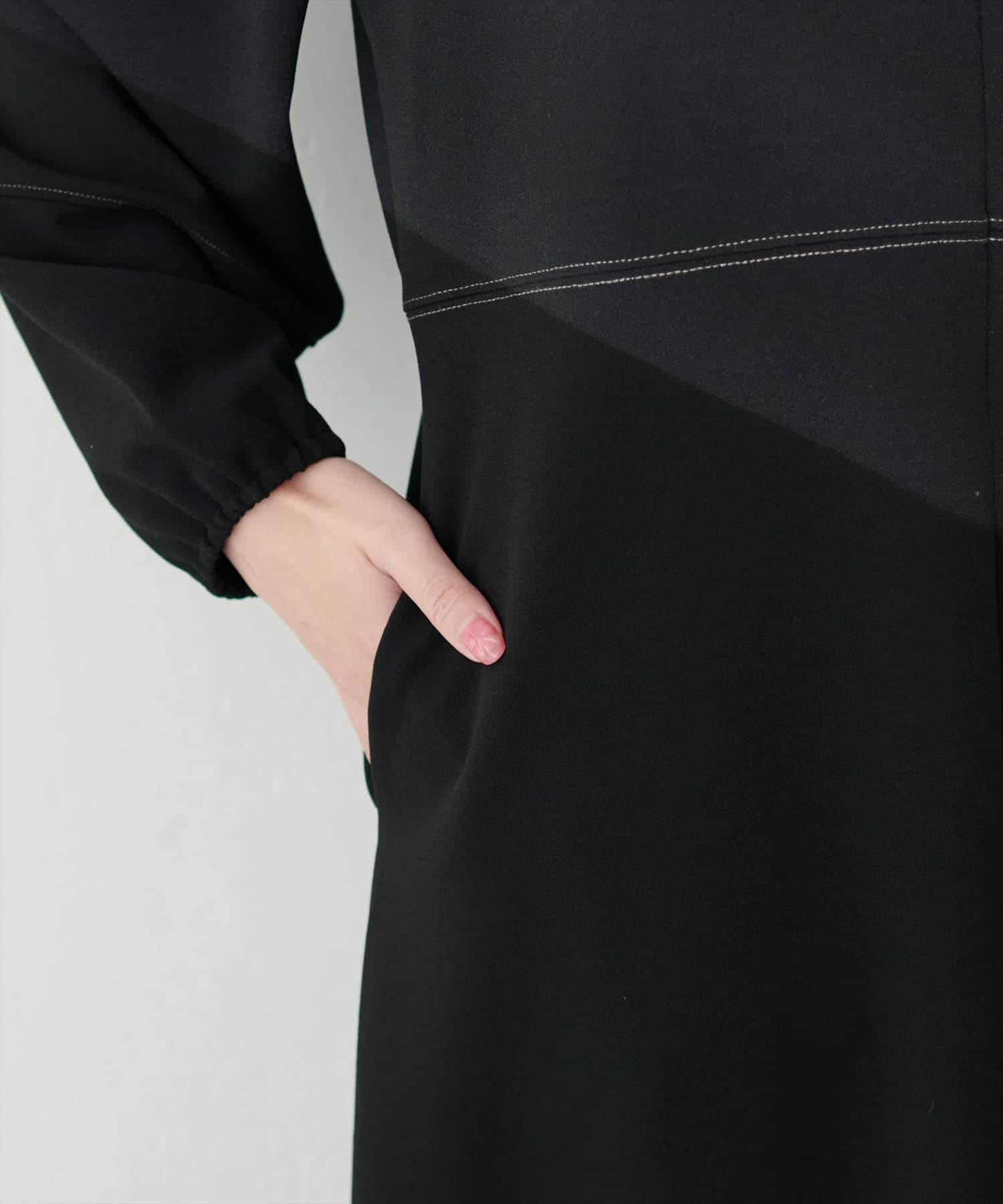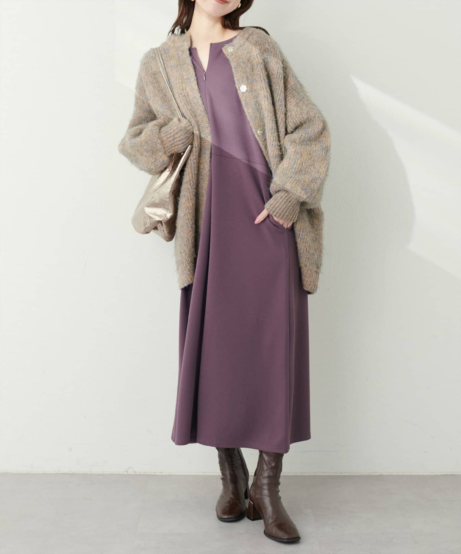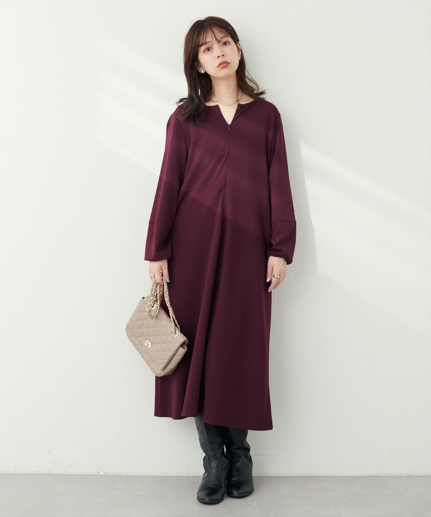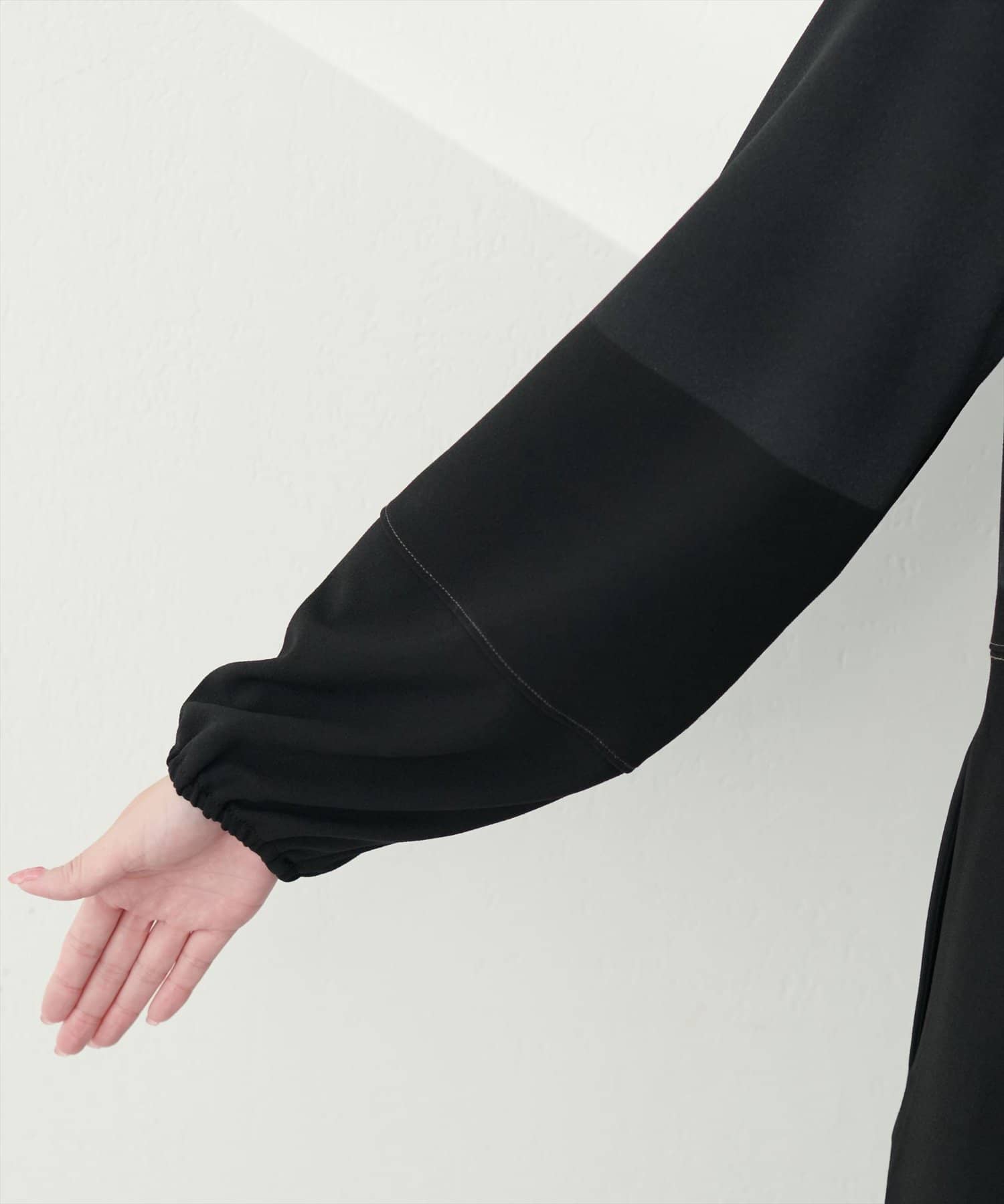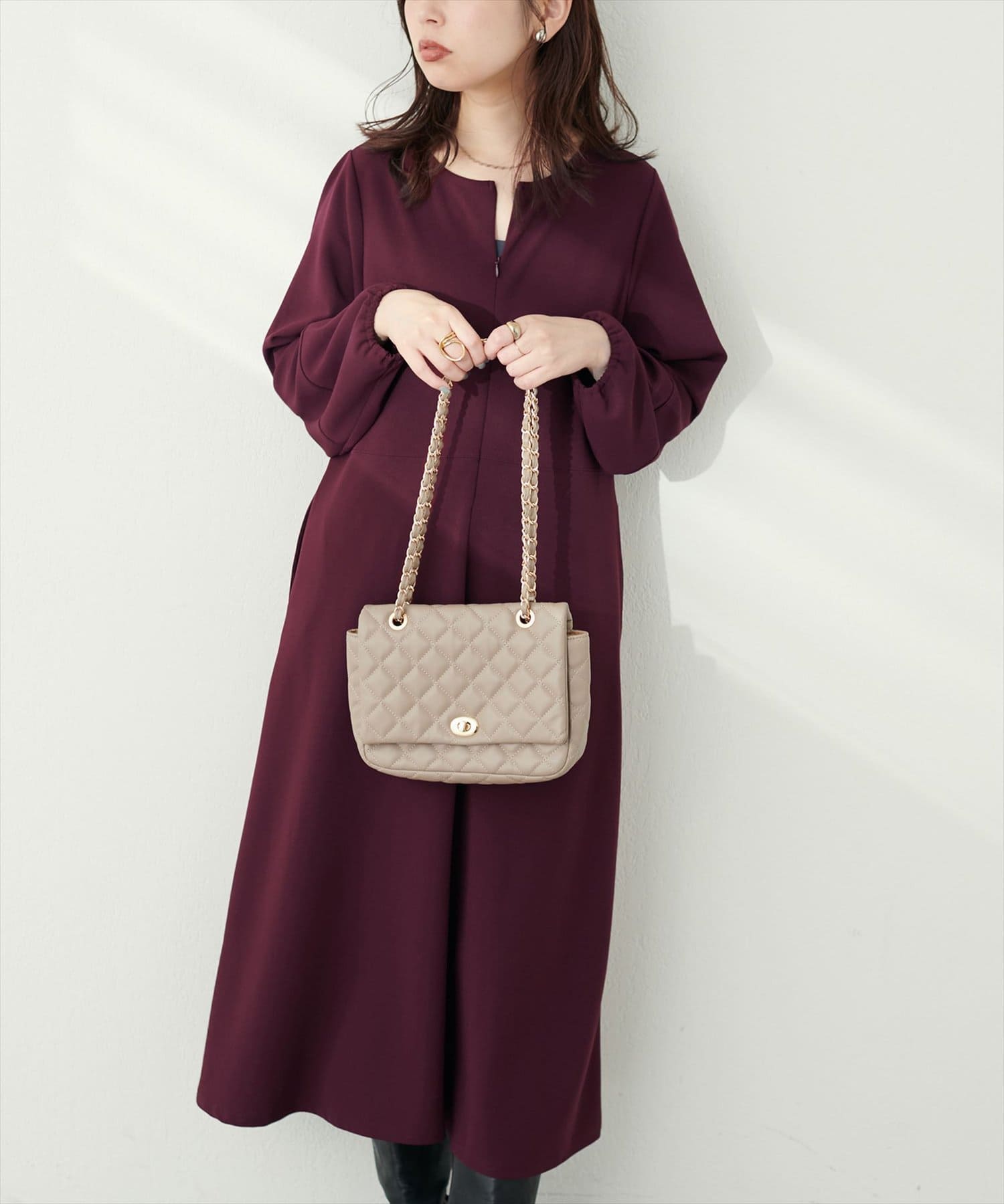 手元を華奢に見せてくれるランタンスリーブが目を惹く、mamamoシリーズの新作ワンピース。